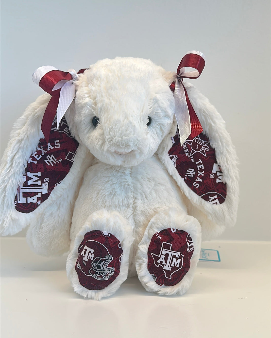 Snuggle up with this Custom College Jellycat Bashful Bunny. Each plush is adorned with licensed fabric...