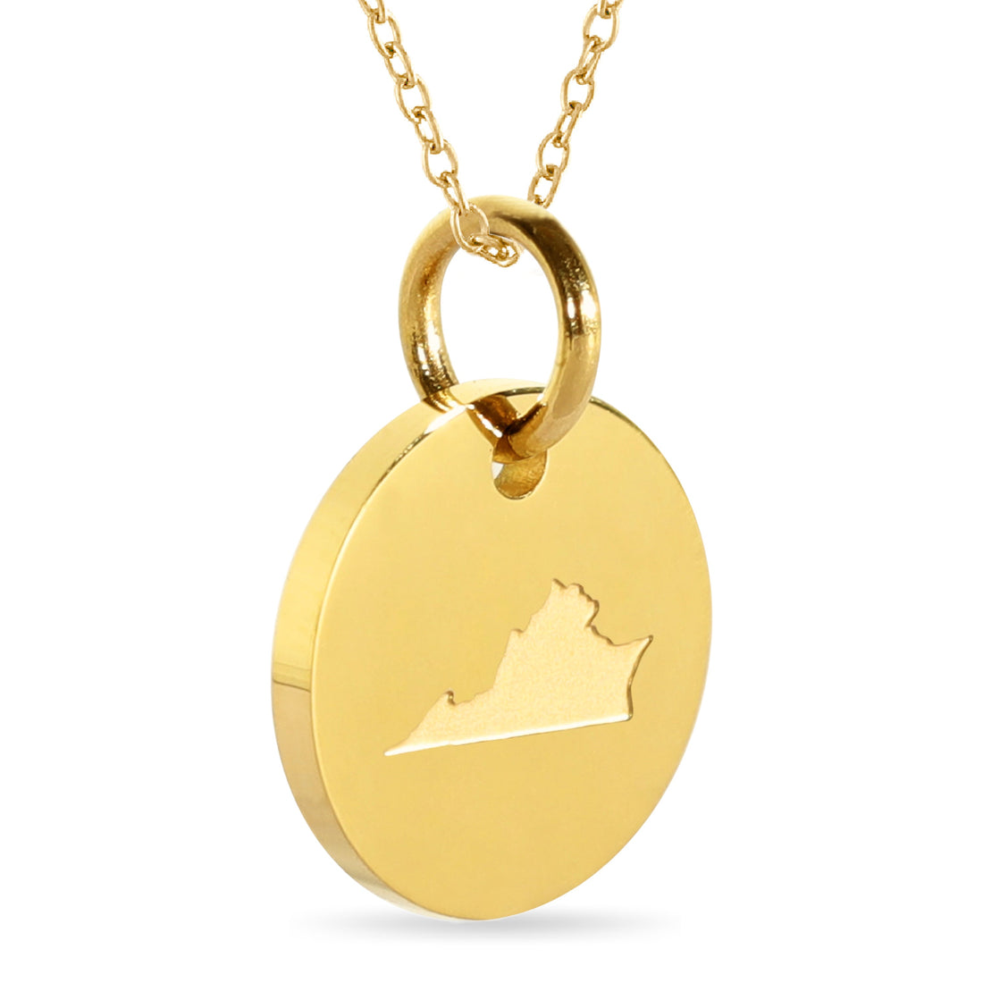 Virginia Map Engraved Charm Necklace - 18K Gold Plate