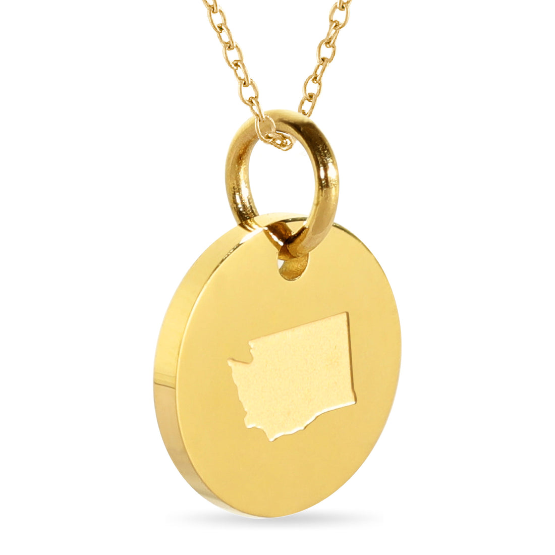 Washington Map Engraved Charm Necklace - 18K Gold Plate