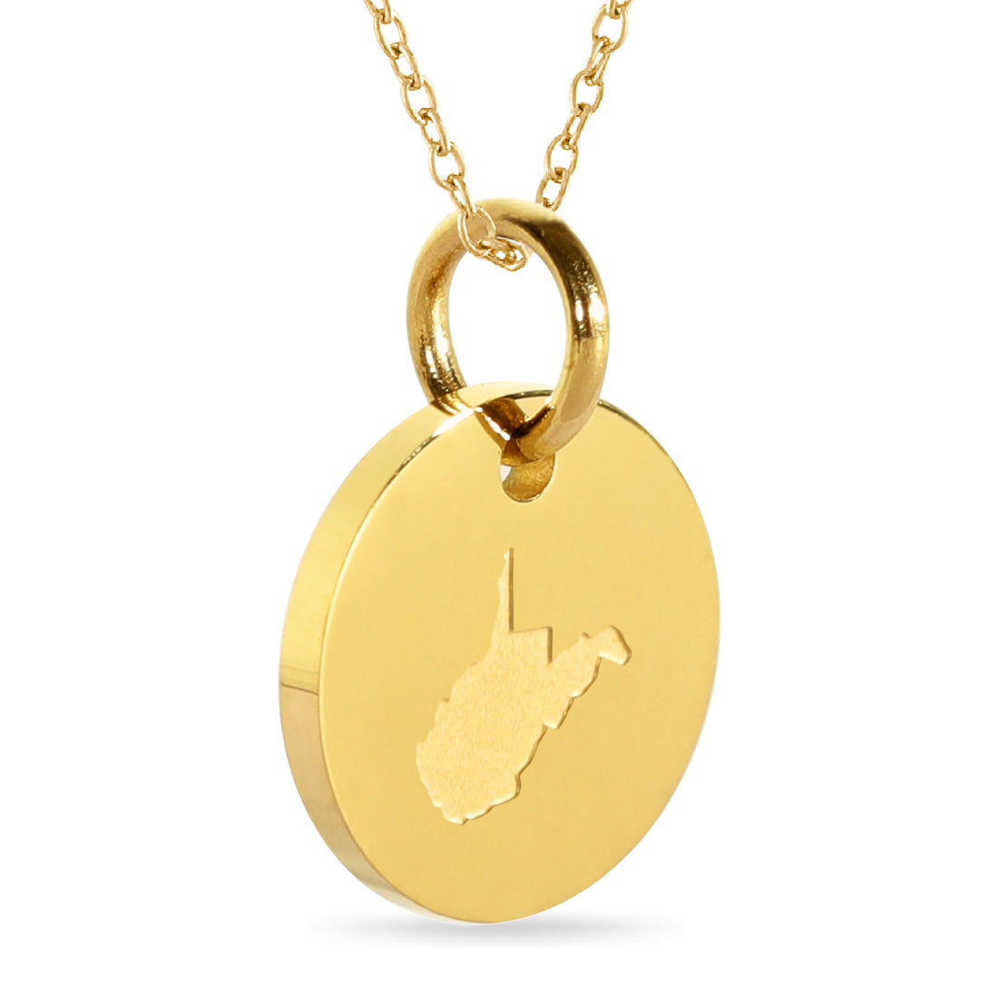 West Virginia Map Engraved Charm Necklace - 18K Gold Plate