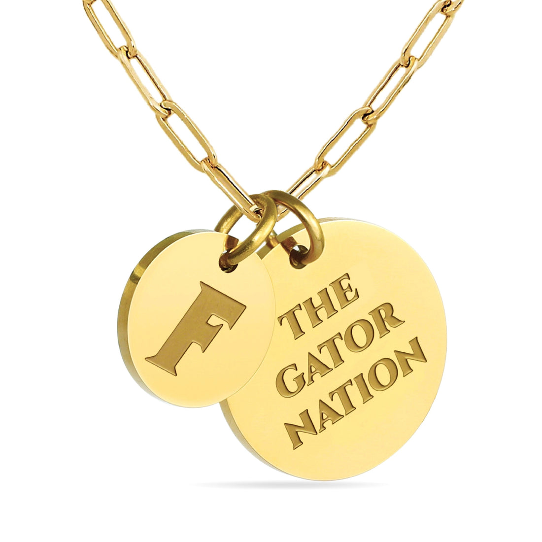 Proudly display your Florida Gators pride with this officially licensed Florida necklace, featuring two gold-plated...