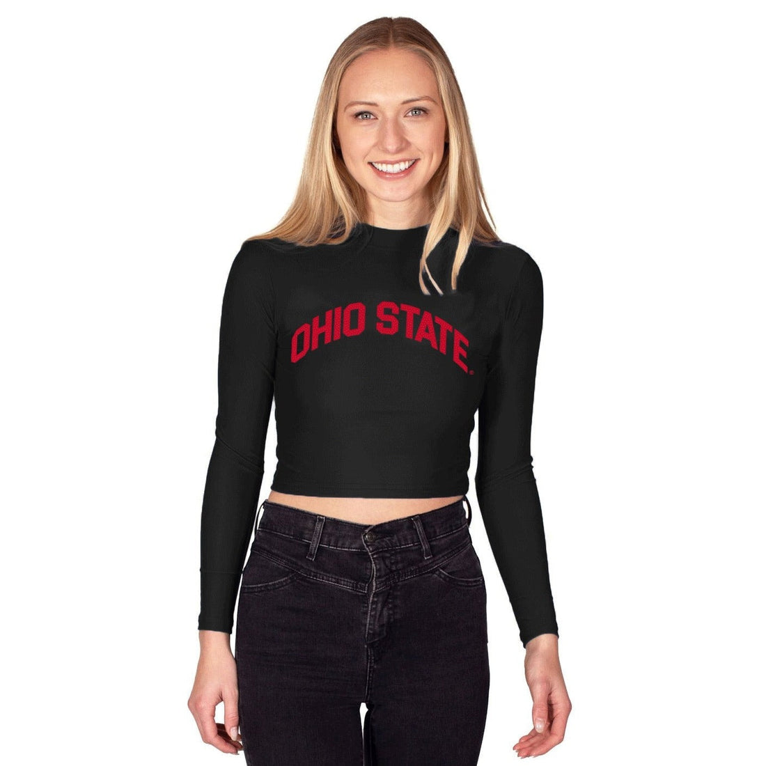 This super flattering OSU Black Mock Neck Long Sleeve Top is perfect for colder college game...