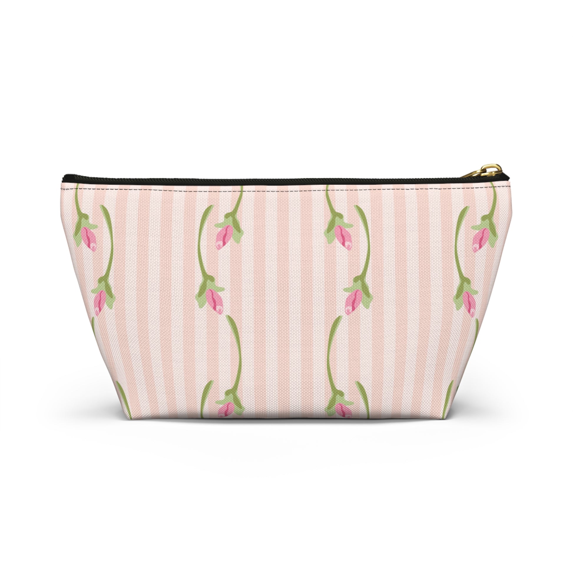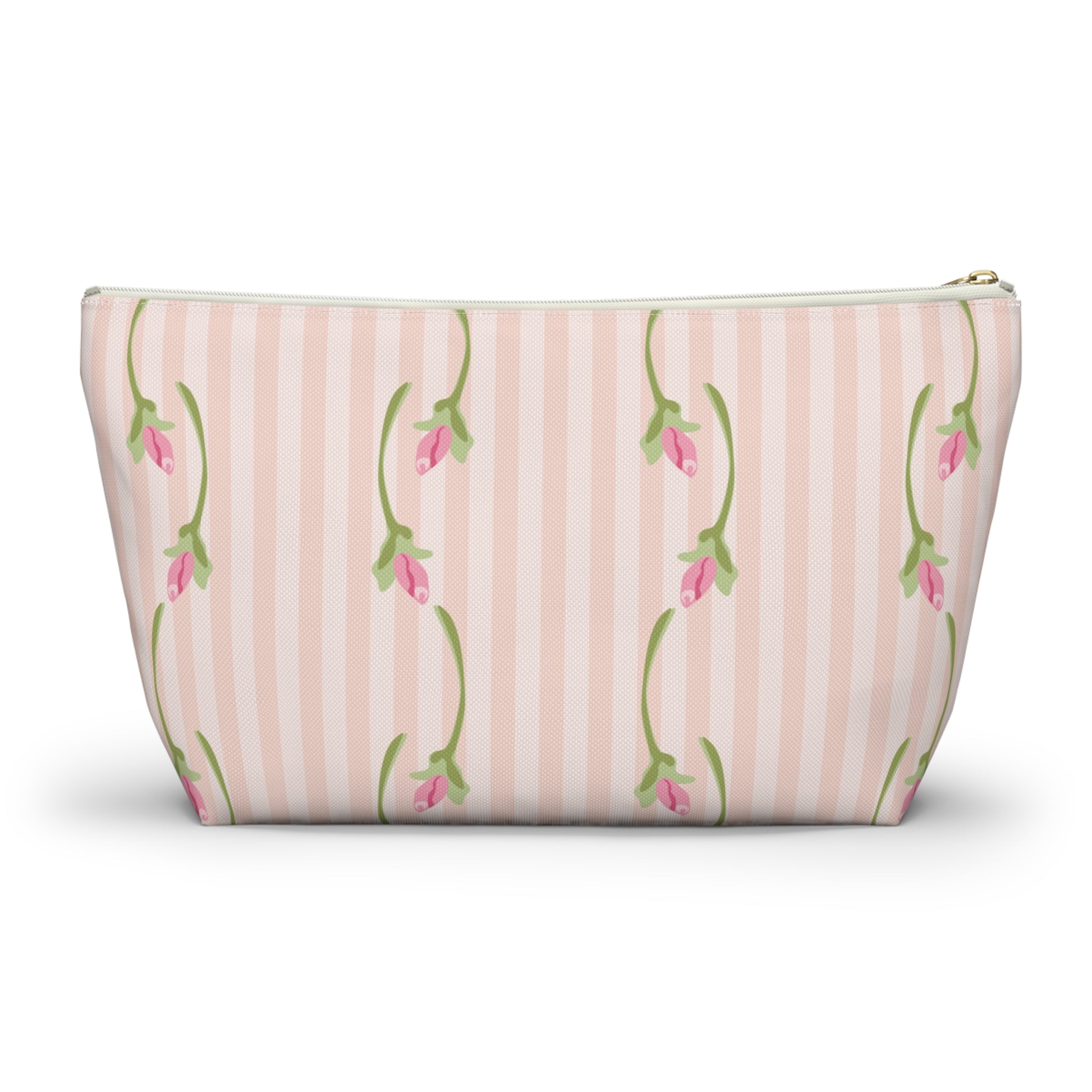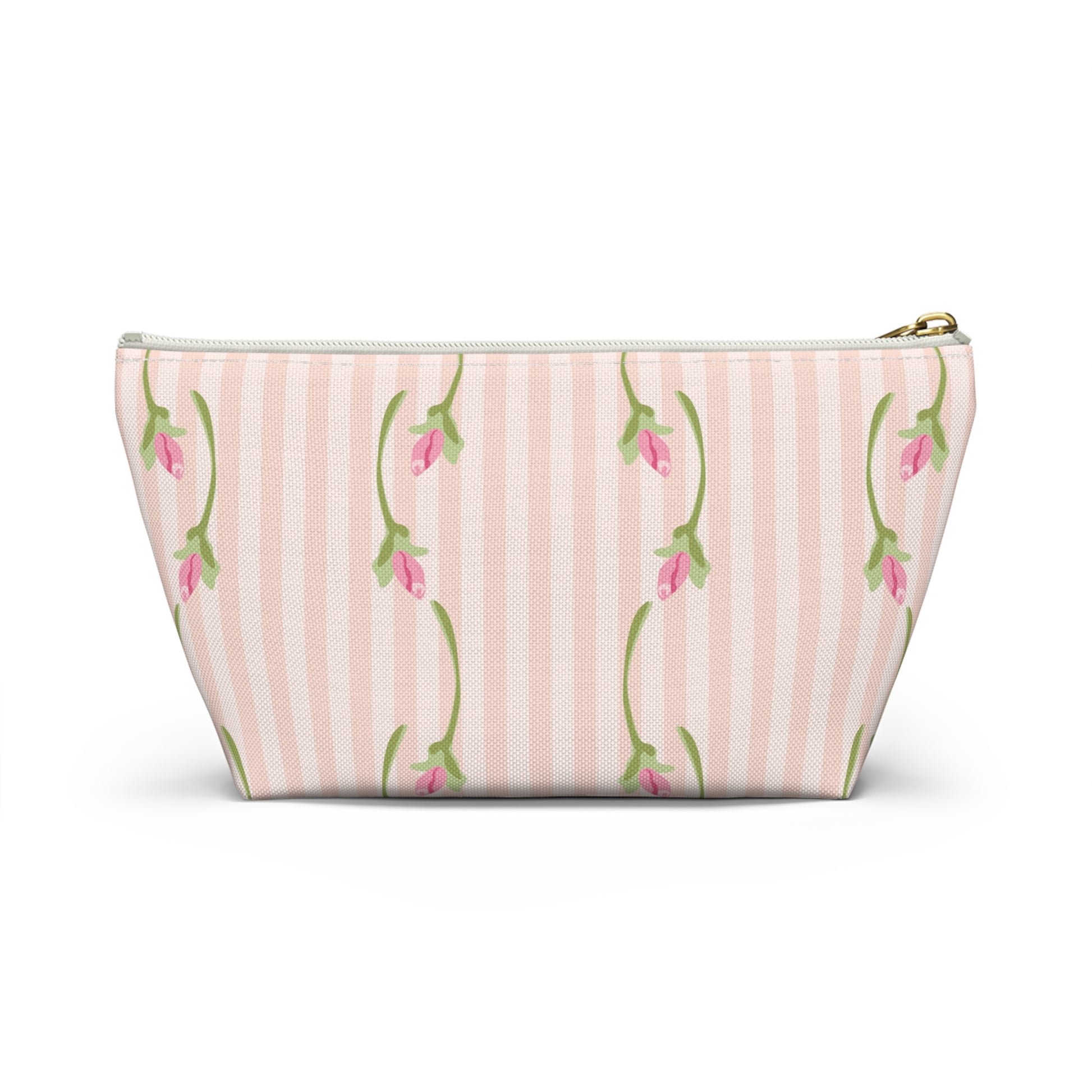 Our t-bottom pouches vary from small to large and can be used for pretty much anything. They make excellent pencil cases and cosmetic travel bags. They are constructed from a durable material with a zipper closure.