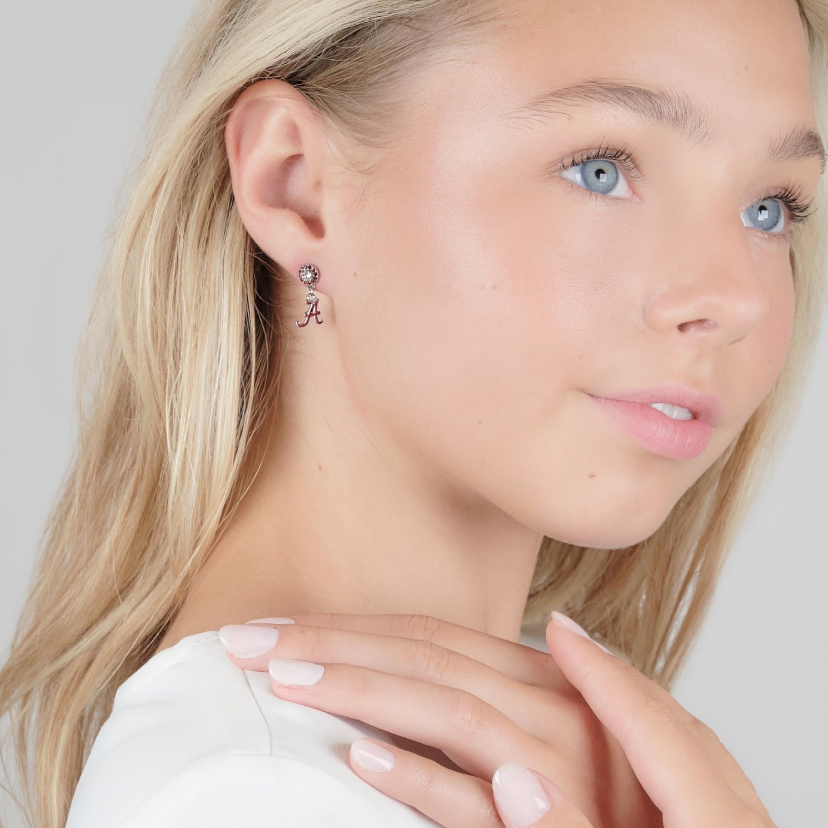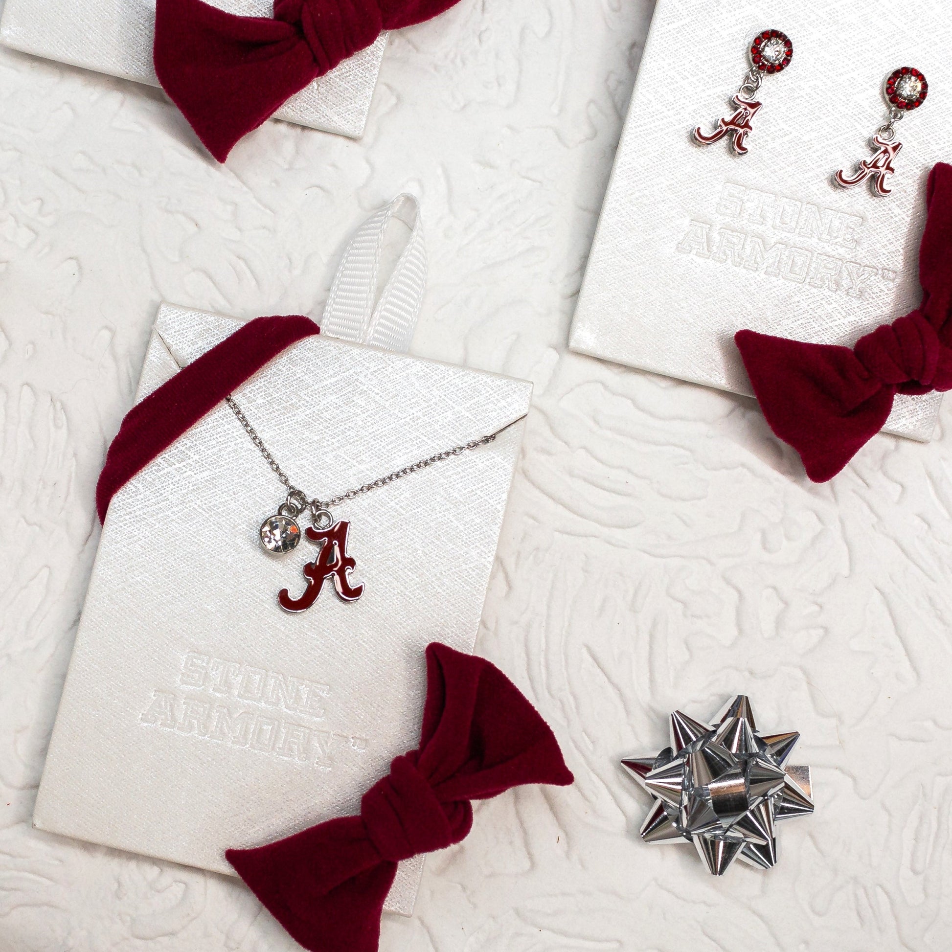 - Treasure Your Alabama Crimson Tide Spirit - These University of Alabama earrings by Stone Armory are full of Crimson Tide pride! Featuring a script A pendant dangling from crimson and clear crystals, these classic Alabama earrings are just as unique as you. Roll Tide!