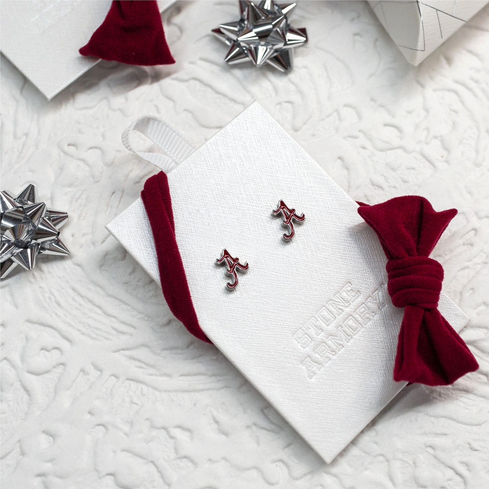 - Treasure Your Alabama Crimson Tide Spirit - These University of Alabama earrings by Stone Armory are full of Crimson Tide pride! Featuring a crimson script A design, these classic Alabama earrings are just as unique as you. Roll Tide!