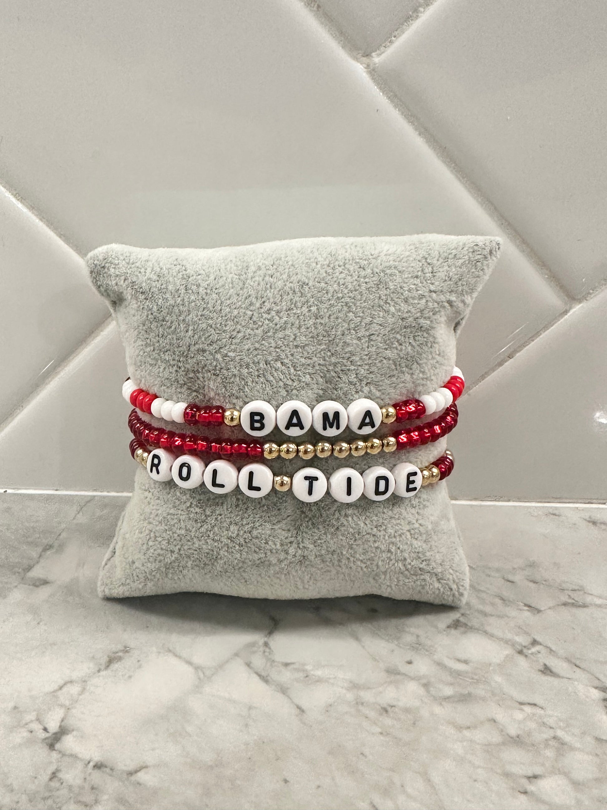 Alabama Game Day | Alabama Roll Tide Bracelet Set – Red, Gold, and White (Set of 3)
