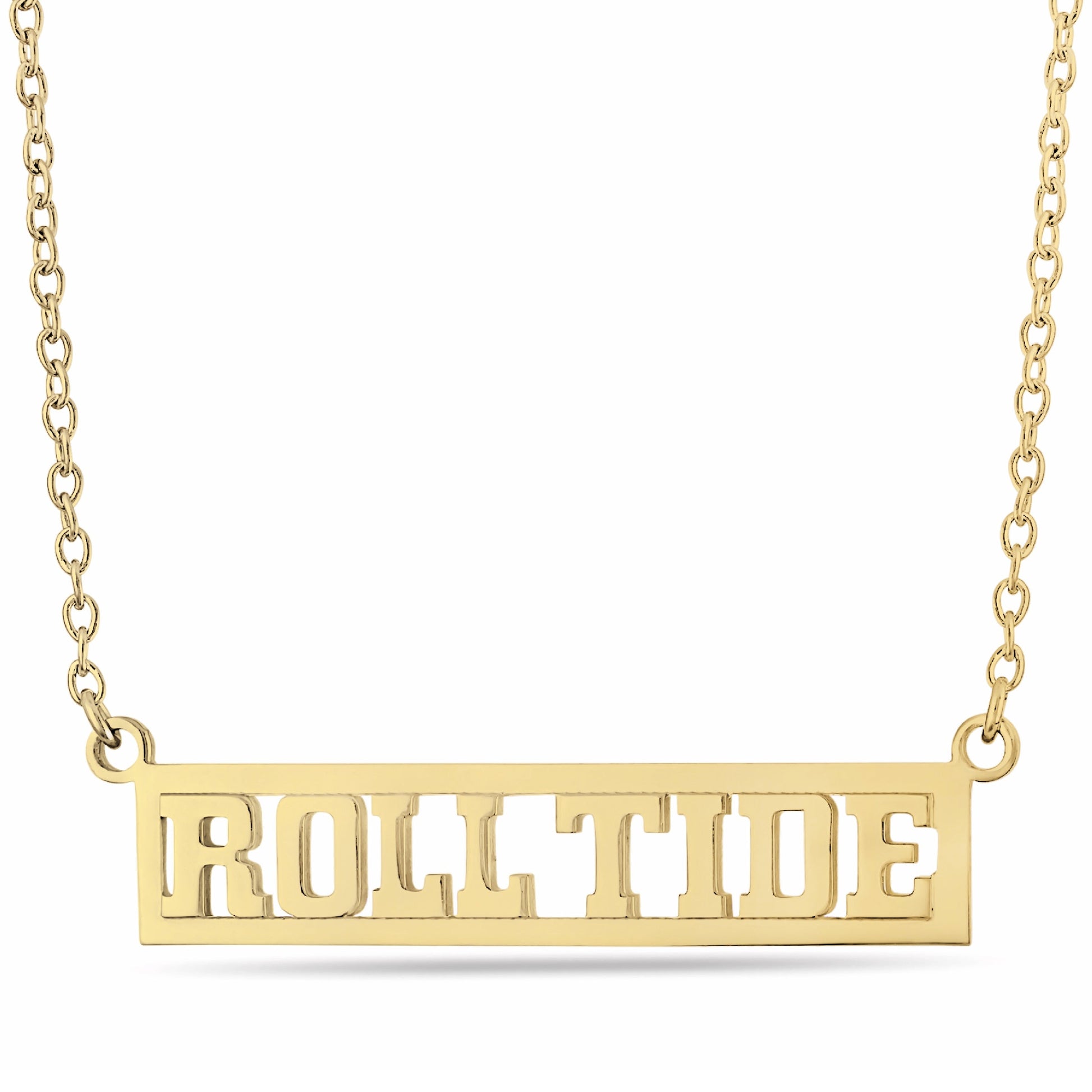 - YOUR PERFECT FIT: This stainless steel Alabama necklace is adjustable in size, with a chain that adjusts between 16-20 inches. Add this classic Alabama necklace to show off your beloved Alabama Crimson Tide school and team. The ROLL TIDE lettering measures 6.5mm tall by 30.00mm wide.