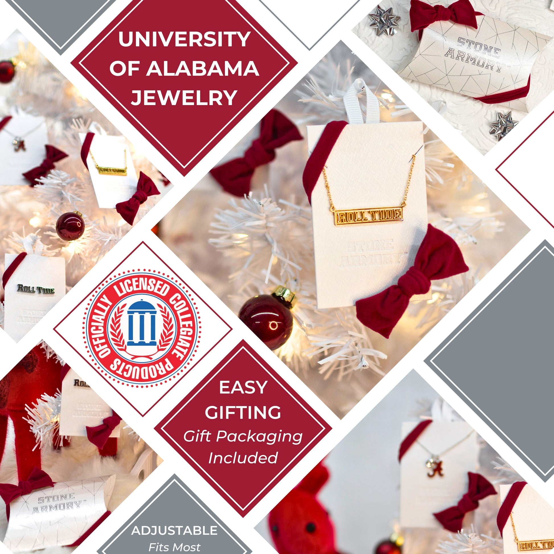 - TREASURE YOUR Alabama Crimson Tide SPIRIT: This Stone Armory University of Alabama necklace is officially licensed. A classic Alabama ROLL TIDE necklace with gold plating and crystals, to show off your Bama Crimson Tide pride.