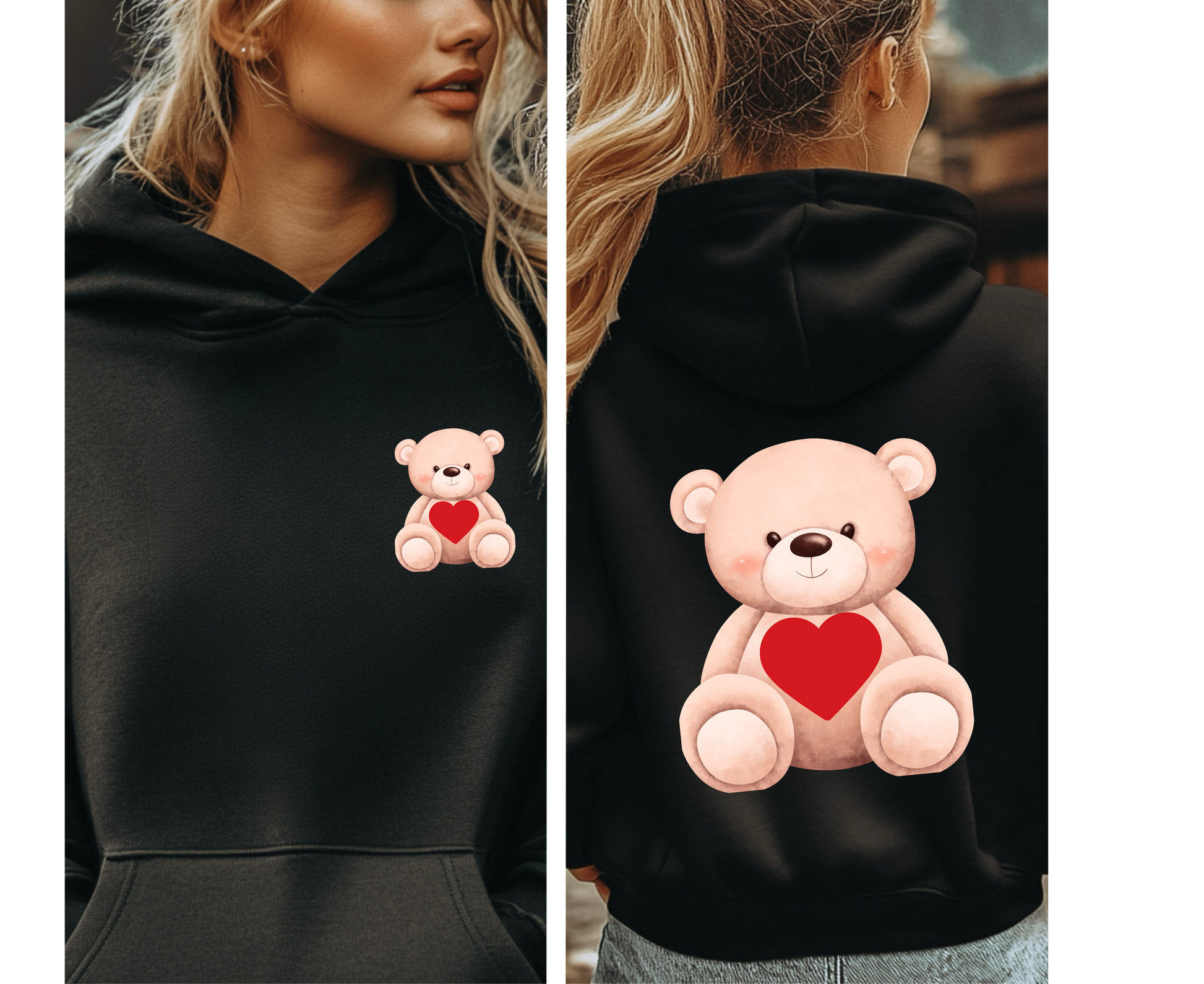 Stay cozy and stylish with this adorable on trend bear hoodie customized with your main school color heart. Personalizable with school name, mascot, your name, monogram, or anything you would like. Perfect for students, alumni, and fans to show their school spirit. Ideal for back to school season, game days, and as a gift for graduation or birthdays.