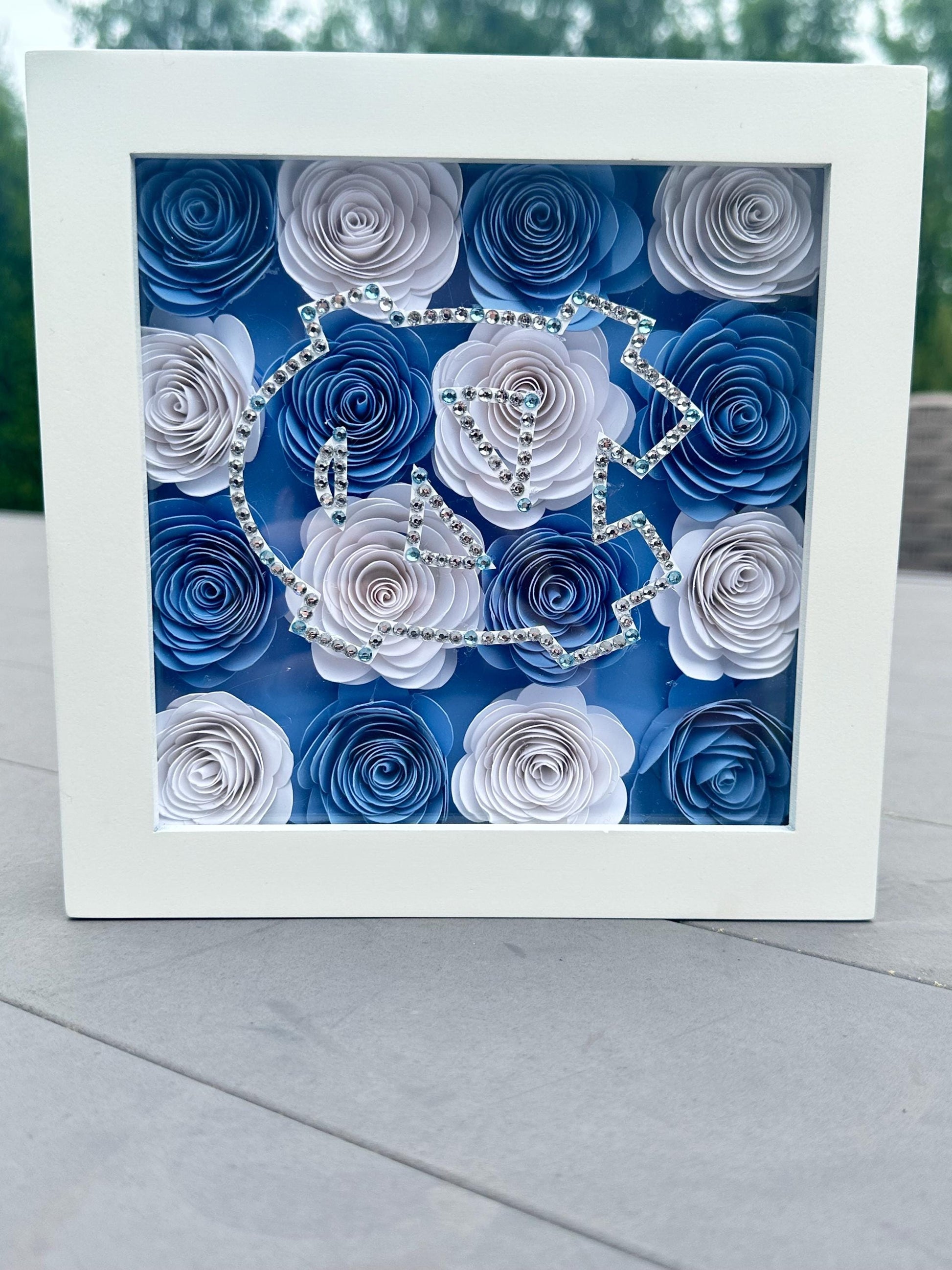 Fully Customizable: Blinged out Logo Flower Shadow Box *College Logo *Graduation Gift *Bed Party Decor *College Acceptance *High School Grad *College Commitment