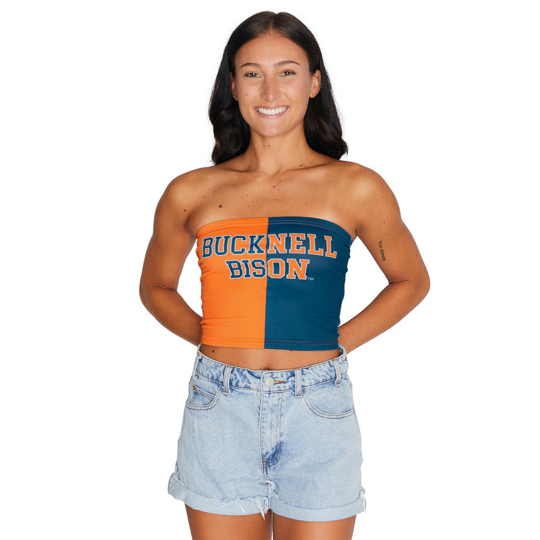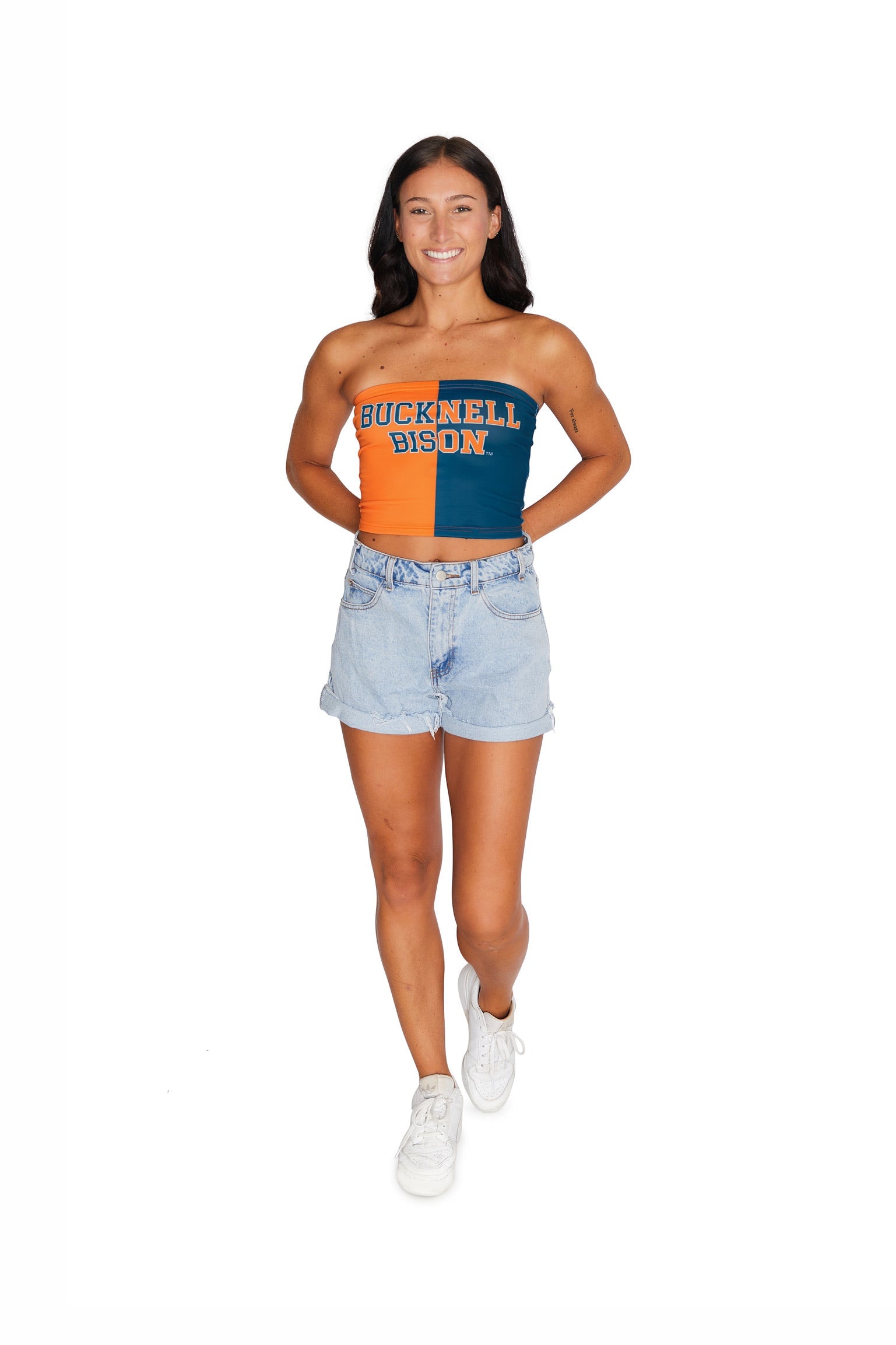 This super flattering Bucknell University Tube Top is perfect for college game day paired with our Navy Tailgate Skirt! Our Bucknell Bison Two Tone Tube Top's stretchy fabric makes it the perfect option for all body types. You'll never want to take this adorable tube top off! Go Bison!