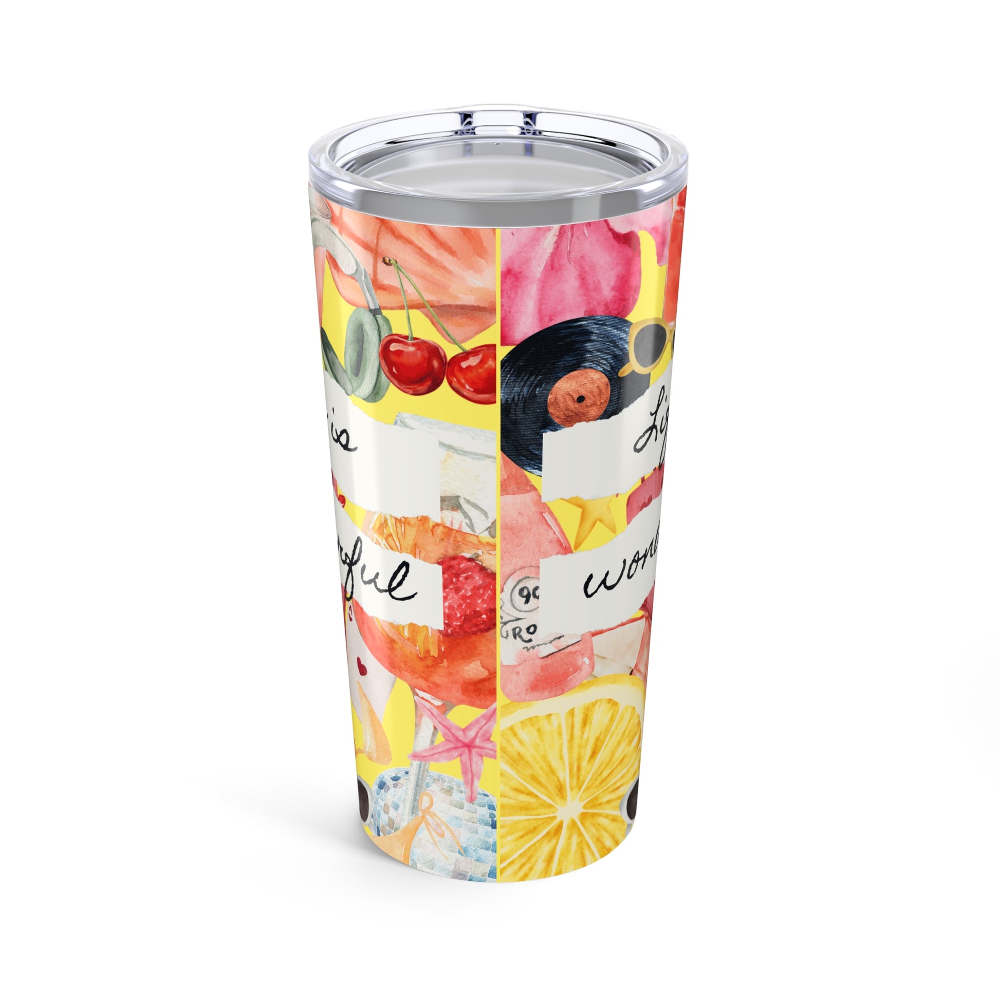 Introducing our vibrant 20oz tumbler, designed to brighten up your daily routine! This tumbler features a stunning wraparound print that embodies a whimsical and cheerful atmosphere, making every sip feel special. It's perfect for busy mornings, relaxing afternoons, or on-the-go adventures. Whether you're at home, heading to work, or enjoying outdoor activities, this tumbler is your ideal companion. Targeted towards vibrant personalities who appreciate style and functionality, this tumbler is an excellent gift for friends, family, or yourself. Perfect for holidays, celebrations, and everyday use, it brings joy to any occasion! Product features - Stainless Steel: Durable and resistant to rust and staining. - Hot or Cold: Excellent for keeping beverages at the right temperature. - Dishwasher-safe: Easy to clean and maintain. - Glossy Finish: Features a vibrant, full-color decoration. - Vacuum Insulated: Keeps drinks hot or cold longer. Care instructions - Clean in dishwasher or wash by hand with warm water and dish soap