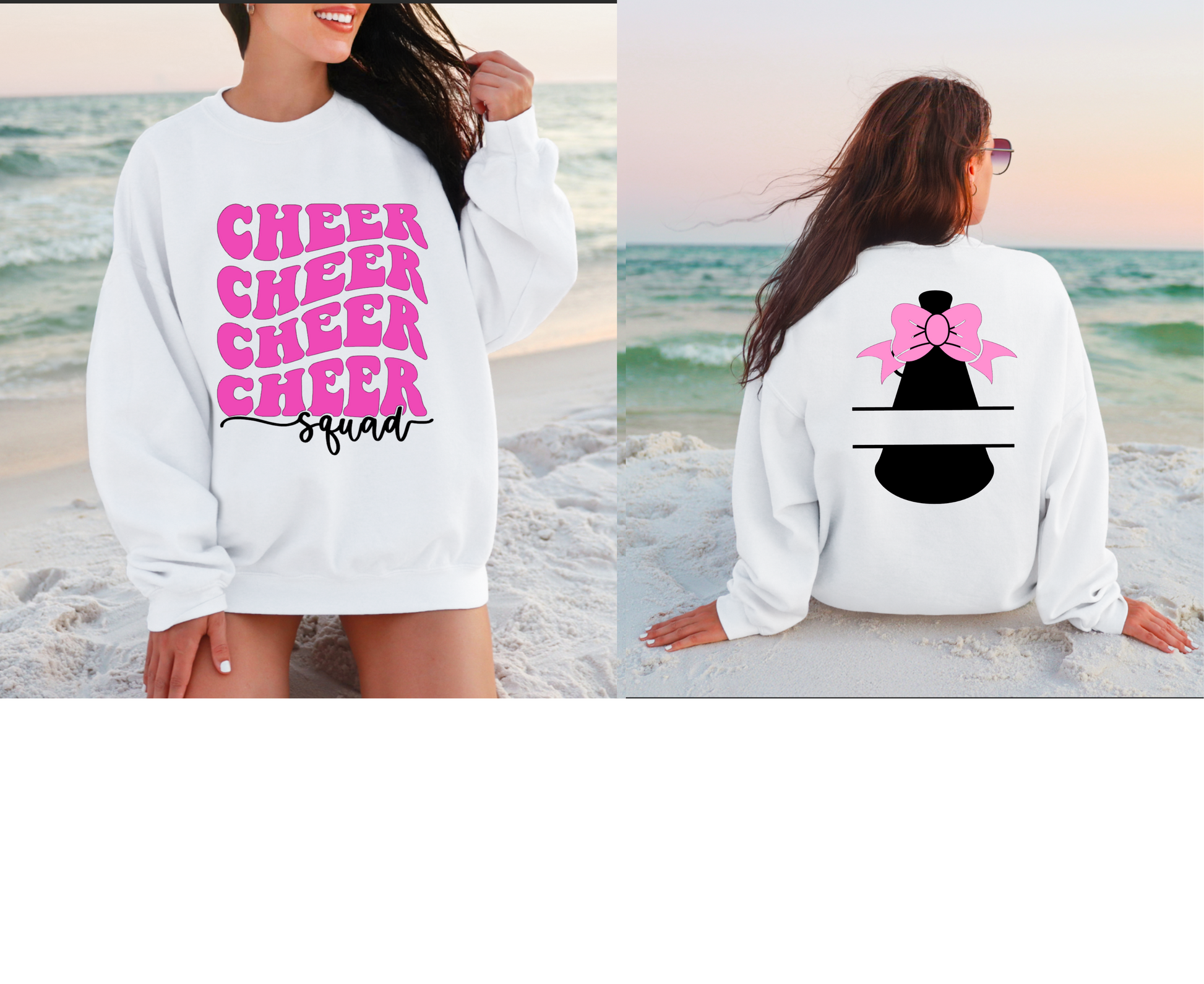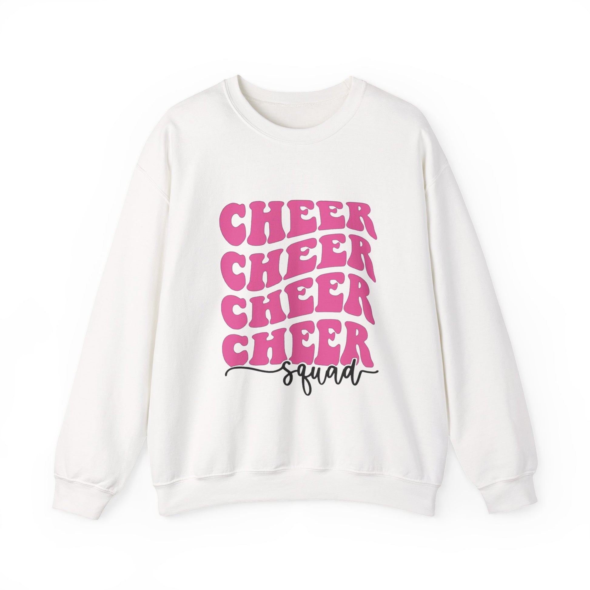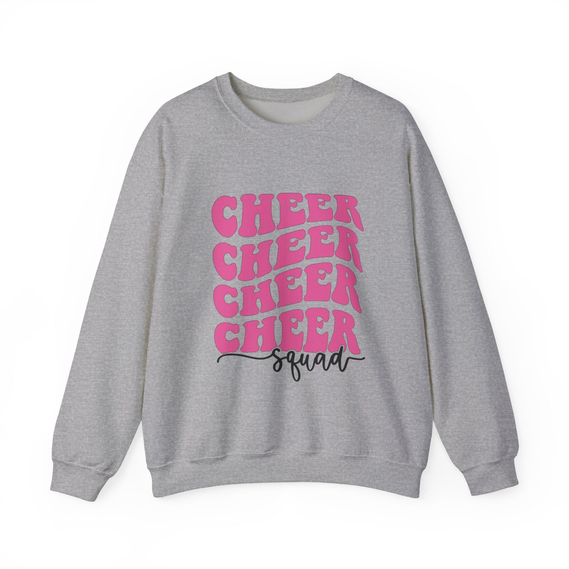 Show your team spirit with this playful Cheer Squad Crewneck Sweatshirt! Featuring a fun "Cheer Squad" front design and a customizable girly megaphone on the back, you can add your name, team name, or any unique touch to make it truly yours. Perfect for cheerleaders who want to stand out and celebrate their squad in style and comfort.