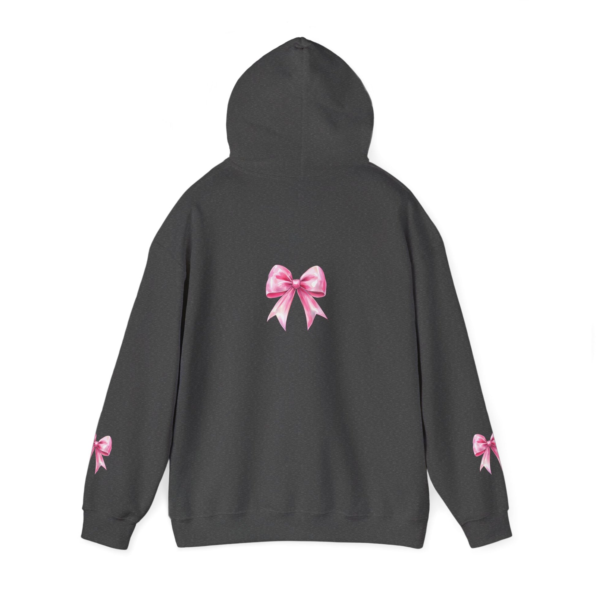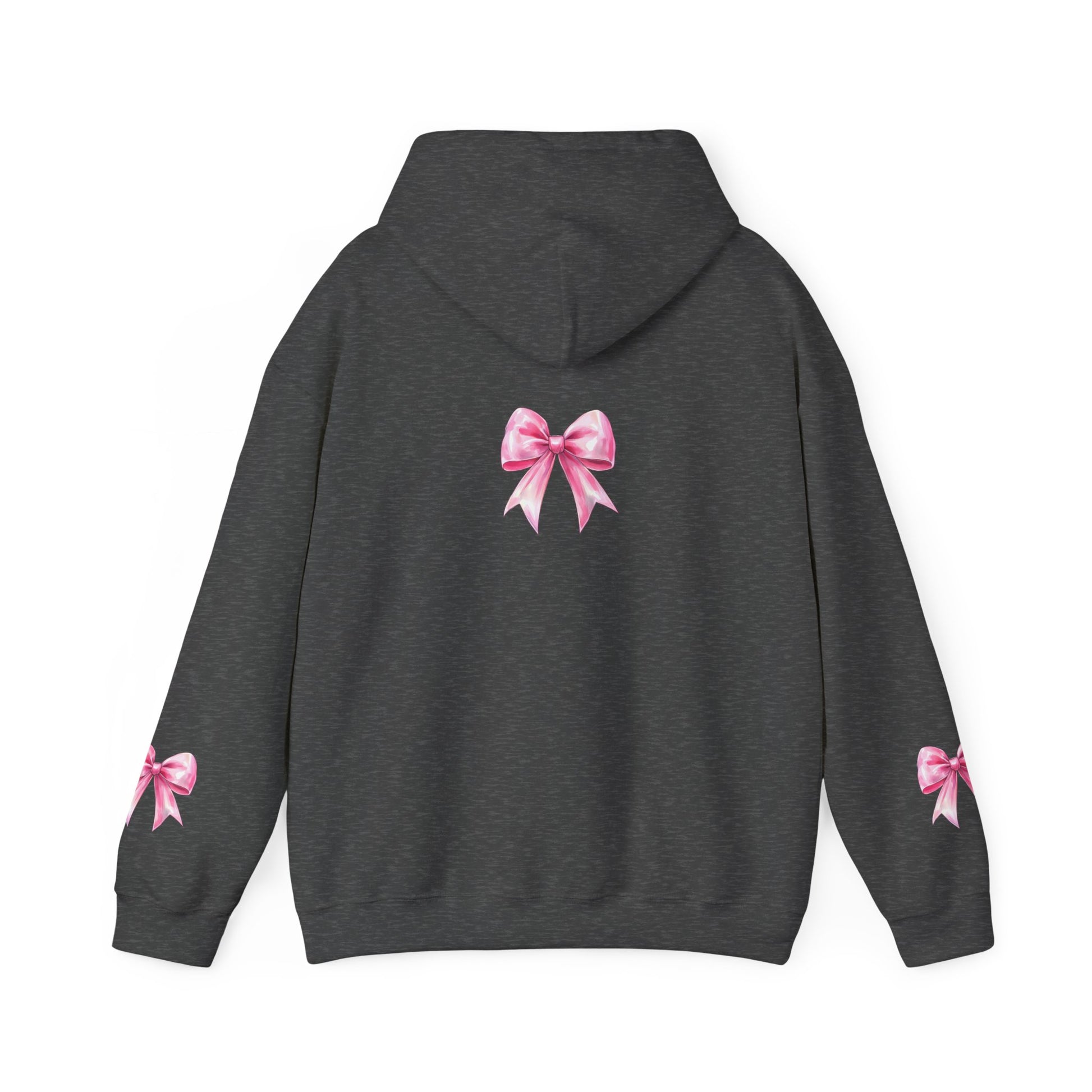 Introducing a delightful Unisex Heavy Blend™ Hooded Sweatshirt that radiates warmth and positivity. This cozy hoodie features a cheerful design adorned with playful pink bows, making it a perfect choice for spirited individuals who love to express joy and celebrate. Ideal for cheerleaders, team supporters, or anyone looking to add a dash of fun to their wardrobe, it's perfect for casual outings or cozy nights in. Wear it during festive gatherings, holiday celebrations, or simply while lounging at home. This sweatshirt not only keeps you comfortable but also elevates your mood with its vibrant aesthetic.