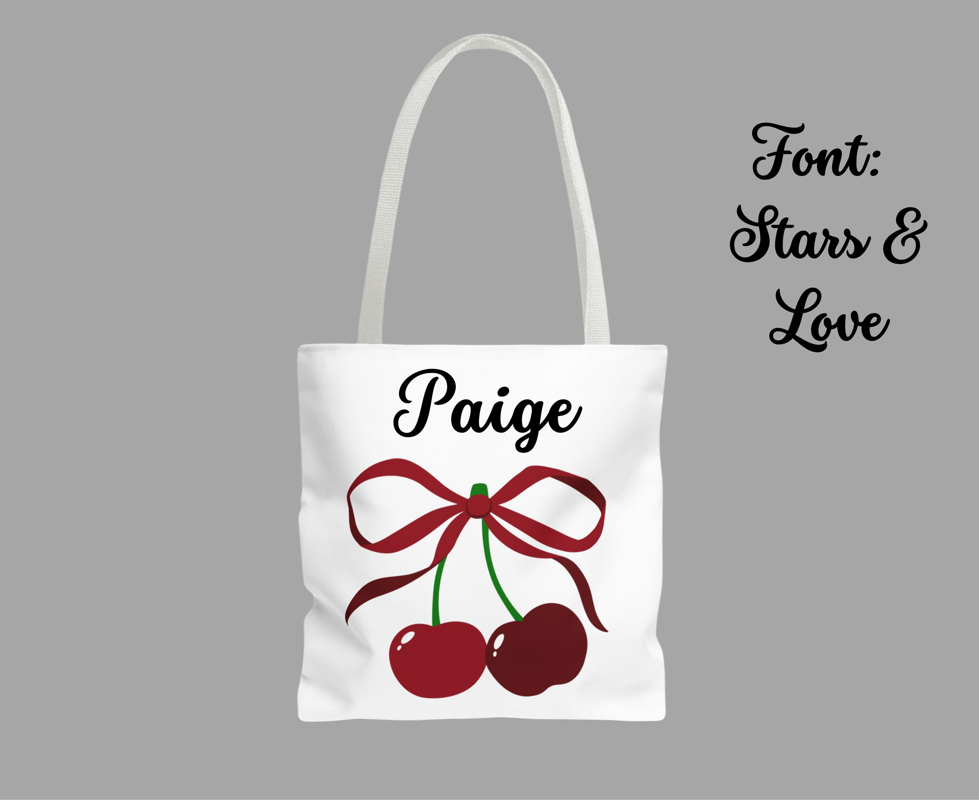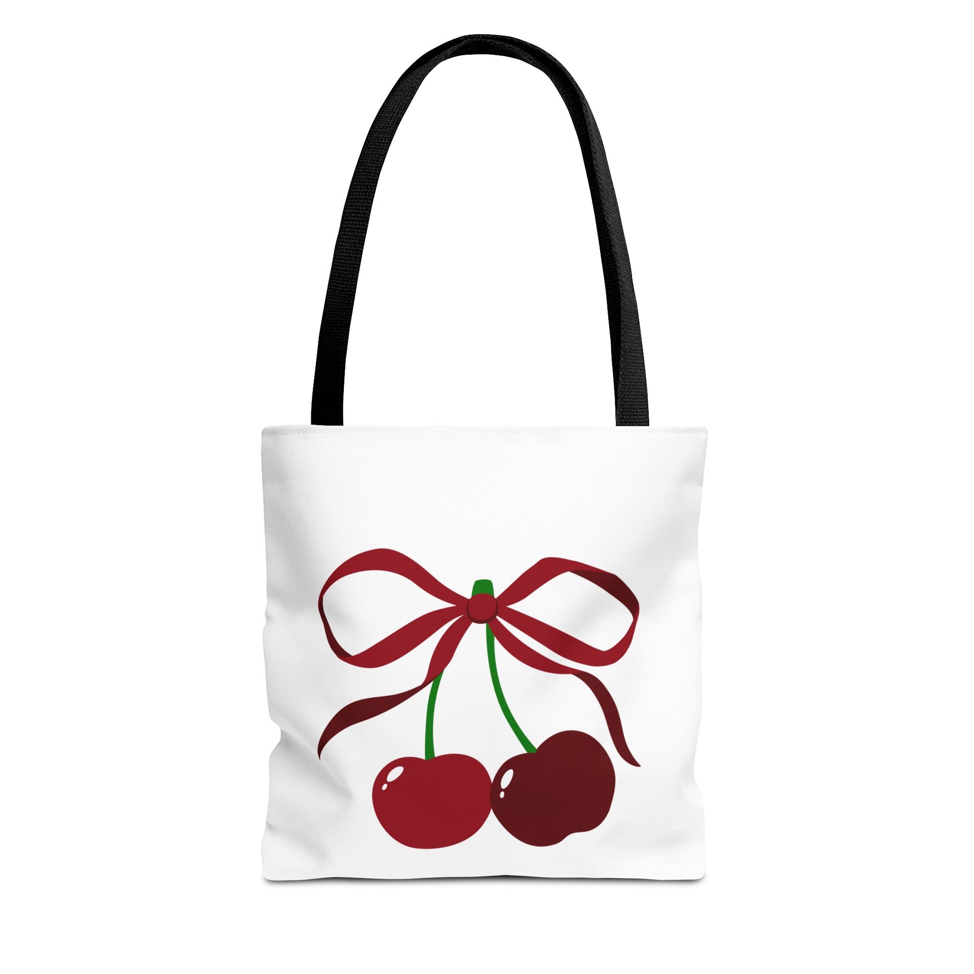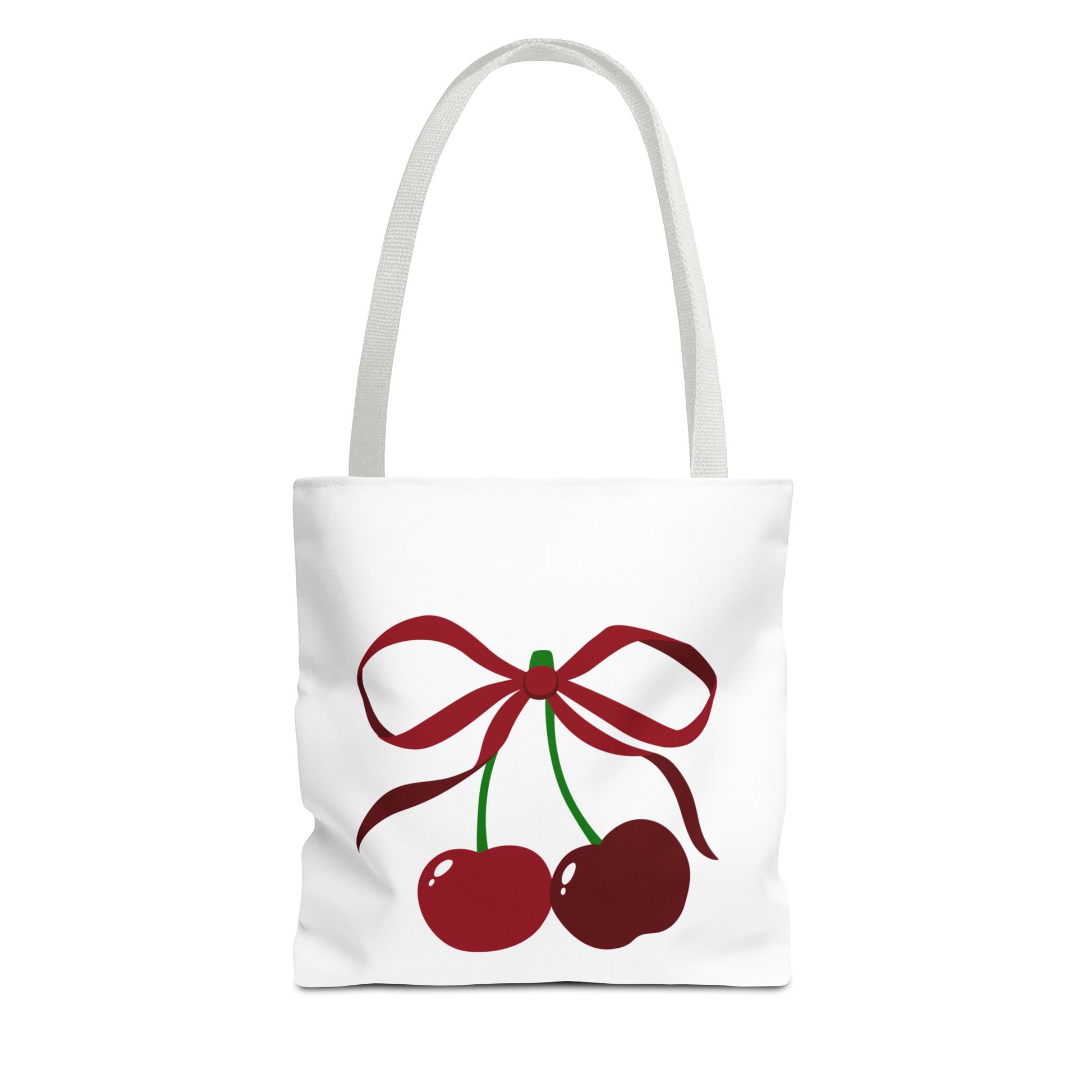 Customizable: Cherry Bow Tote Bag, Cute Carry-All for Everyday, Gift for Her, Eco-Friendly Shopping Bag, Perfect for Summer Outings