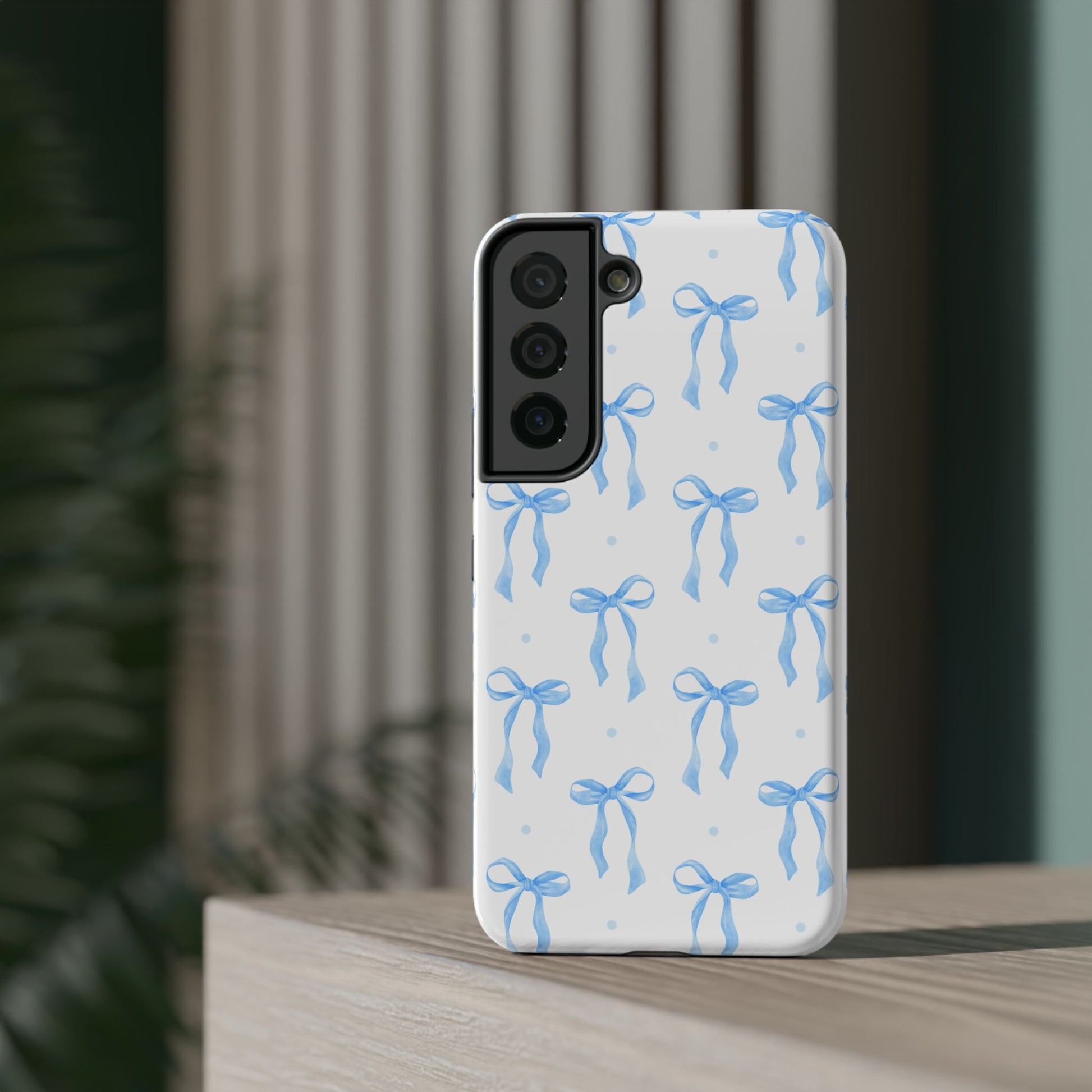 Customizable: Chic Blue Coquette Bow Impact-Resistant Phone Case