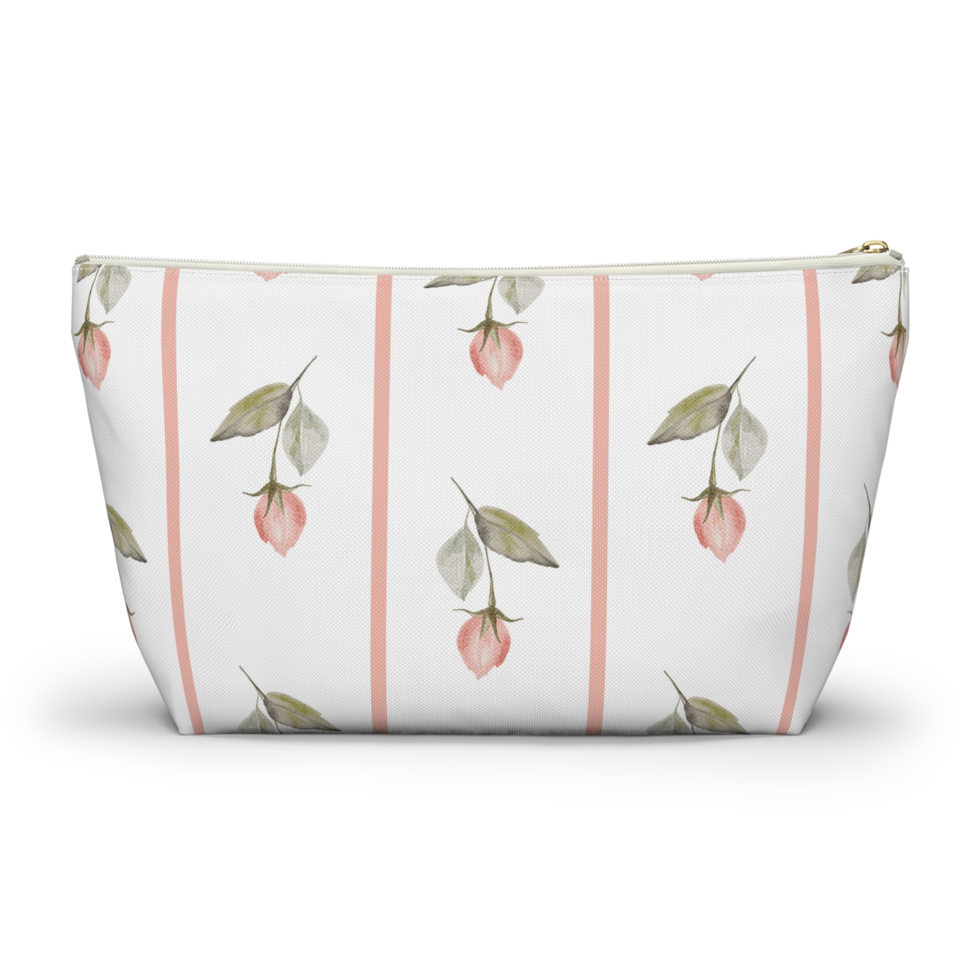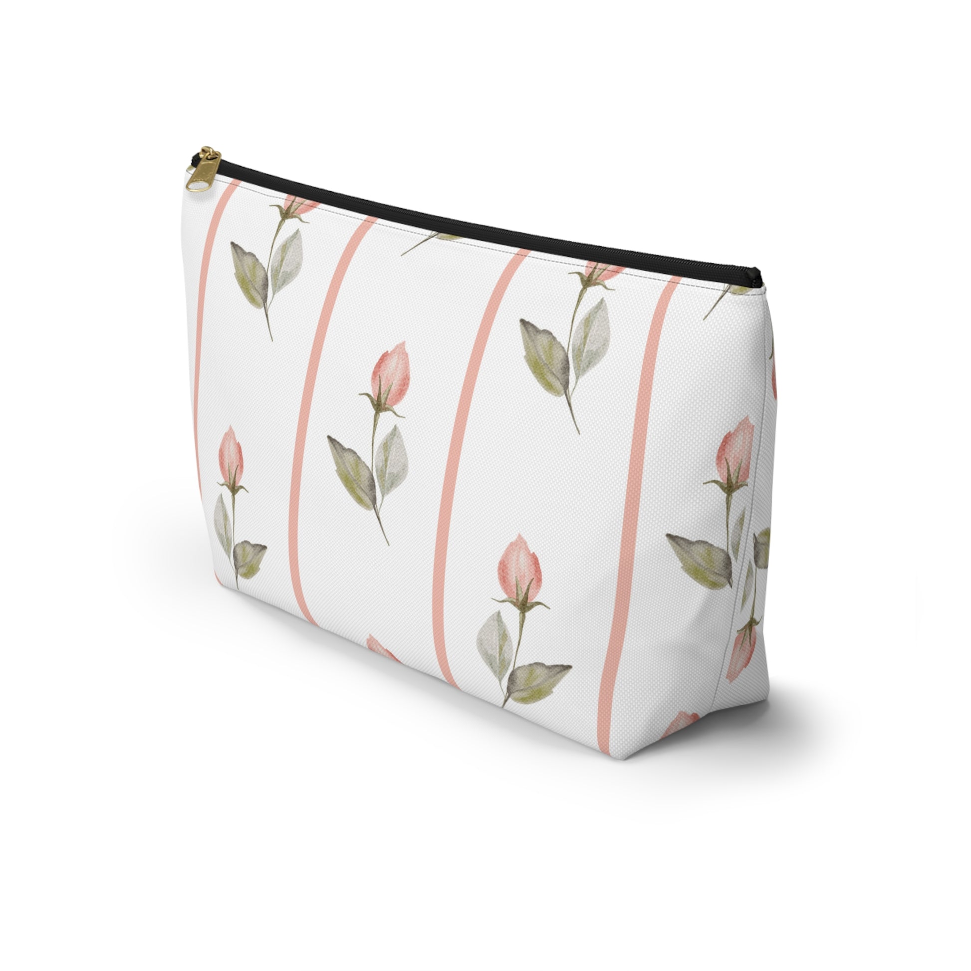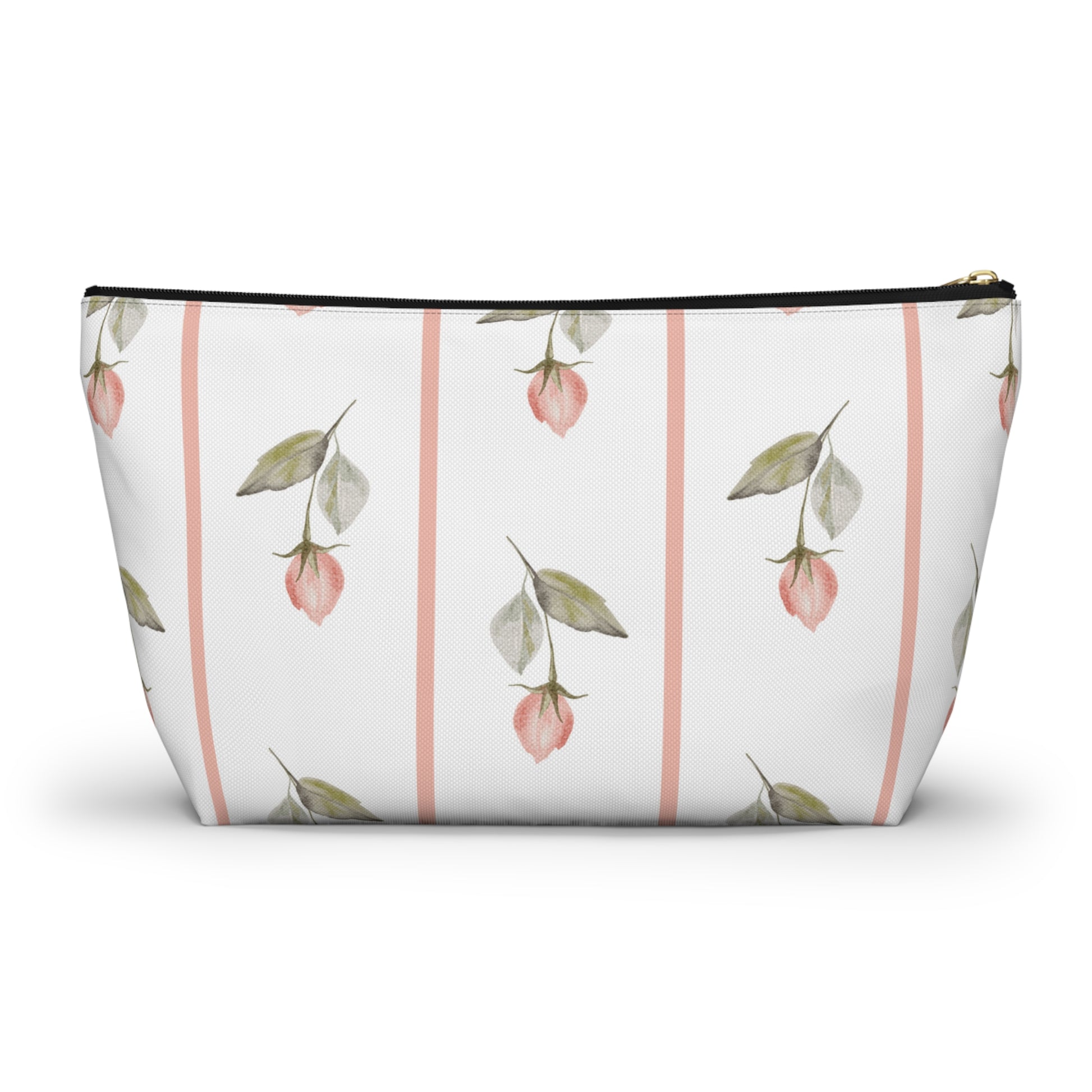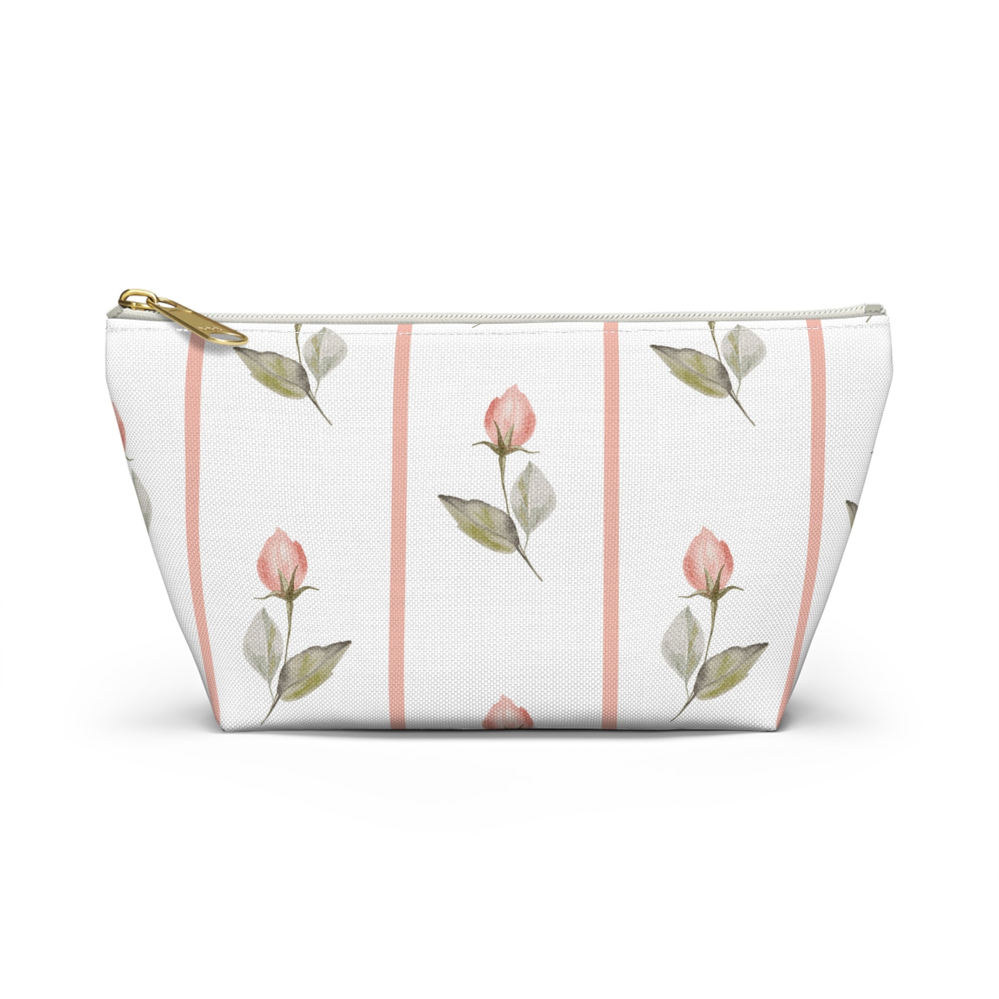 Customizable: Chic Floral Accessory Pouch for Women, Makeup Bag, Travel Toiletry Organizer, Gift for Her, Rose Striped Design