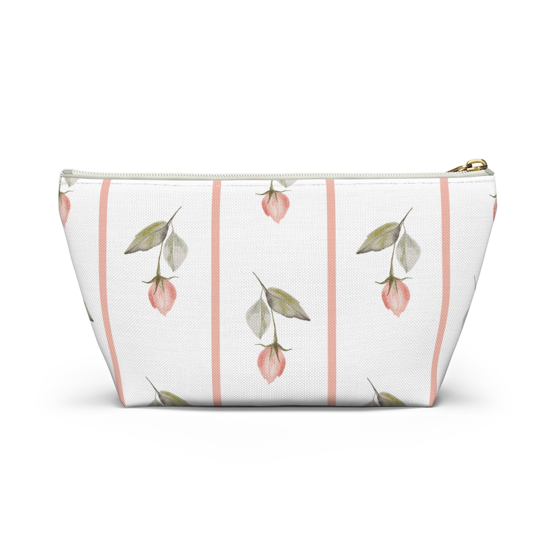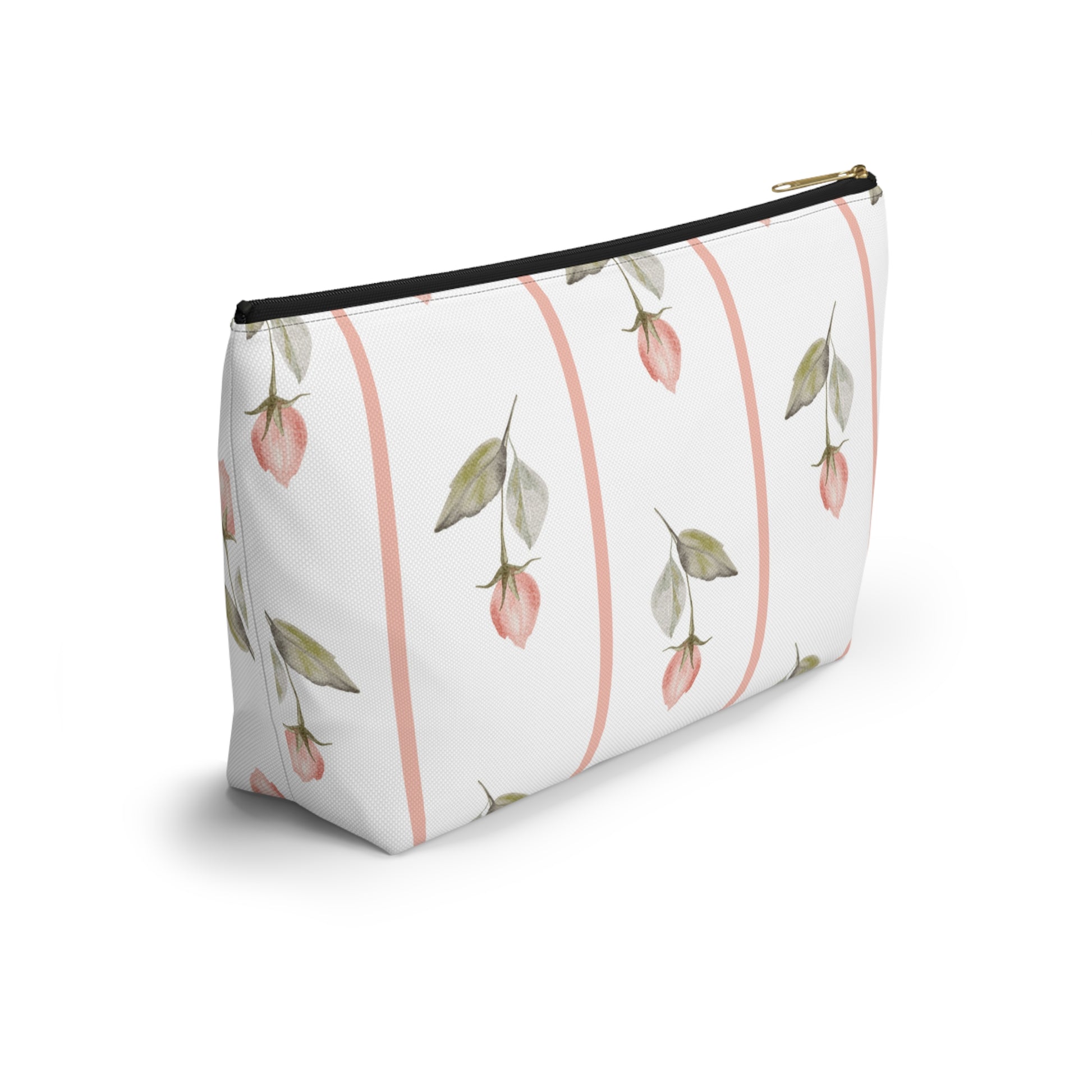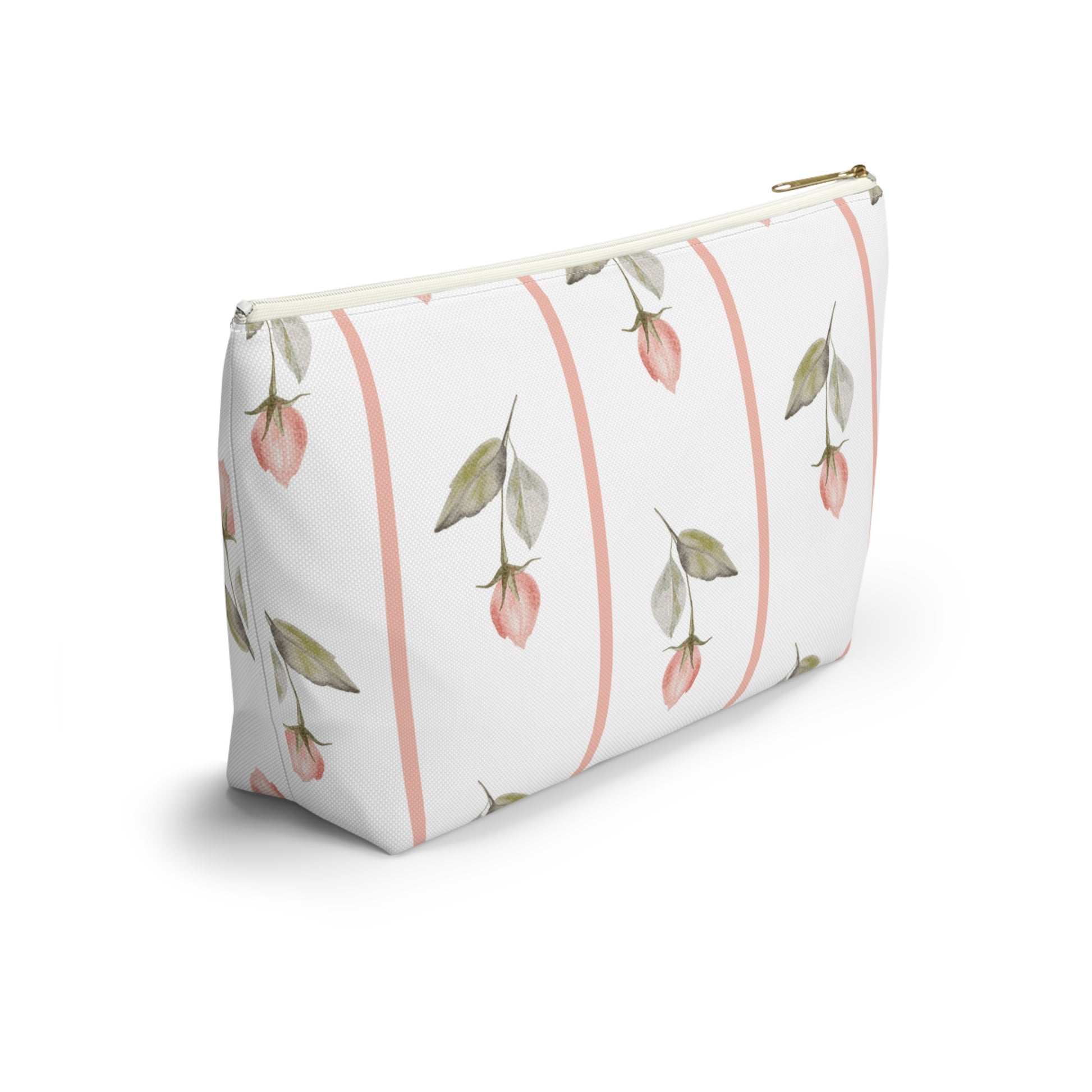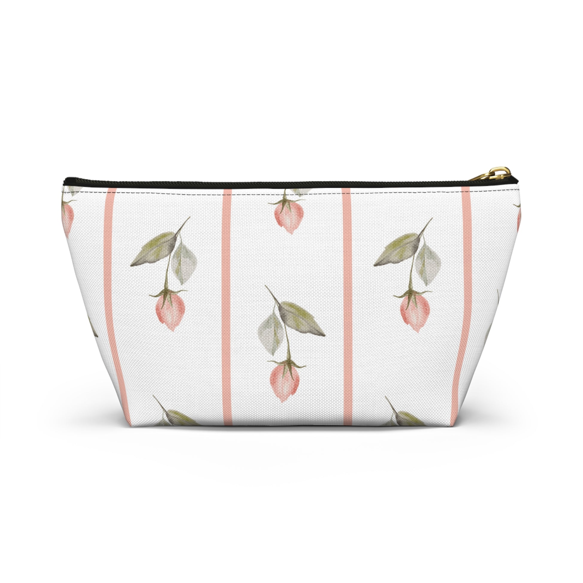 Customizable: Chic Floral Accessory Pouch for Women, Makeup Bag, Travel Toiletry Organizer, Gift for Her, Rose Striped Design