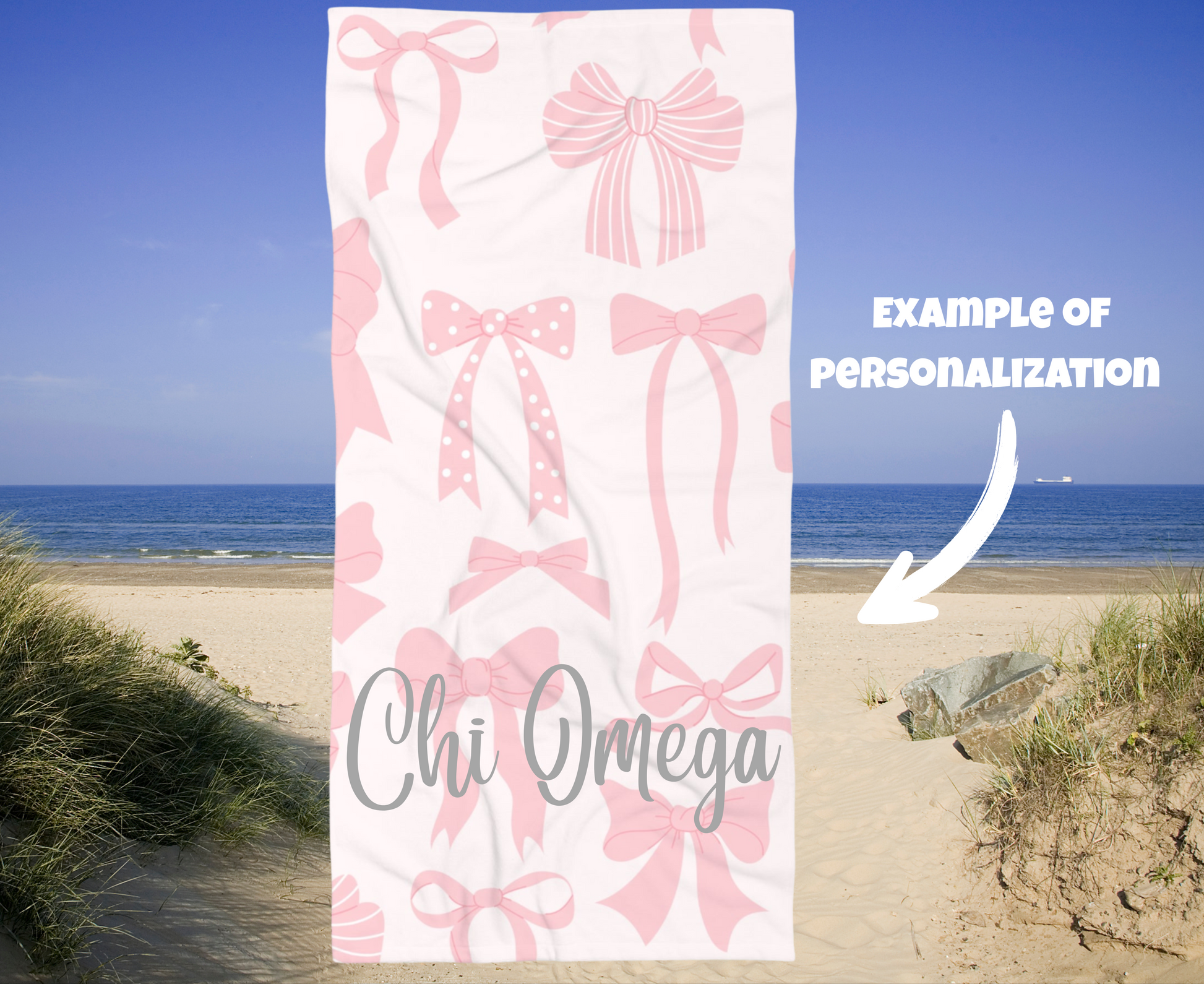 Customizable: Chic Pink Bow Beach Towel, Stylish Beach Accessory, Summer Pool Towel, Gift for Her, Elegant Towel for Beach Days