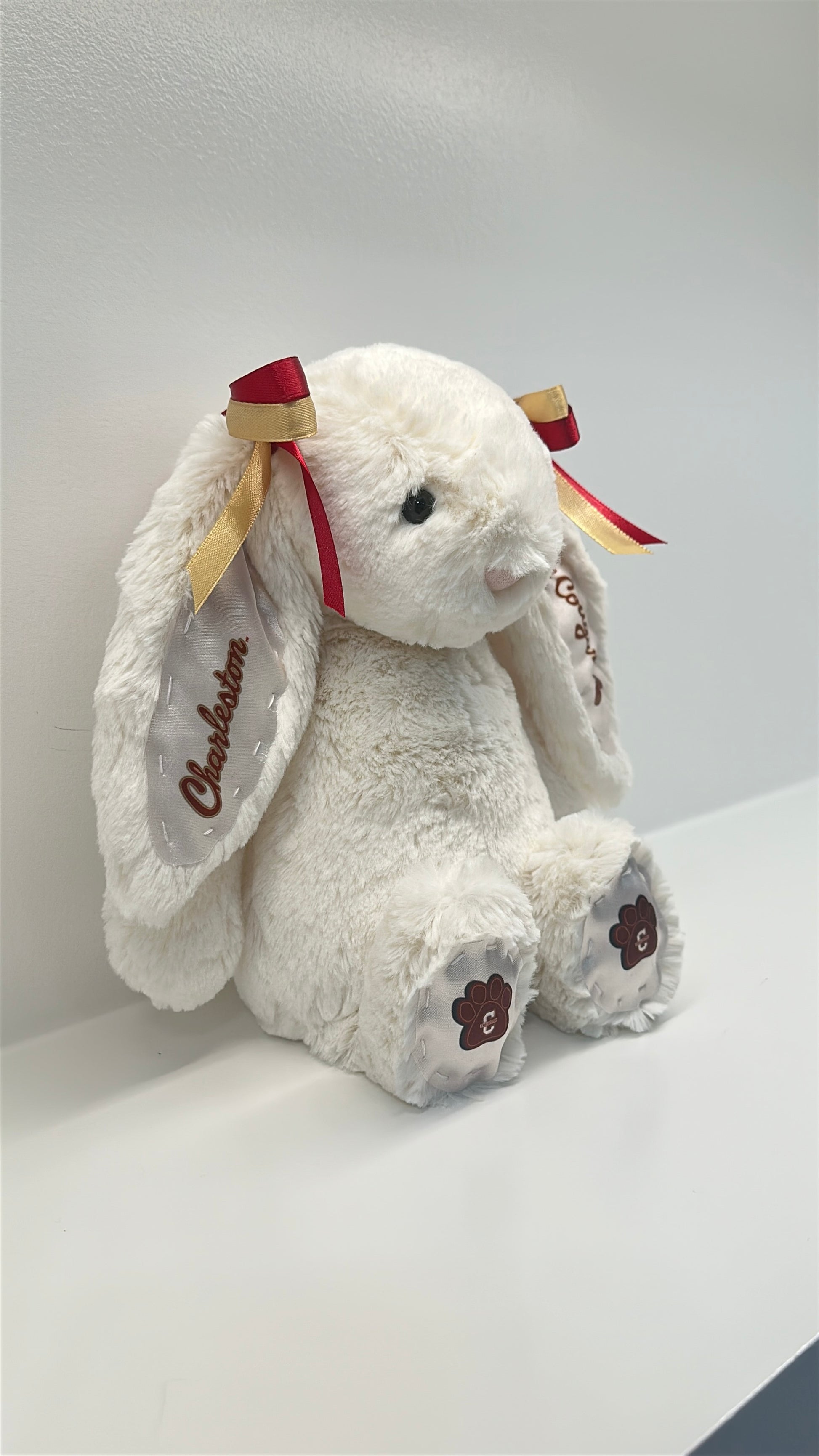 Snuggle up with this Custom College Jellycat Bashful Bunny. Each plush is adorned with custom fabric for College of Charleston, featuring coordinated ears, feet, and matching bows that bring your university’s colors and spirit to life. This adorable plush makes the perfect gift for newly accepted students, homesick college kids, devoted fans, alumni, and anyone who wants a cozy reminder of campus life.