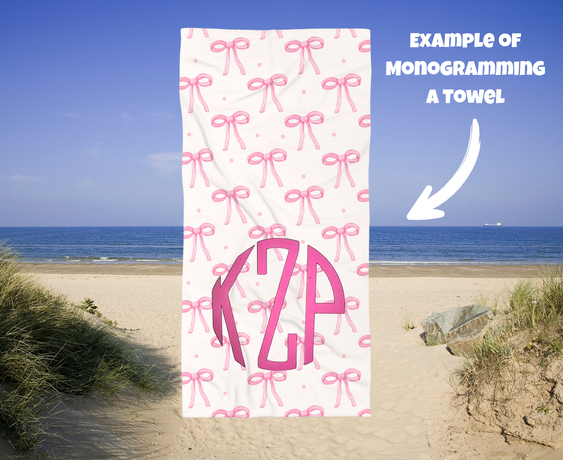 Customizable: Cute Pink Bow Beach Towel, Summer Towel, Pool Accessory, Gift for Her, Beach Accessories, Vacation Essentials