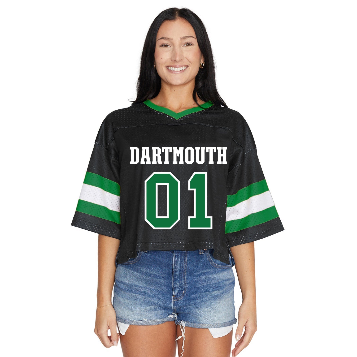 The must have football jersey top for all Dartmouth College fans! With an authentic jersey feel and cropped fit this women's college jersey is a must have! Our Dartmouth Football Jersey's soft fabric makes it the perfect option for all Dartmouth fans.