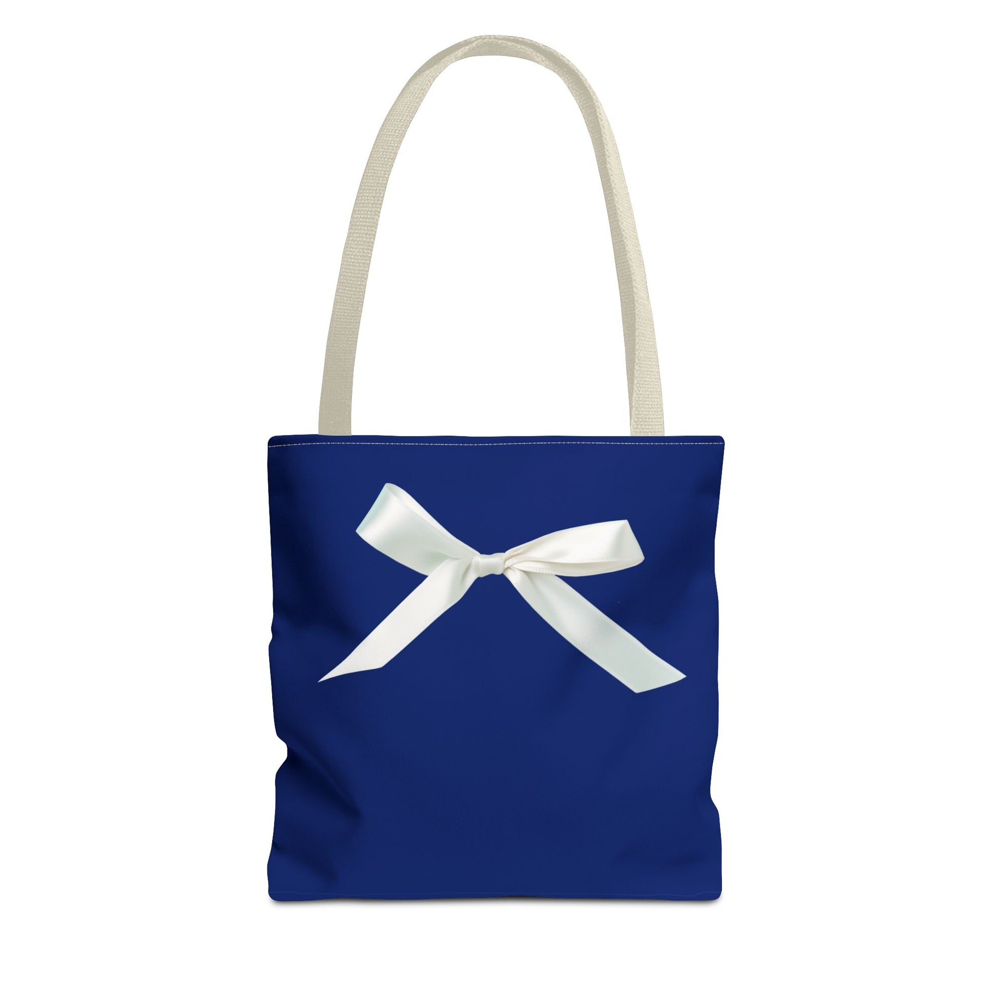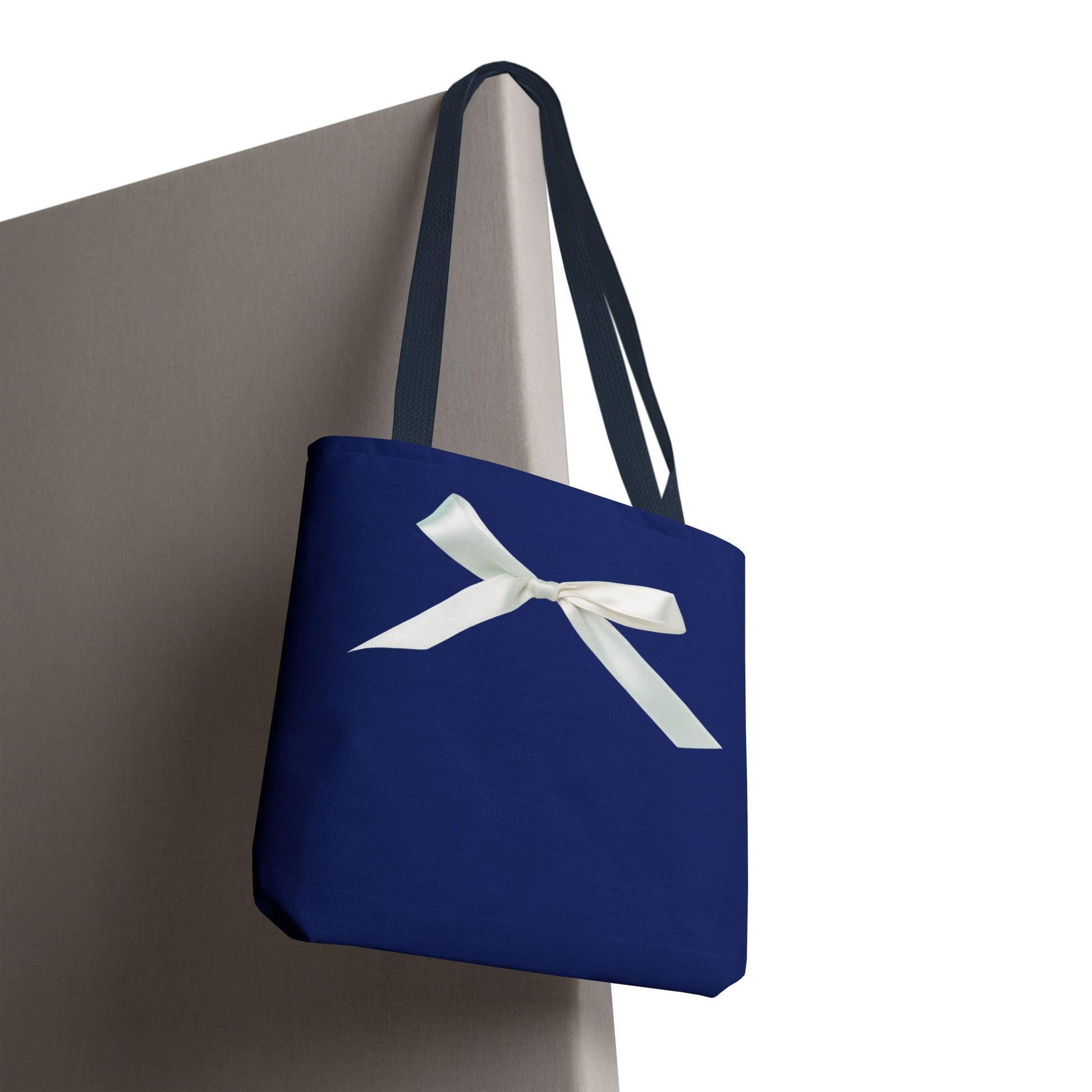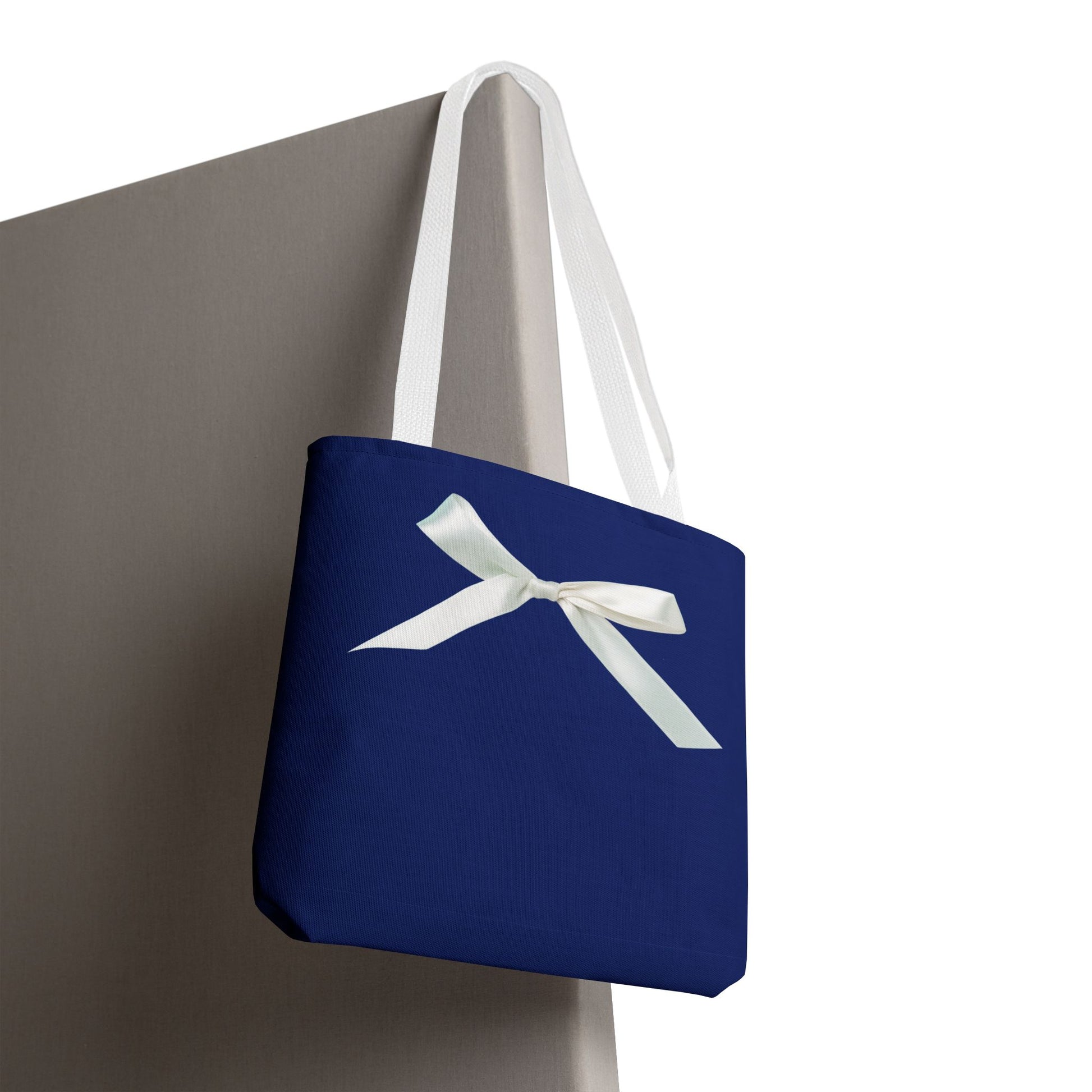 Elegant Blue Tote Bag with White Bow, Stylish Carryall, Perfect Gift for Her, Bridesmaid Tote, Wedding Accessory, Everyday Use