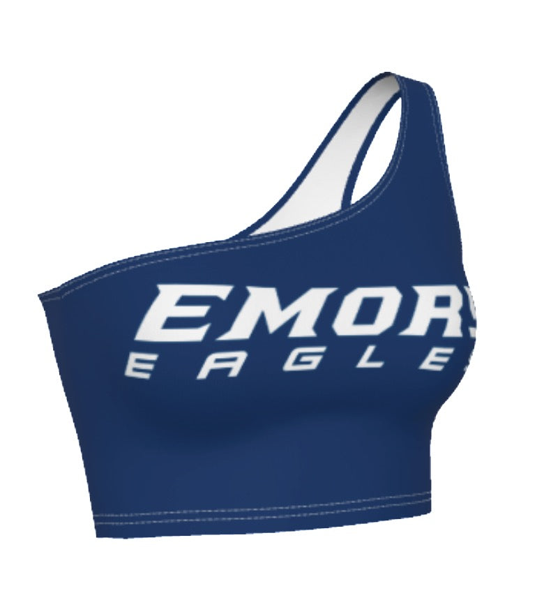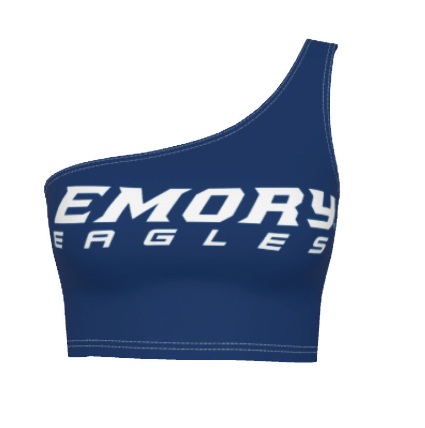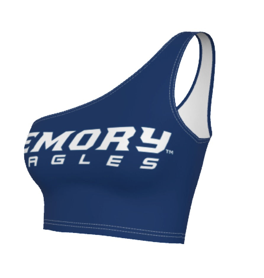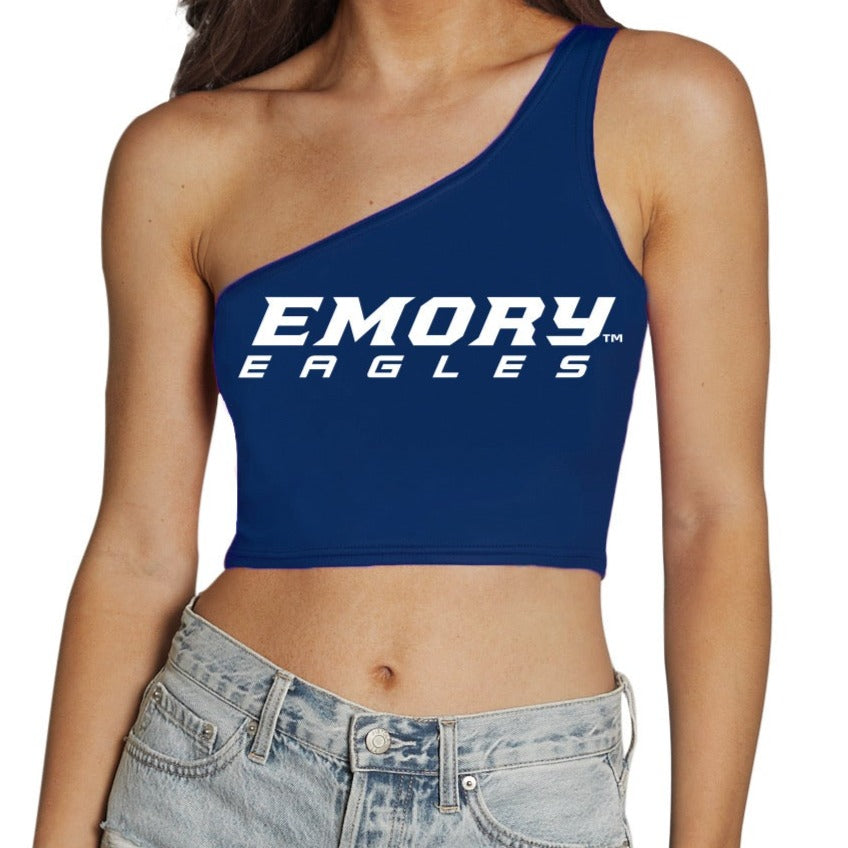 This super flattering Emory University Navy One Shoulder Top is perfect for college game day! Our Emory Eagles One Shoulder Top's stretchy fabric makes it the perfect option for all body types. You'll never want to take this adorable one shoulder top off!
