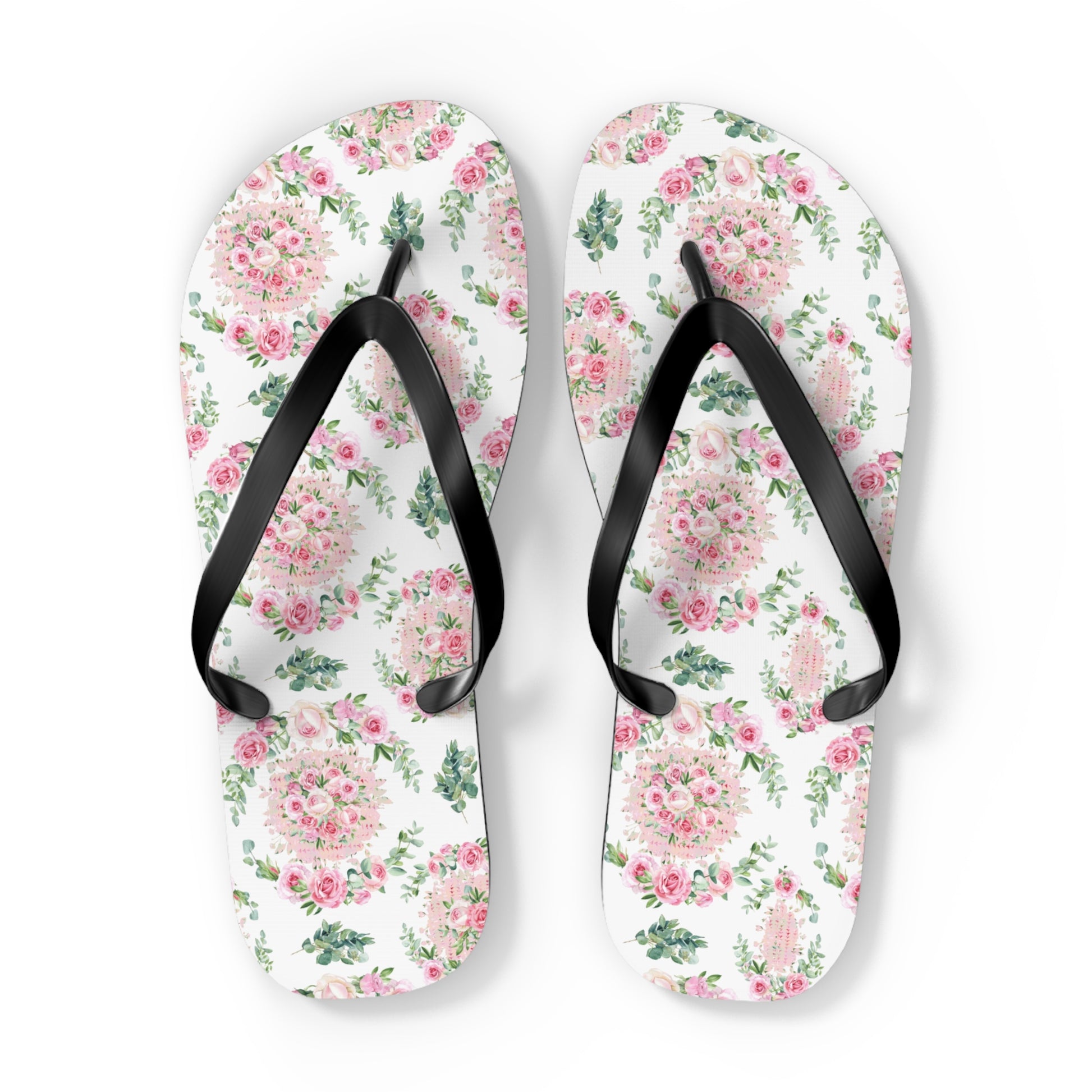Customizable: Floral Aesthetic Flip Flops, Trendy Beachwear, Vacation Vibes, Dorm Shoes, Shower Shoes