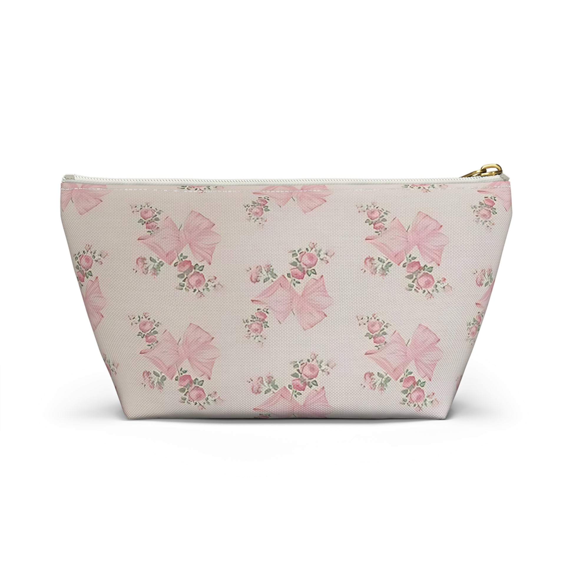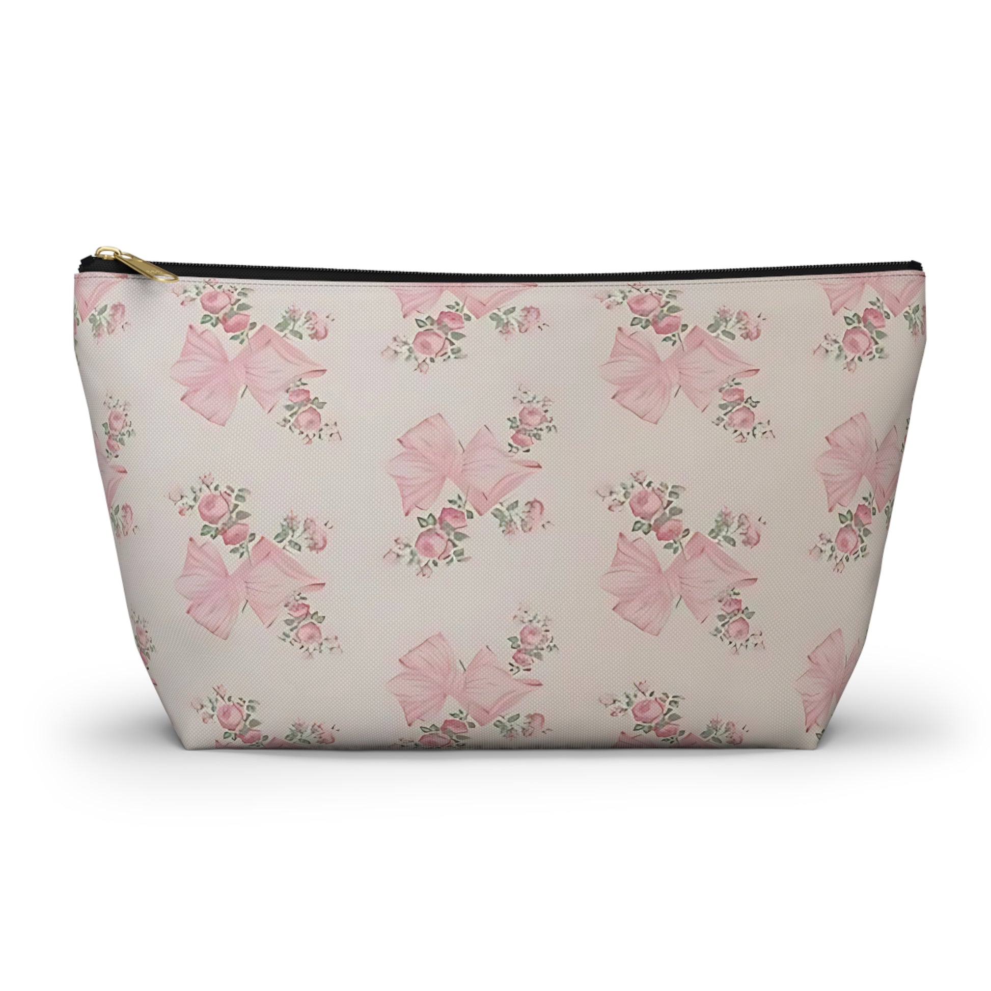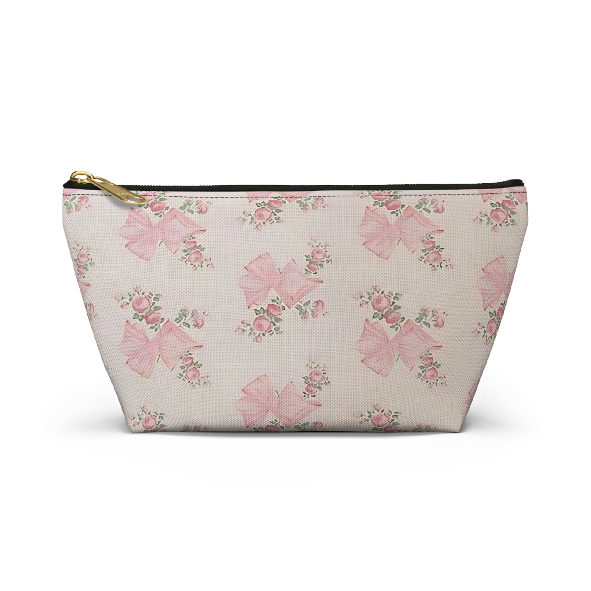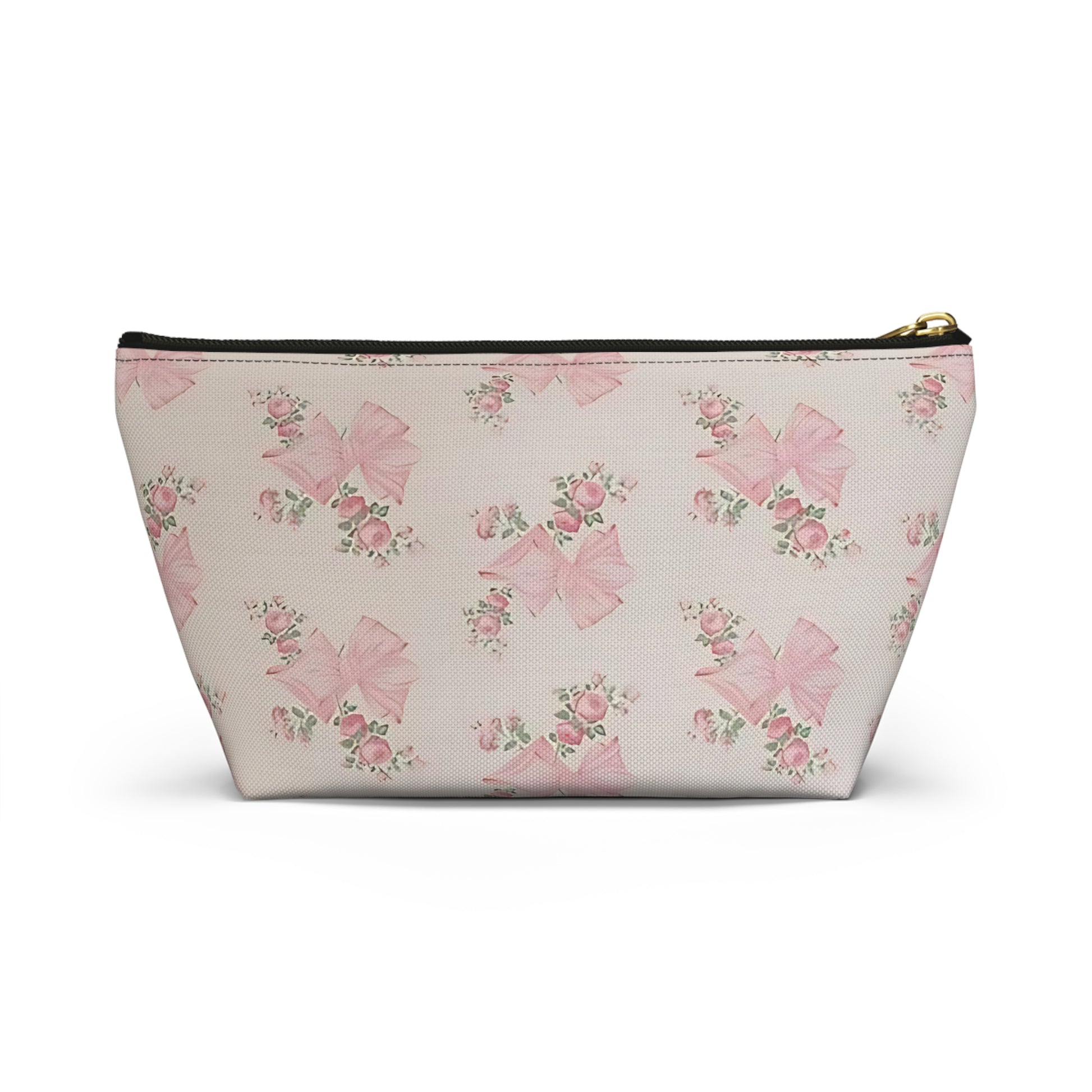 Floral Bow Accessory Pouch - Cute Makeup Bag, Gift Idea for Her, Wedding Favors, Travel Organizer, Floral Storage