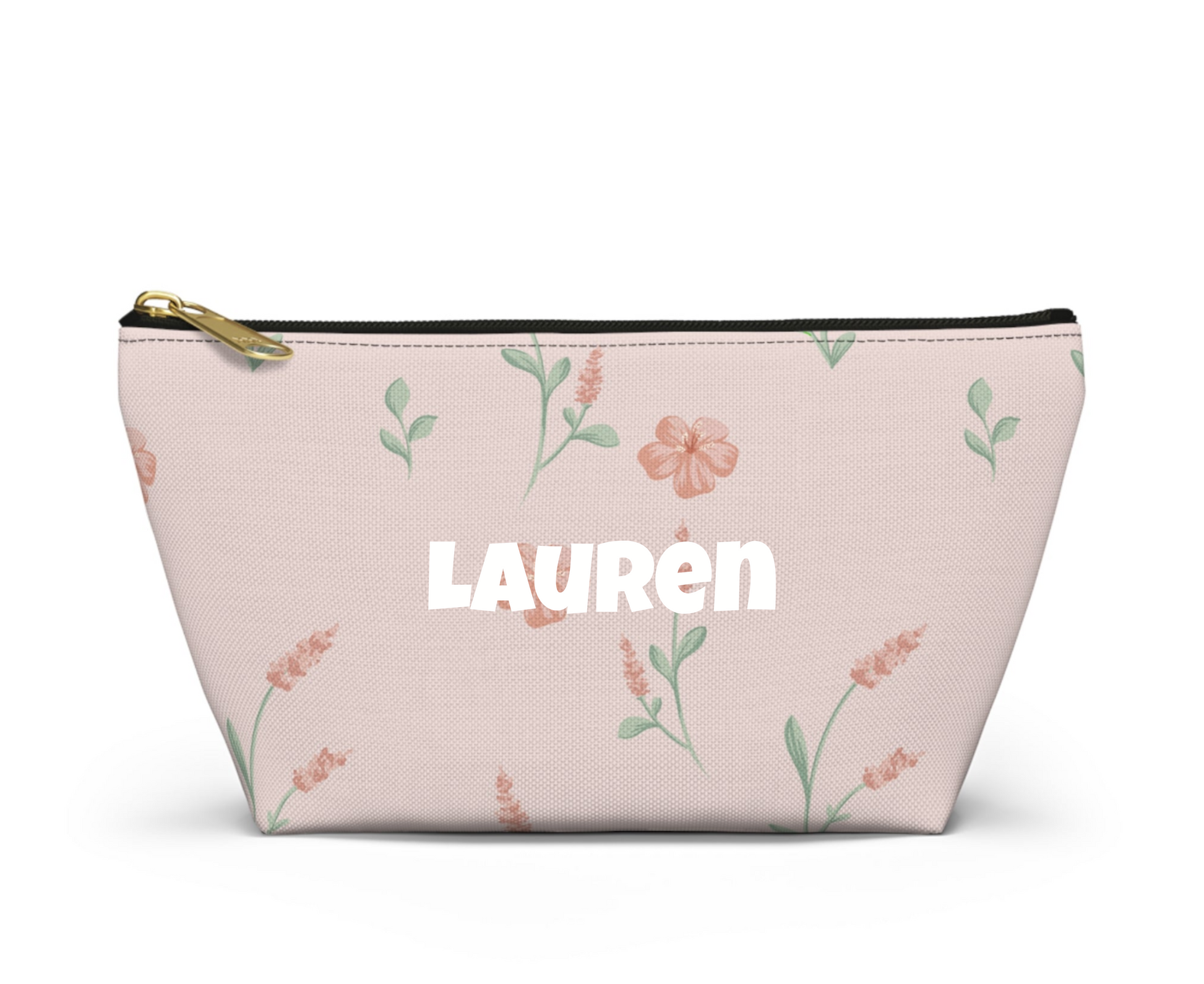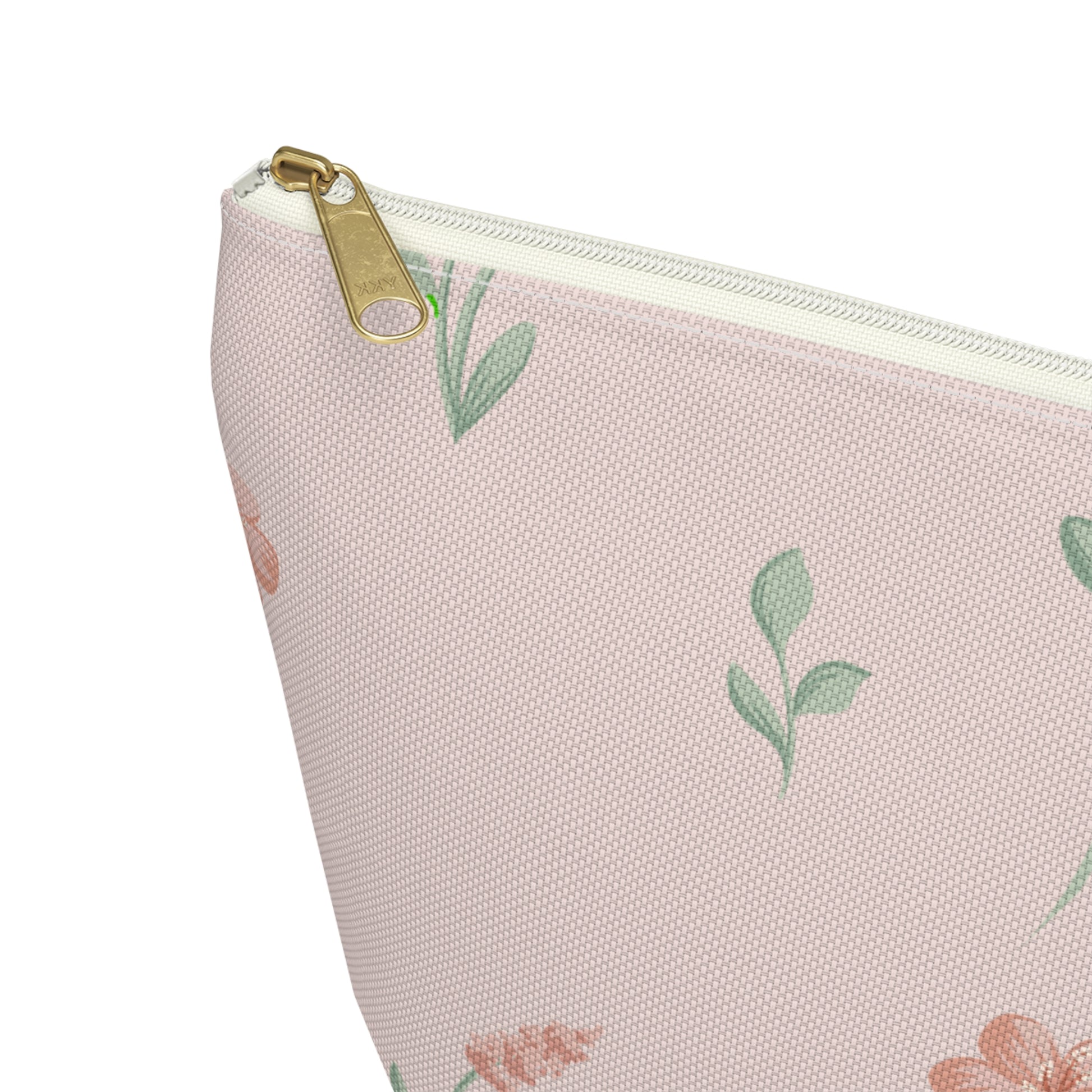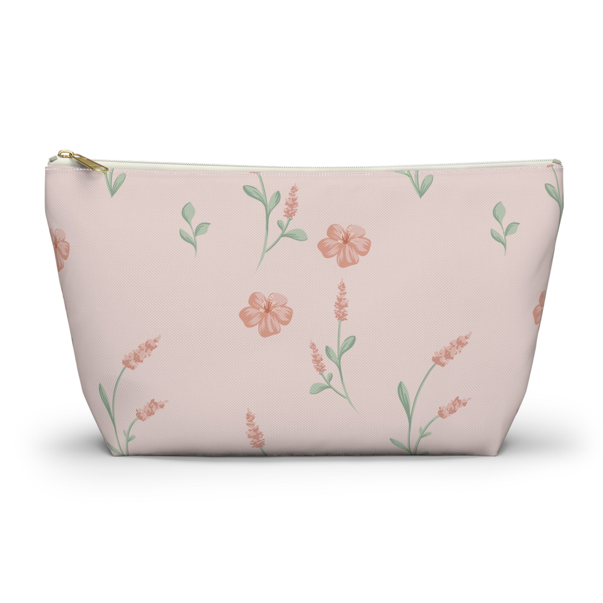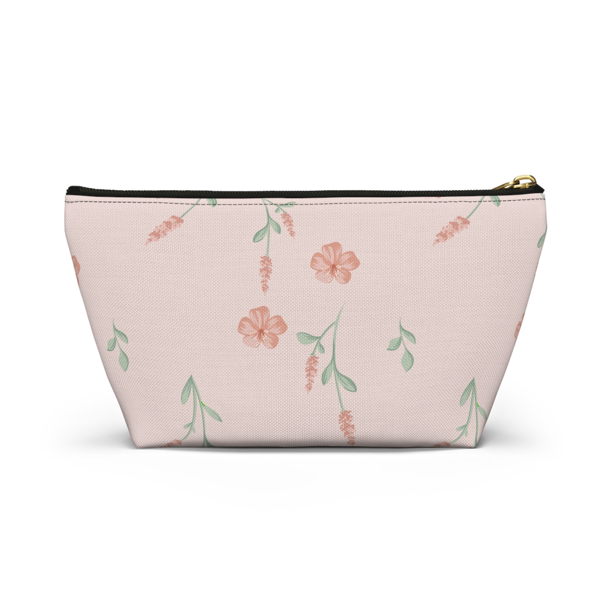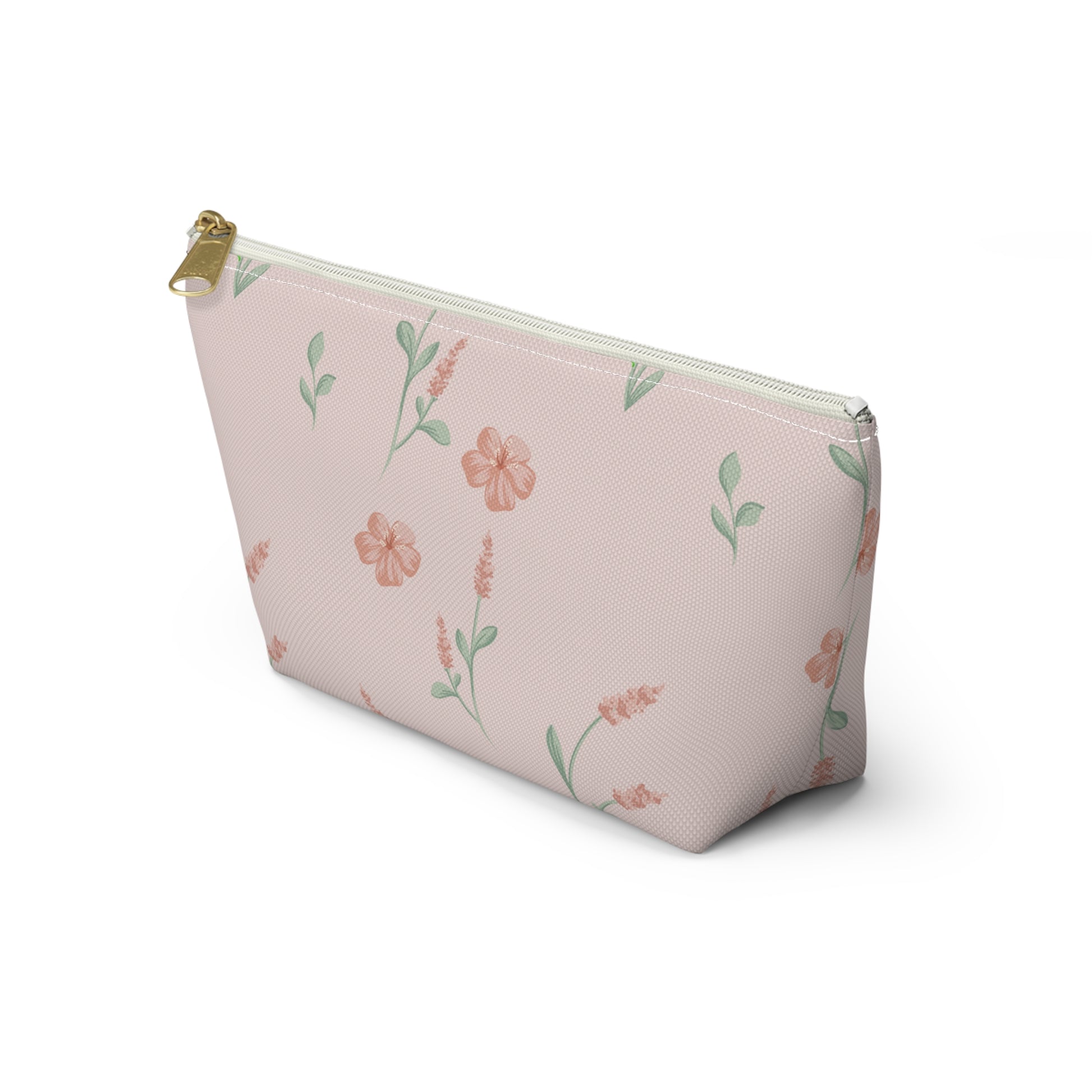Customizable: Floral Cosmetic Bag with T-Bottom, Makeup Organizer, Flower Print Pouch, Cute Travel Accessory, Gift for Her, Mother’s Day