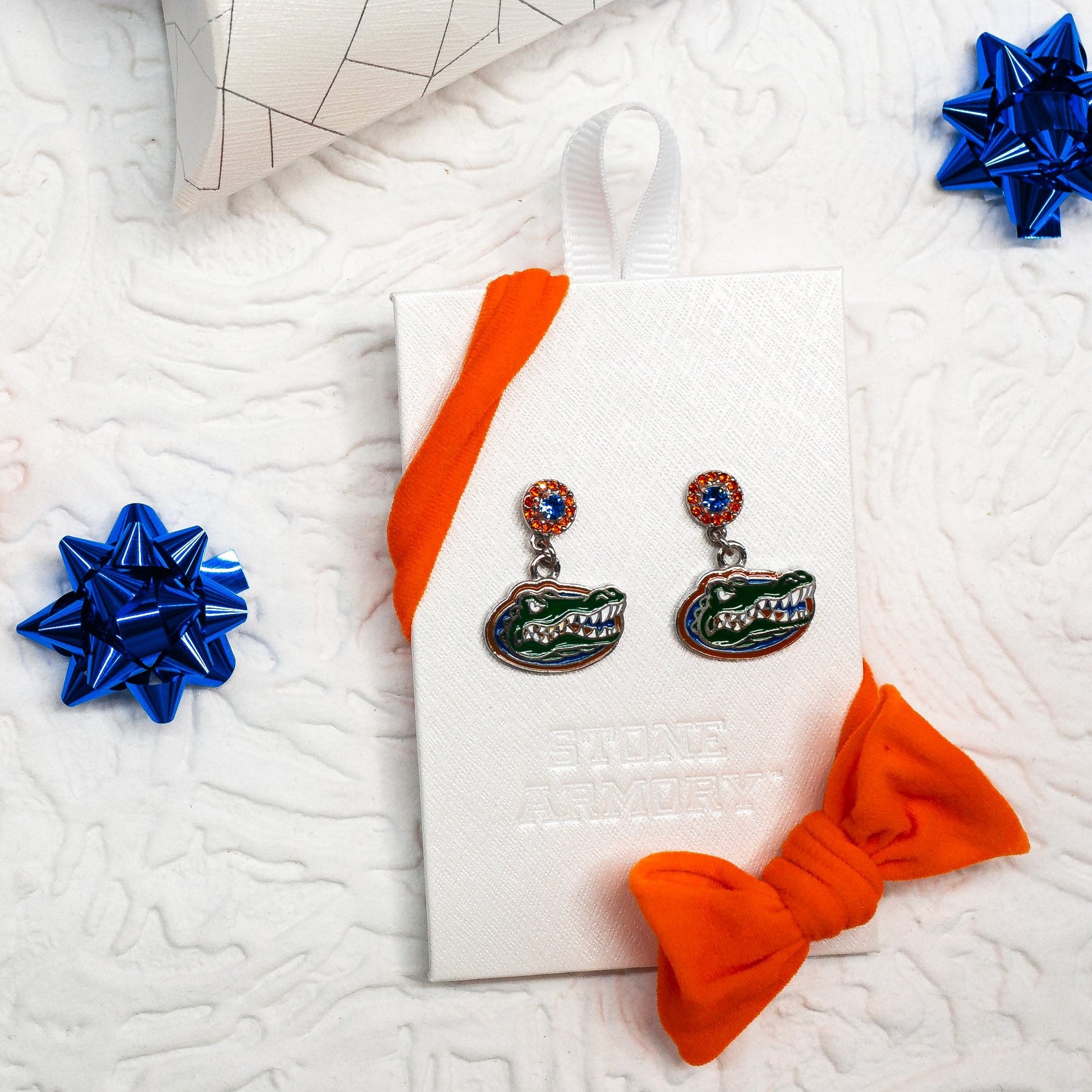 - 💙TREASURE YOUR Florida Gators SPIRIT: These Stone Armory University of Florida drop earrings are officially licensed. This classic pair of Florida Gator earrings with orange and blue crystals is a great way to show off your Florida Gator pride!