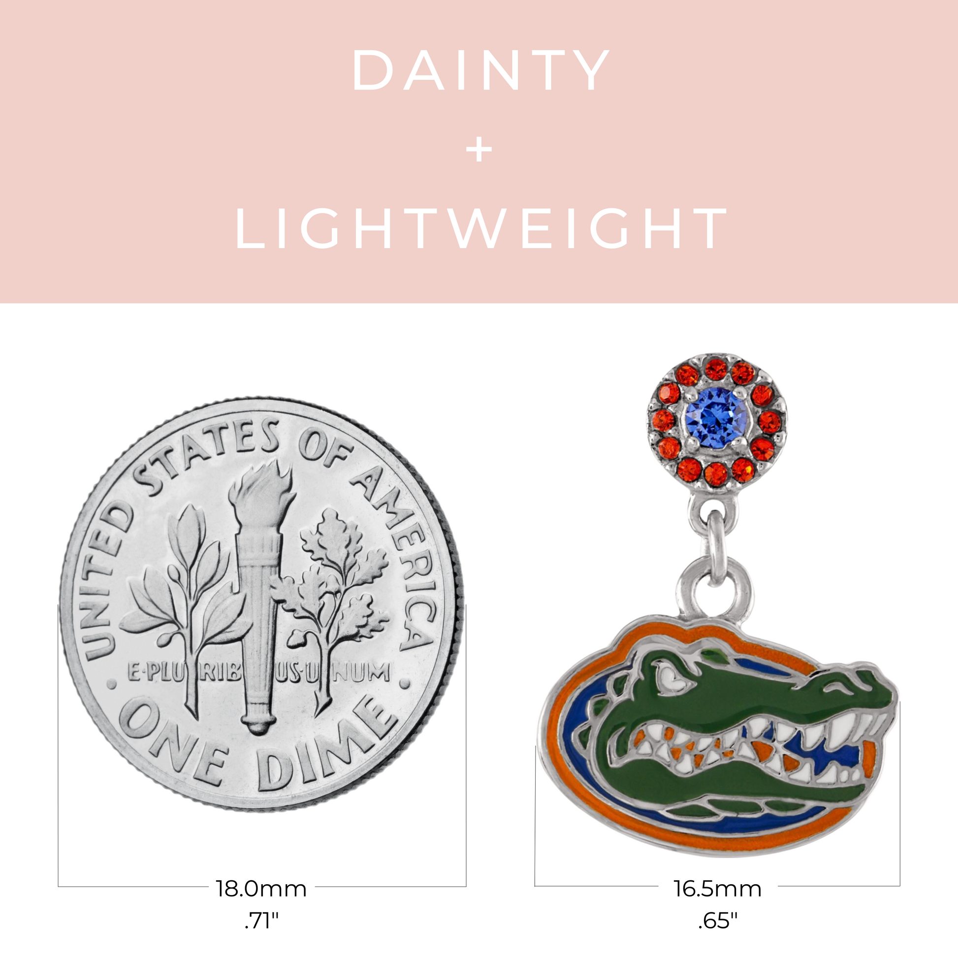 - 🧡YOUR PERFECT FIT: These stainless steel Florida drop earrings are always the perfect fit. Add these sparkling, classic Florida earrings to show off your beloved Florida Gators school and team. These Florida earrings measure 22.0mm long by 16.54mm wide.