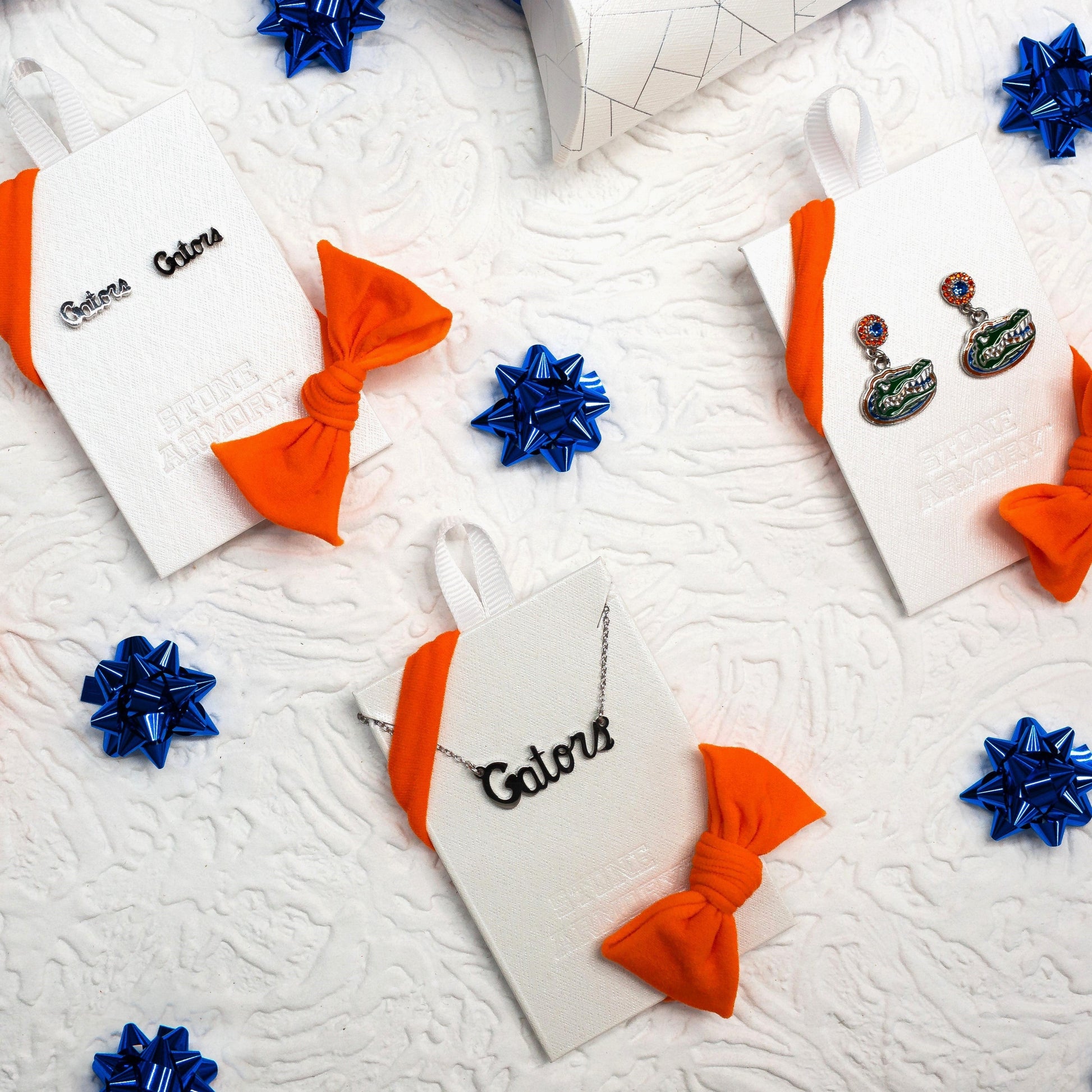 - 🧡TREASURE YOUR Florida Gators SPIRIT: These Stone Armory University of Florida stud earrings are officially licensed. Classic Florida Gators Script stud earrings to show off your Florida Gator pride.