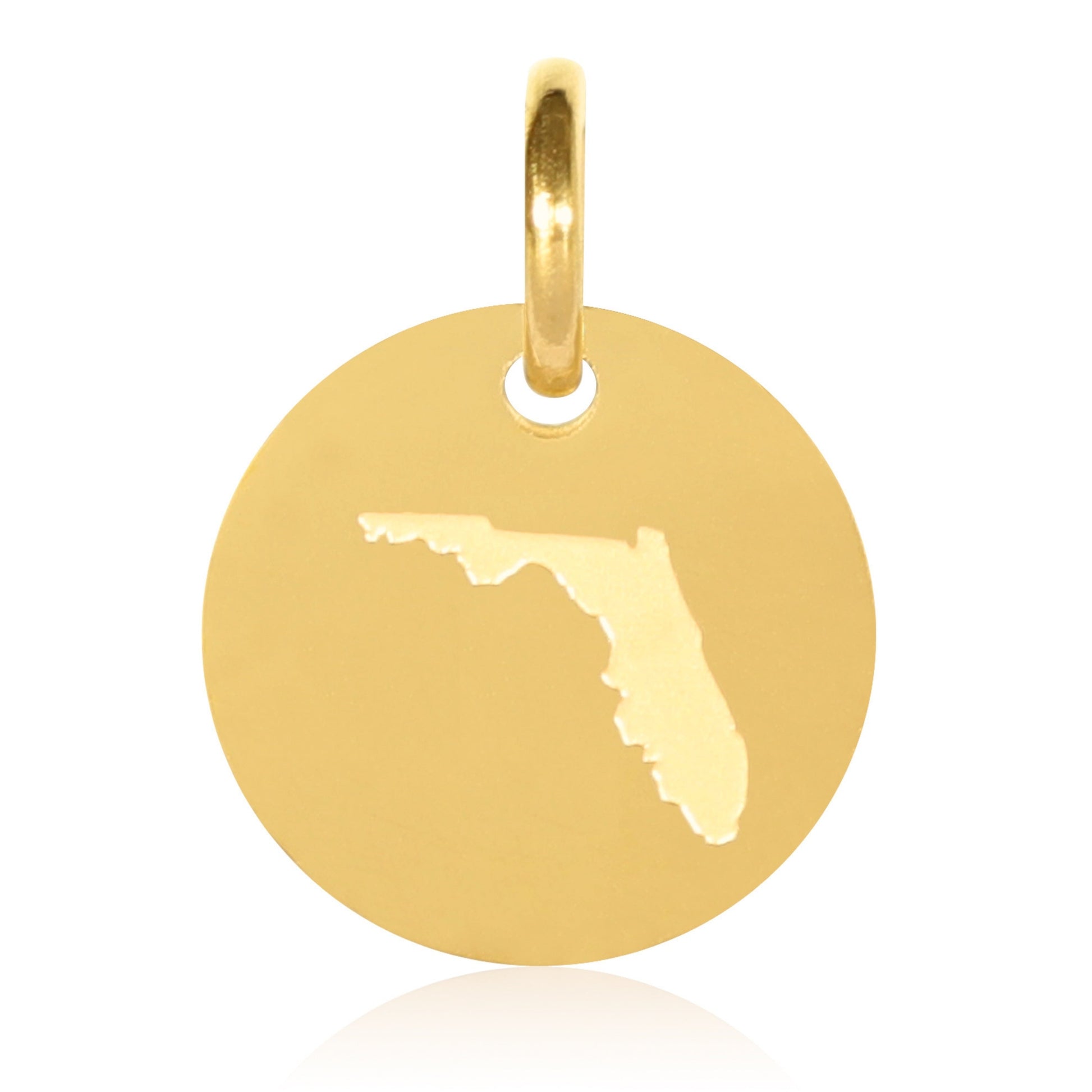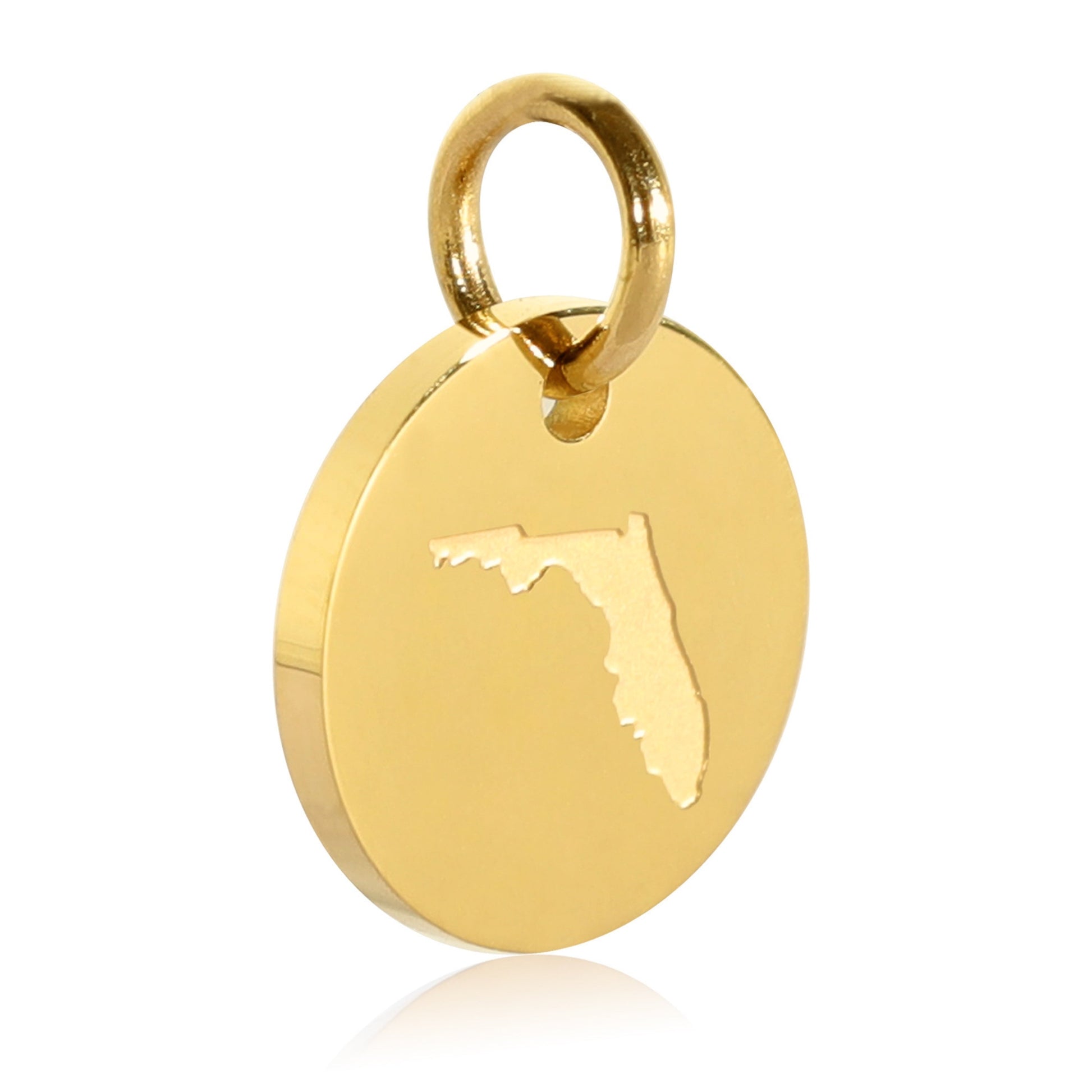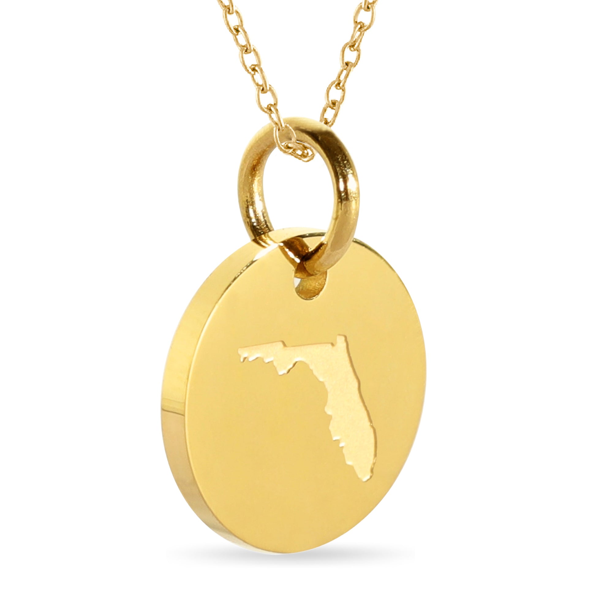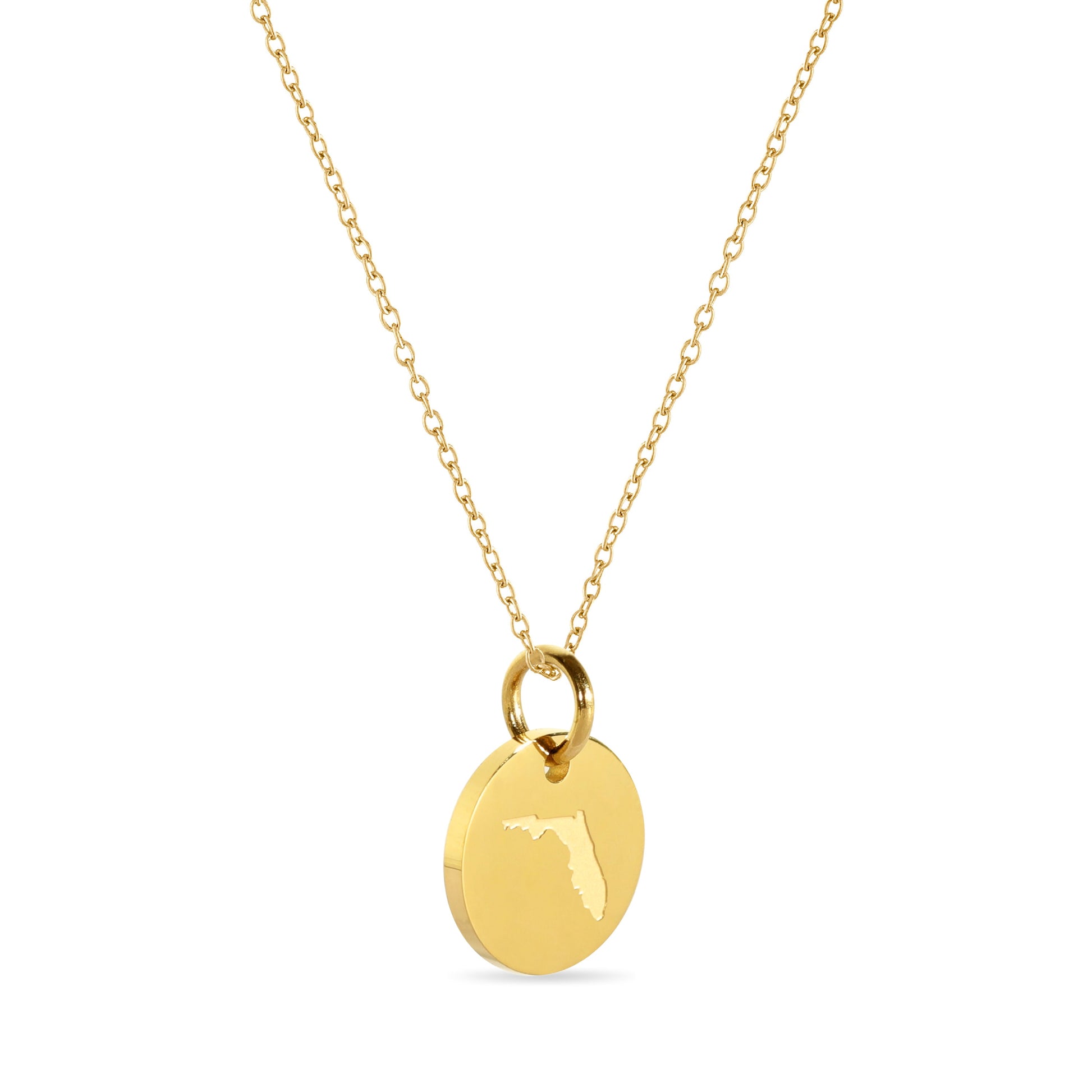Florida Map Engraved Charm Necklace - 18K Gold Plate