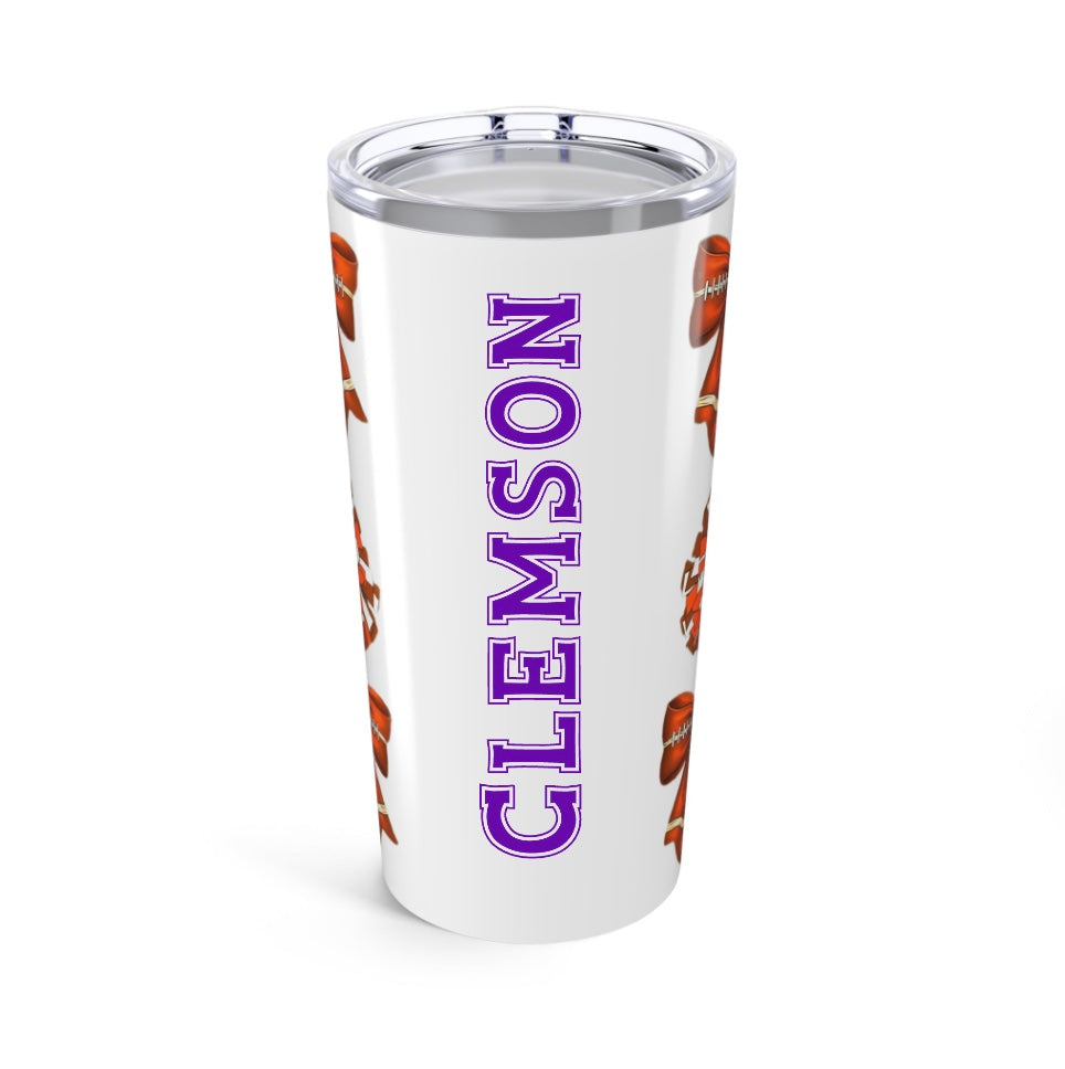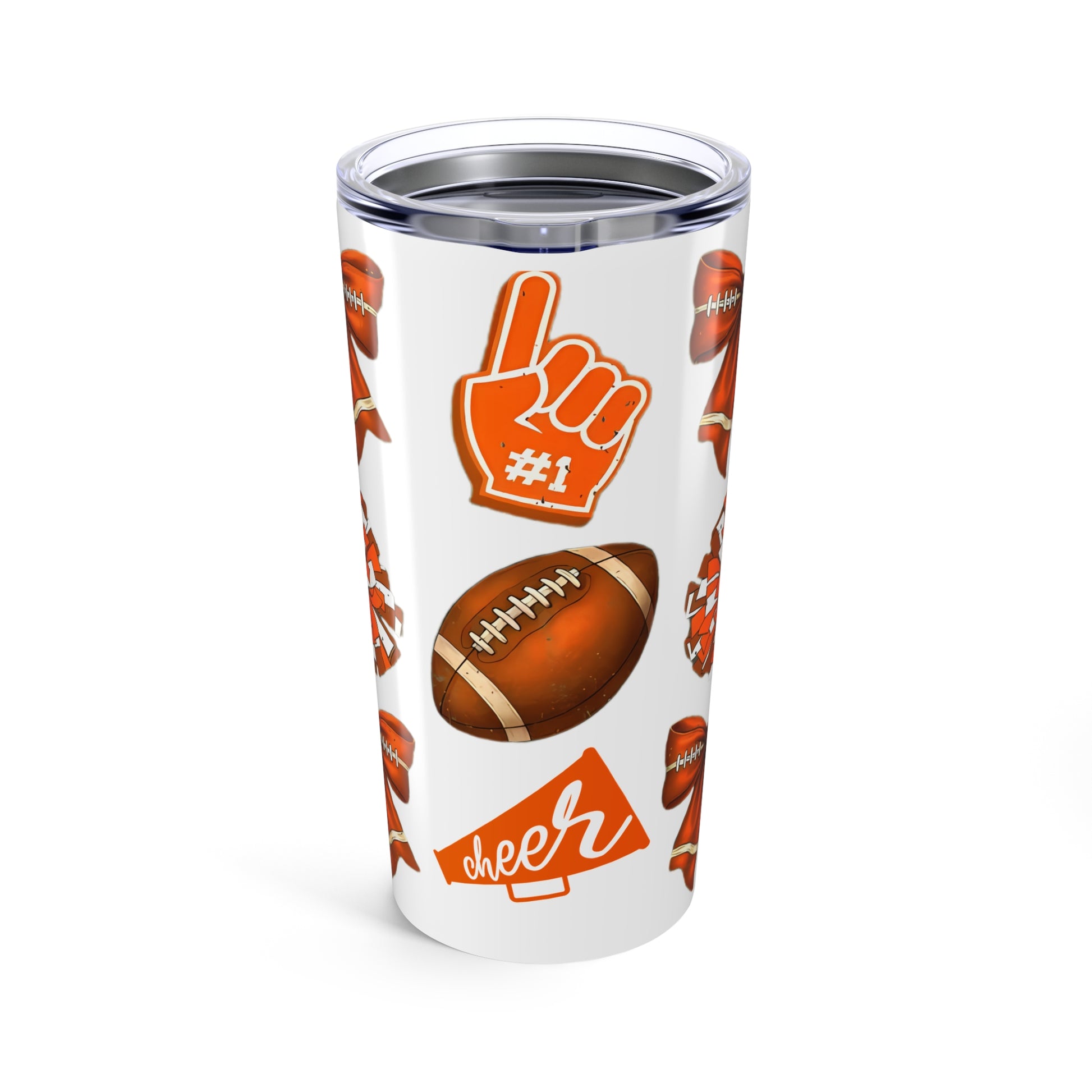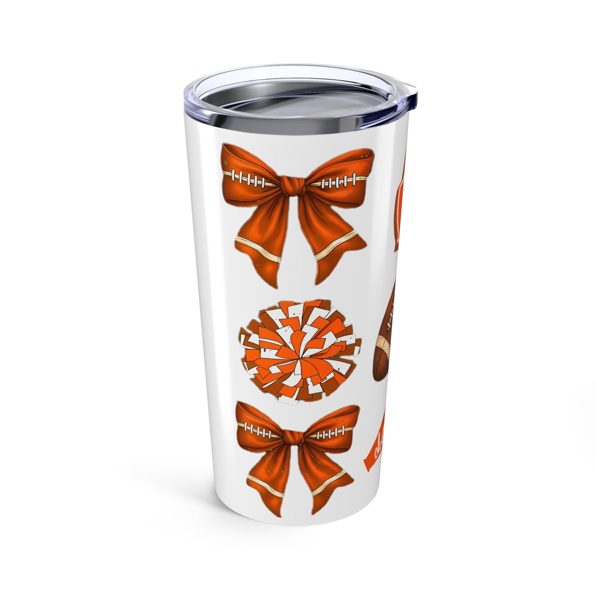 Customizable Tumbler 20oz - Orange-Themed Football Cheer Bow College Grad Gift Dorm Care College Package