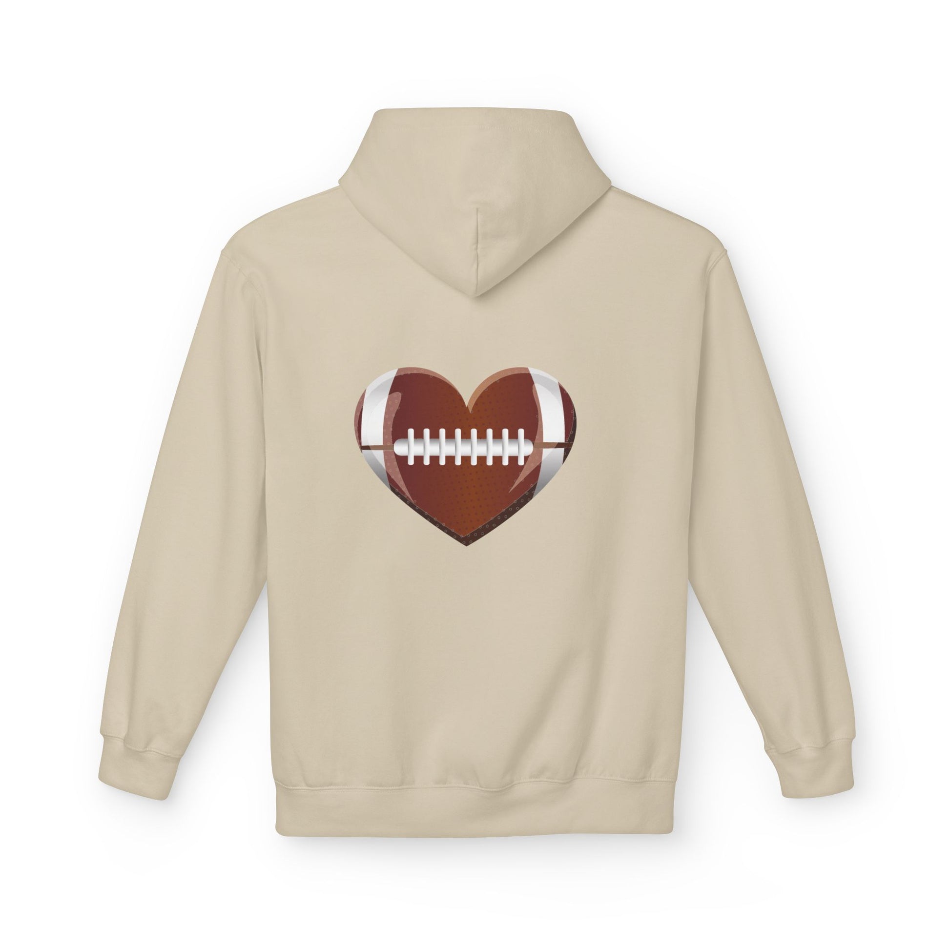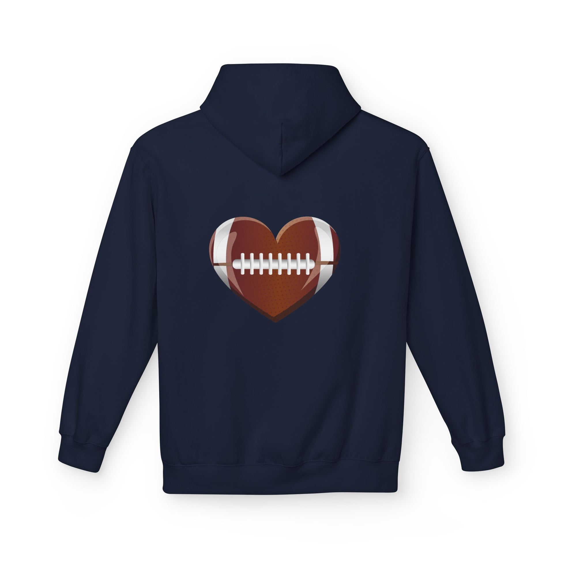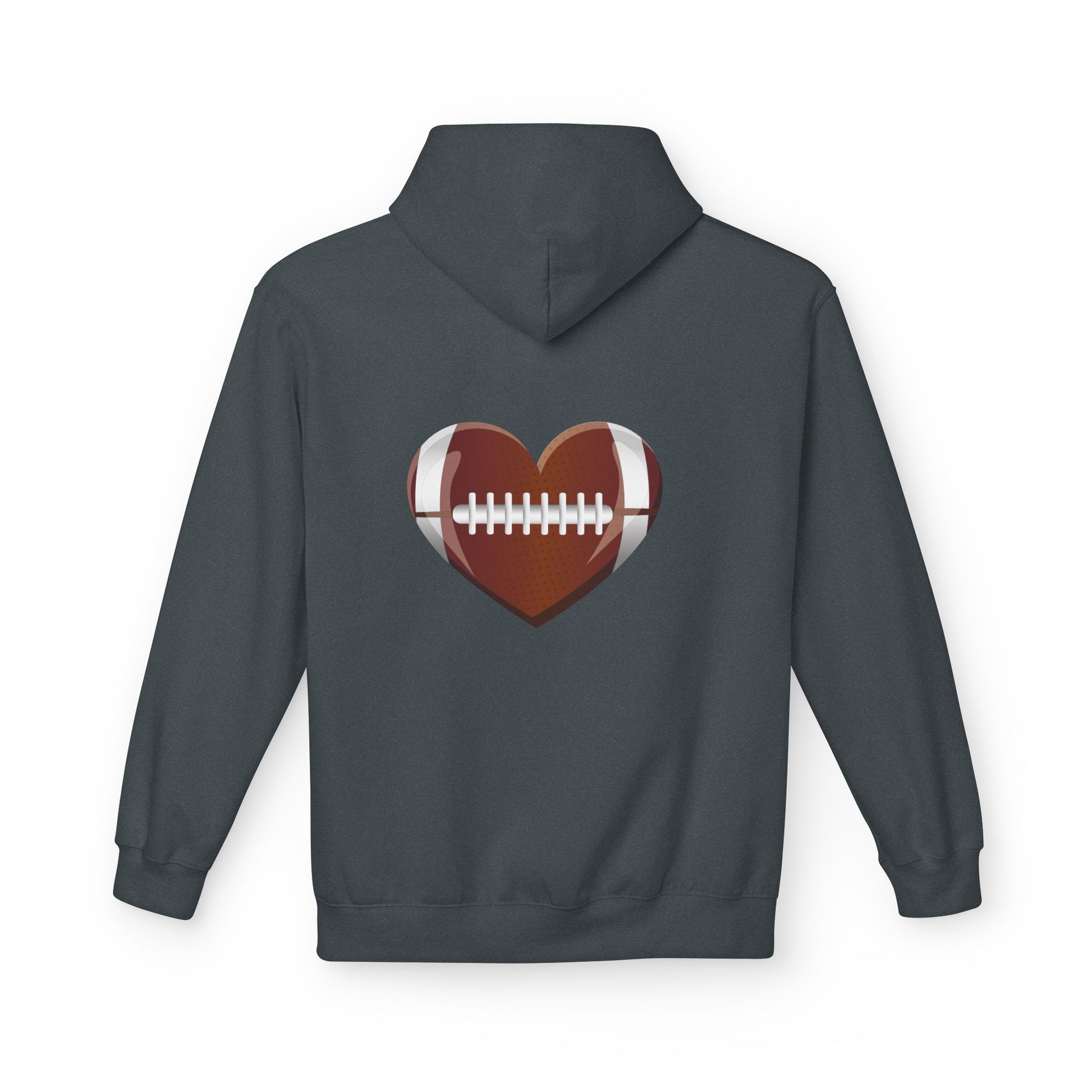 Football Heart Hoodie - Midweight Fleece Sweatshirt for Sports Fans, Gift for Holidays, Game Day Apparel, Cozy and Casual