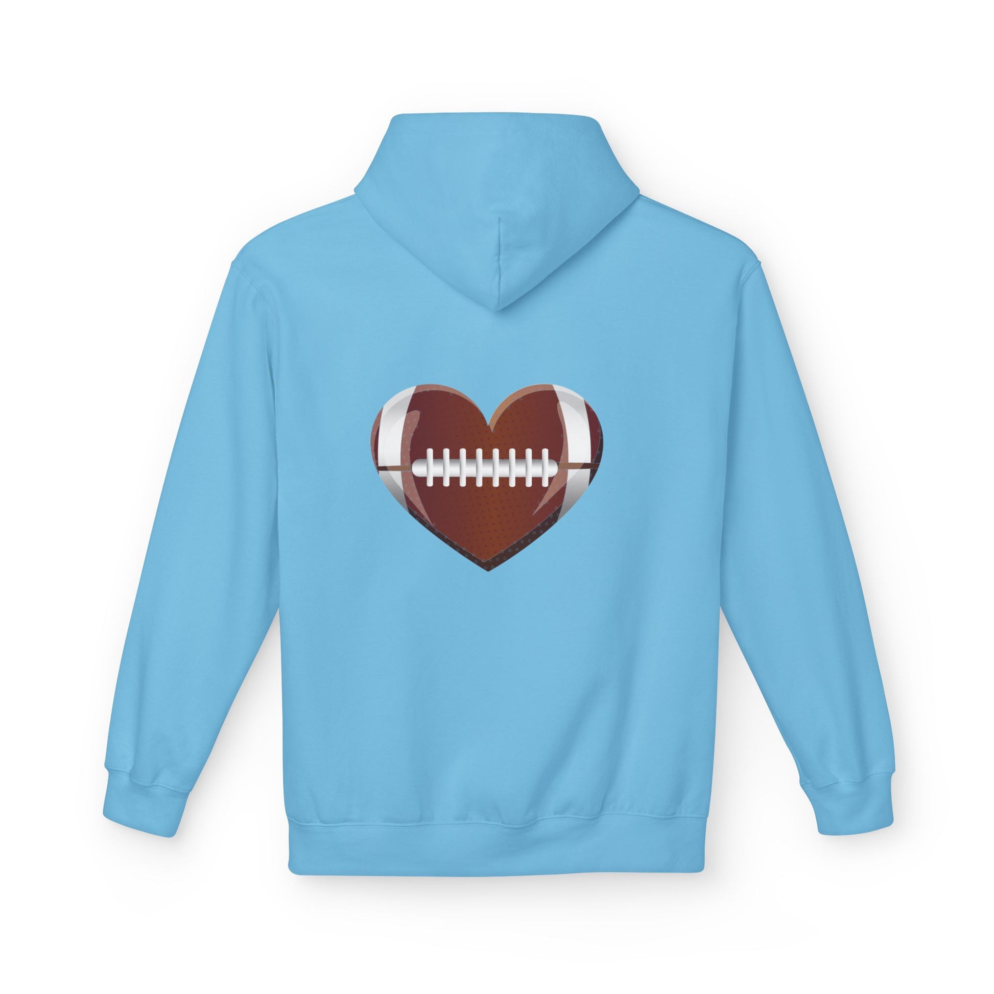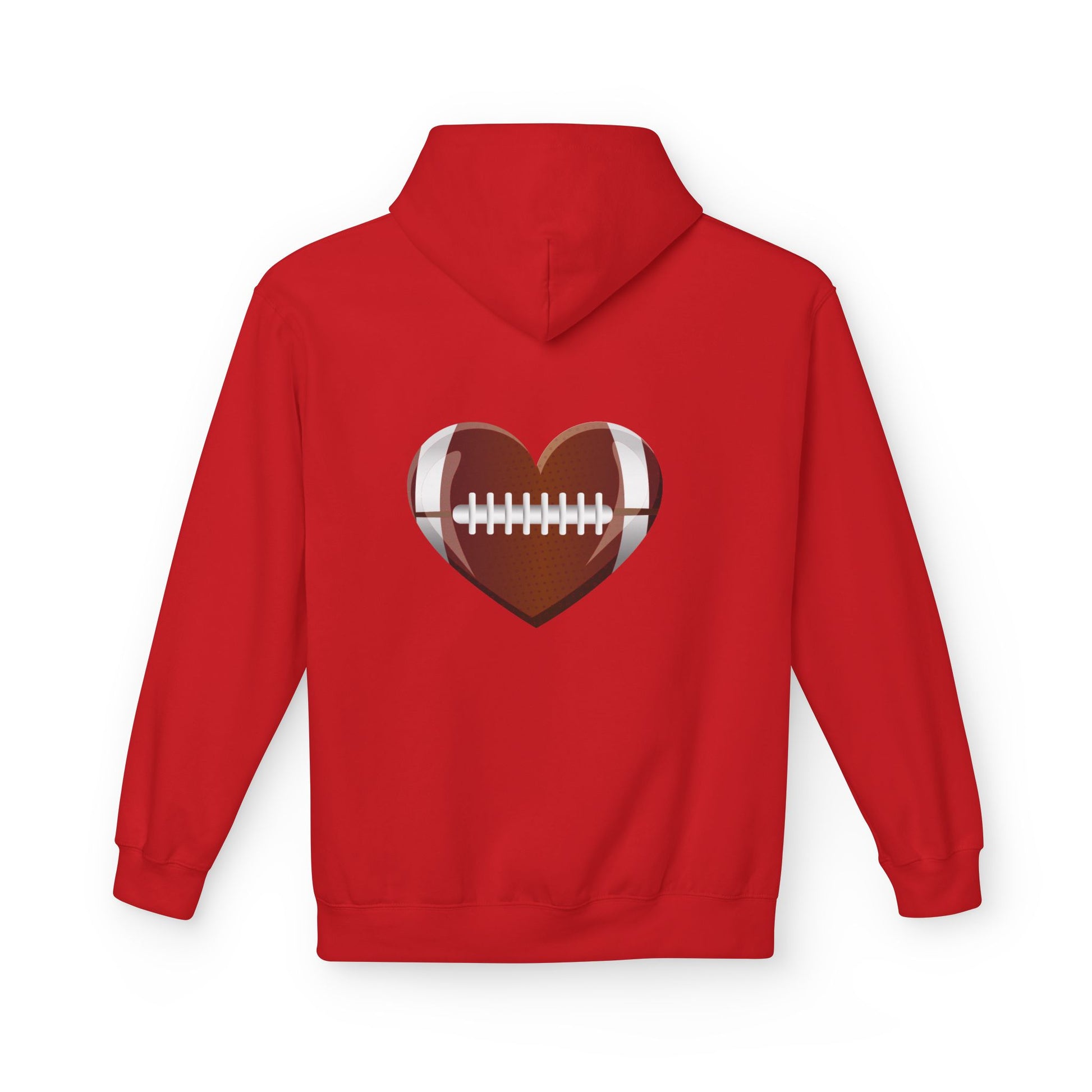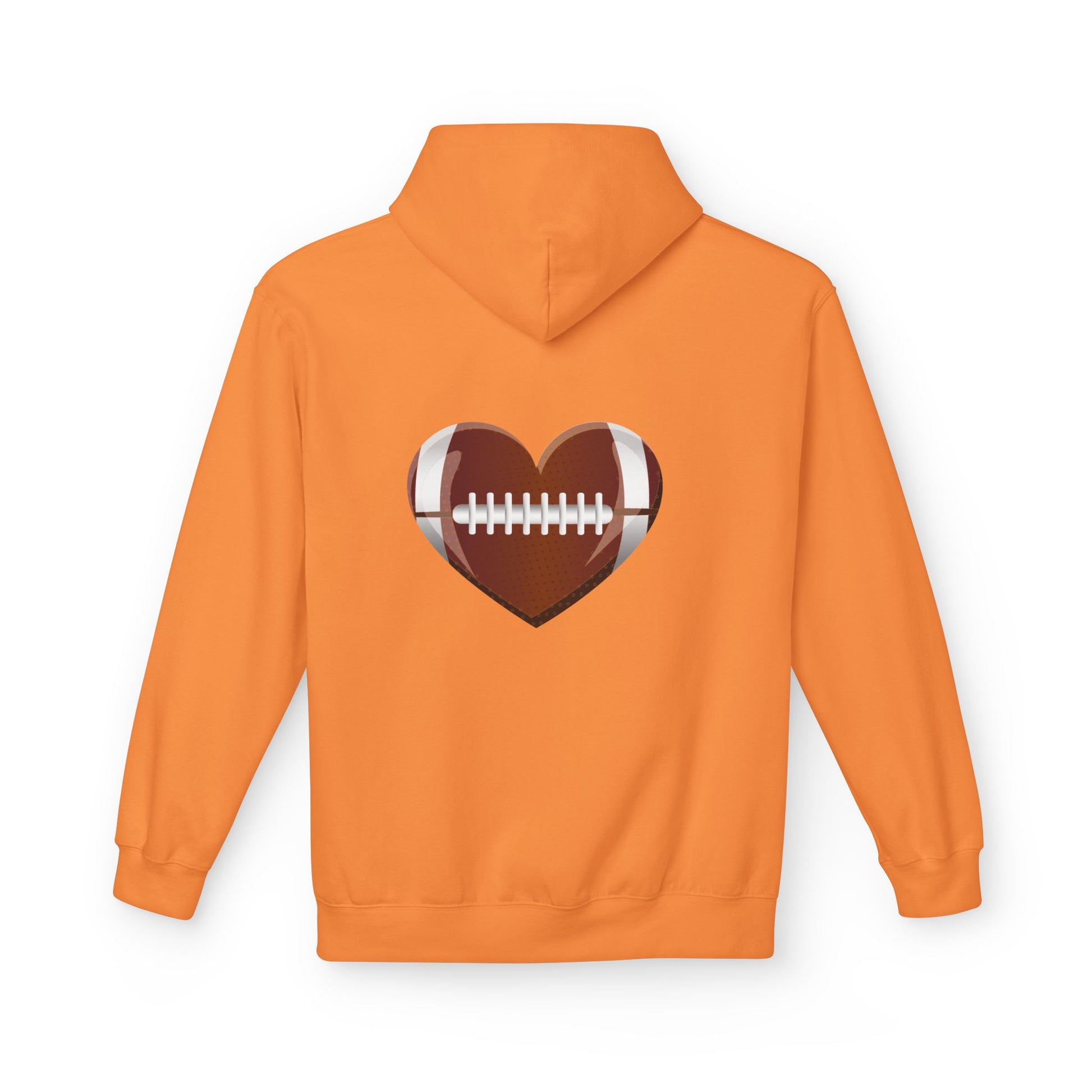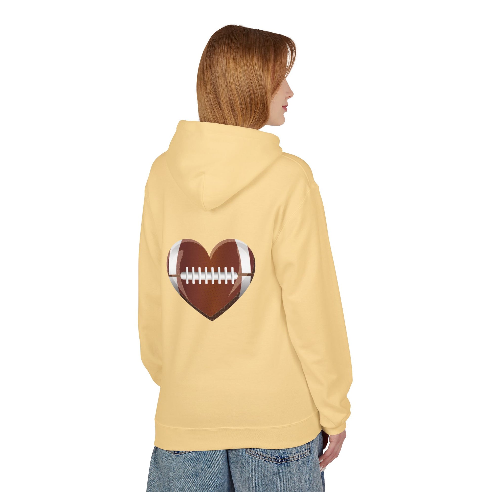 Football Heart Hoodie - Midweight Fleece Sweatshirt for Sports Fans, Gift for Holidays, Game Day Apparel, Cozy and Casual