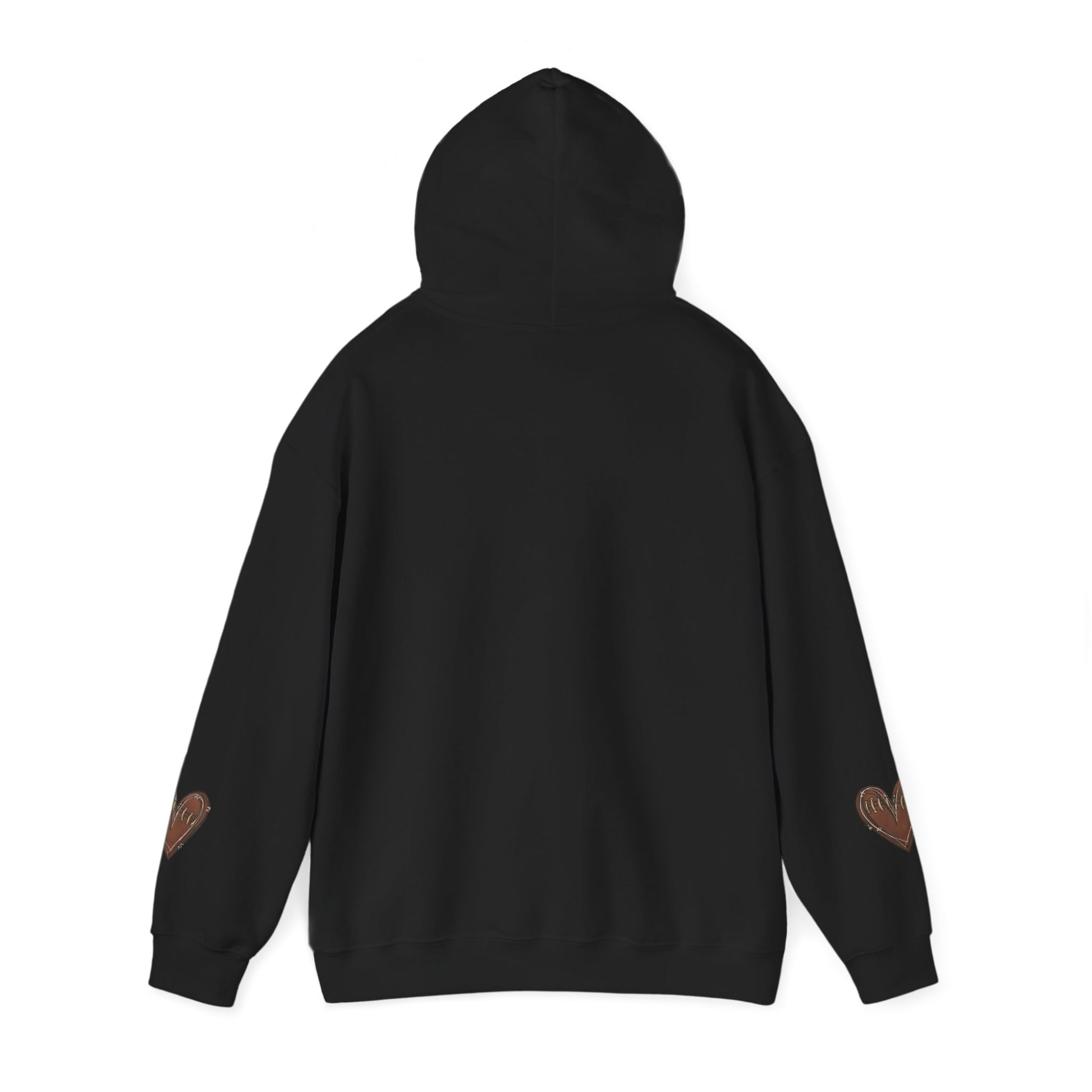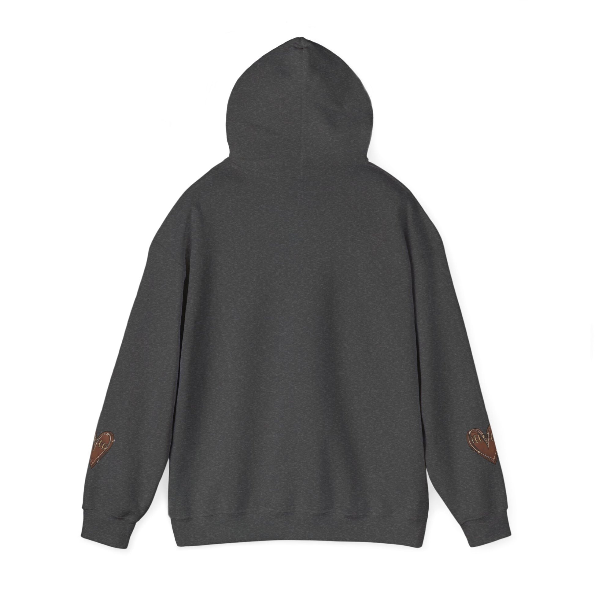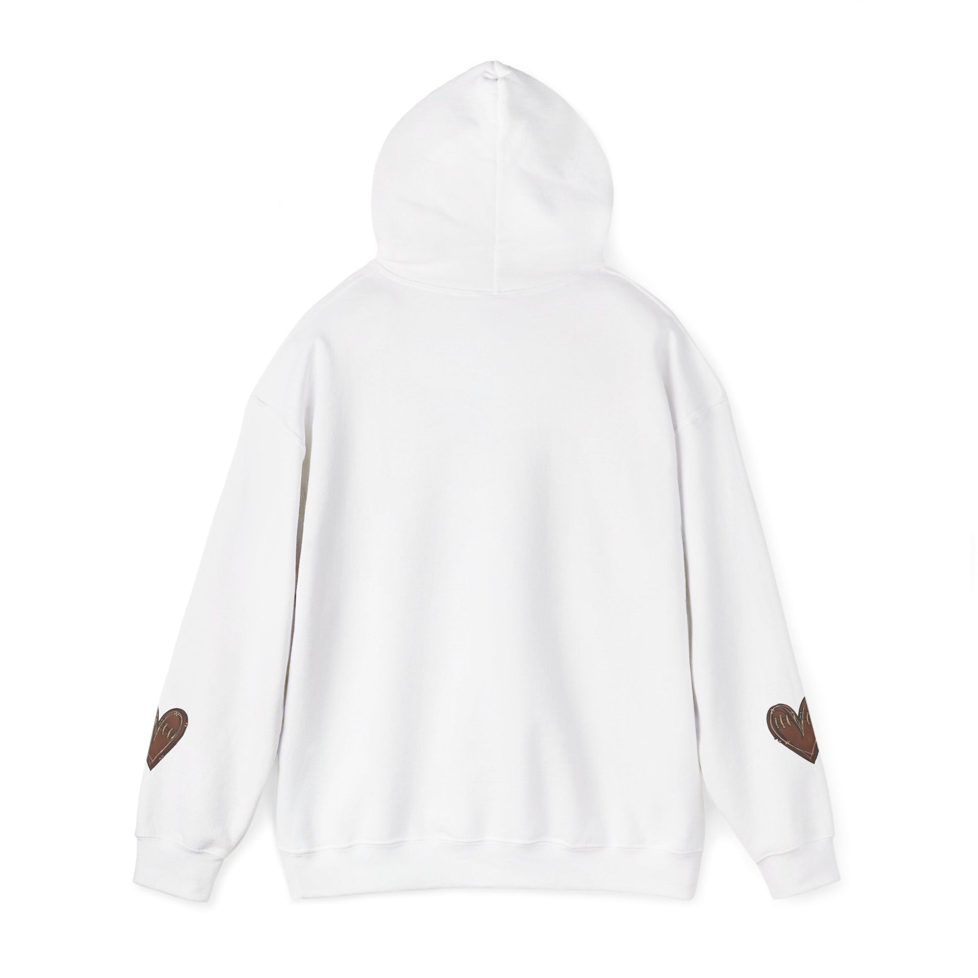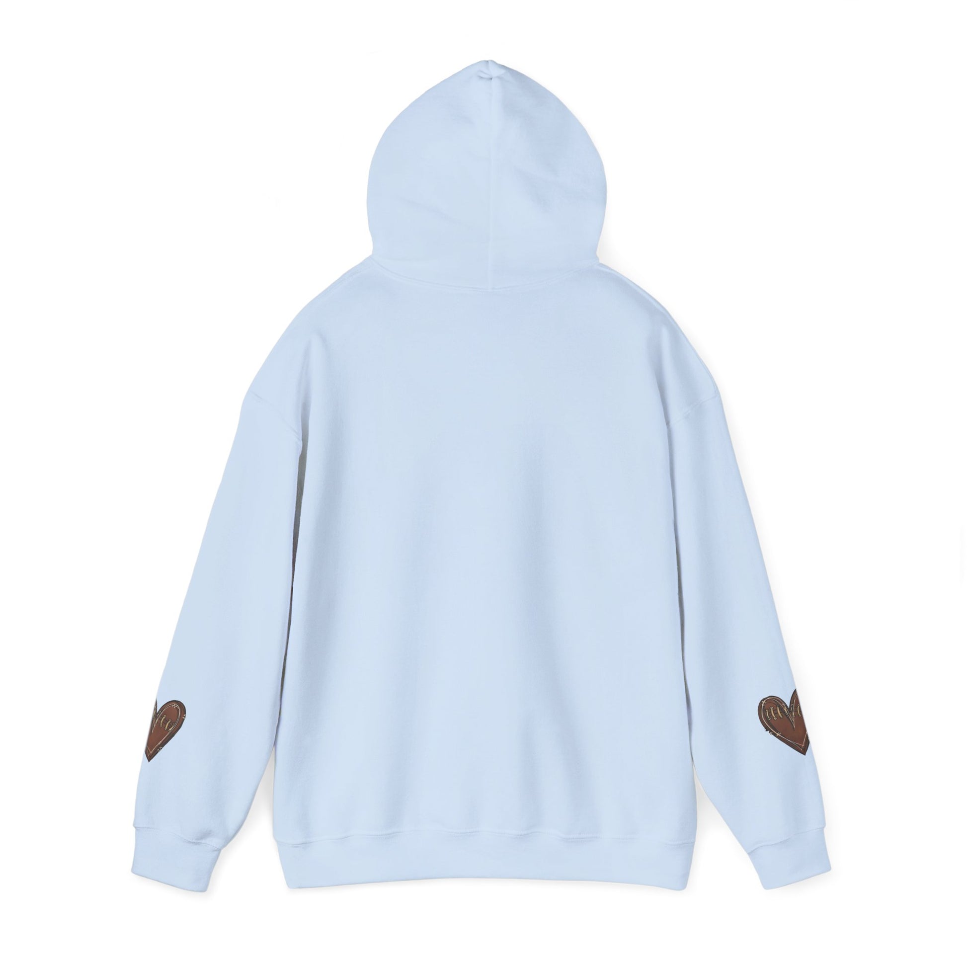 A game day hoodie with customizable back and football heart sleeves, perfect for football fans looking for a cozy and stylish way to support their favorite team. This hoodie is ideal for fall season games or watching football at home.