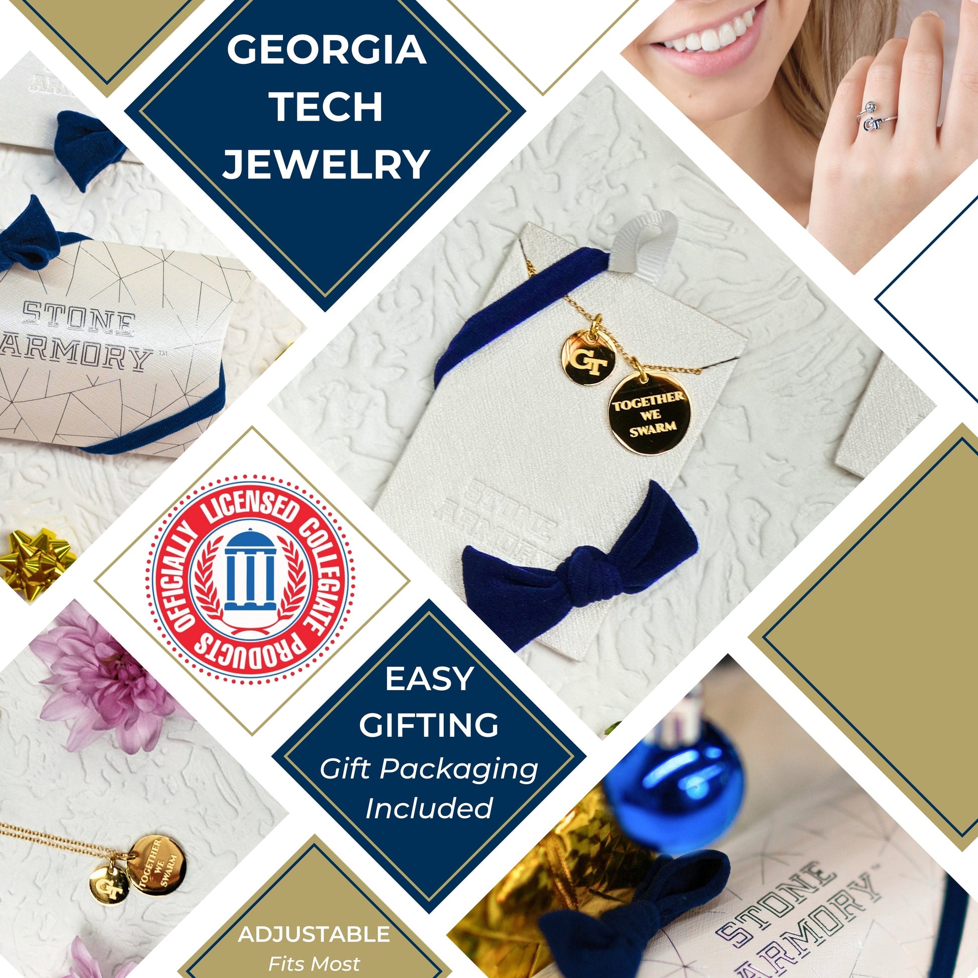- Express Your Georgia Tech Yellow Jackets Spirit Every Day: This officially licensed Stone Armory Georgia Tech necklace features 18K gold-plated pendants engraved with the iconic Block GT and the mantra 'Together We Swarm.' Designed for both casual and game-day wear, this adjustable necklace (16-20 inches) makes the perfect gift for Georgia Tech fans, students, and alumni
