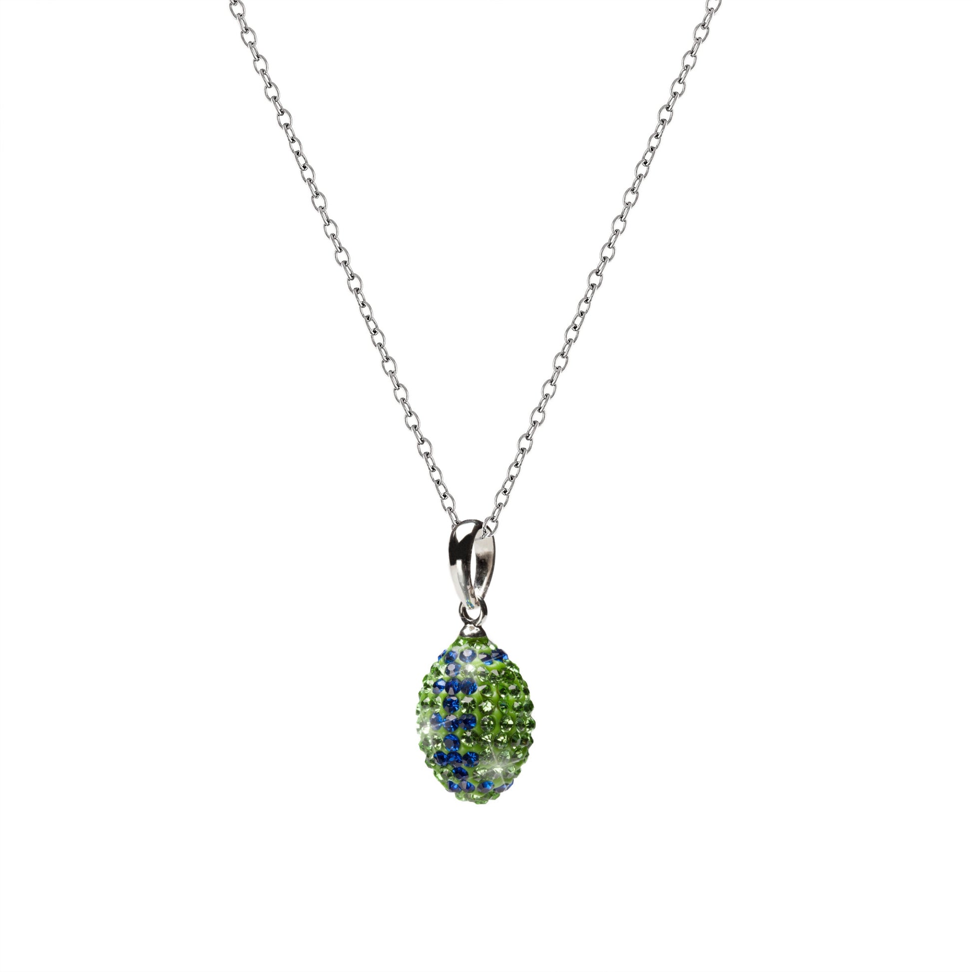 This green and blue crystal football necklace will make a great addition to your game day gear! Charm pendant is made of Austrian crystal and can also be worn on most charm bracelets including Pandora, Chamilia and Stone Armory.
