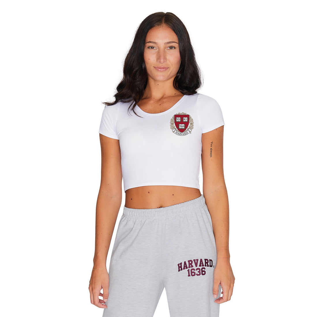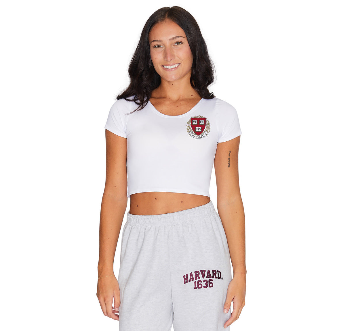This super flattering Harvard University Cropped and Fitted Tee is perfect for college game day paired with our Harvard Joggers! Our Harvard Babydoll Tee's stretchy fabric makes it the perfect option for all body types. Stretchy and soft, you'll want to rock this top every day! Go Crimson!