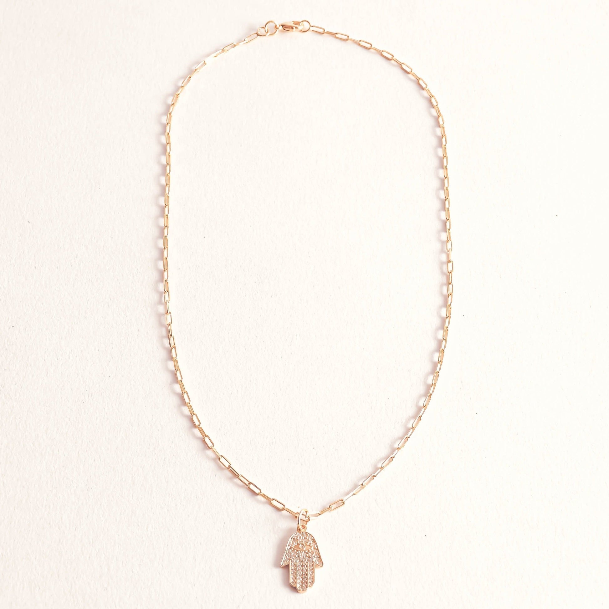 - Hamsa necklace: 18 inches