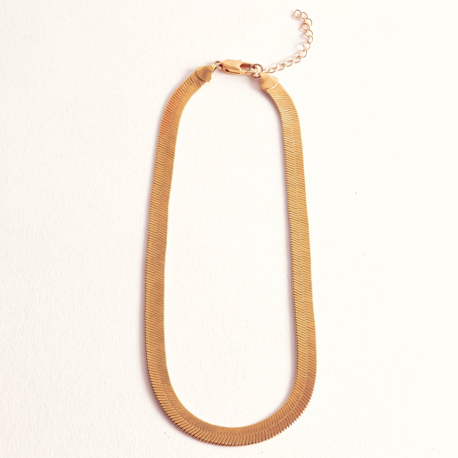 - Thick herringbone necklace: 17 inches, 6mm wide
