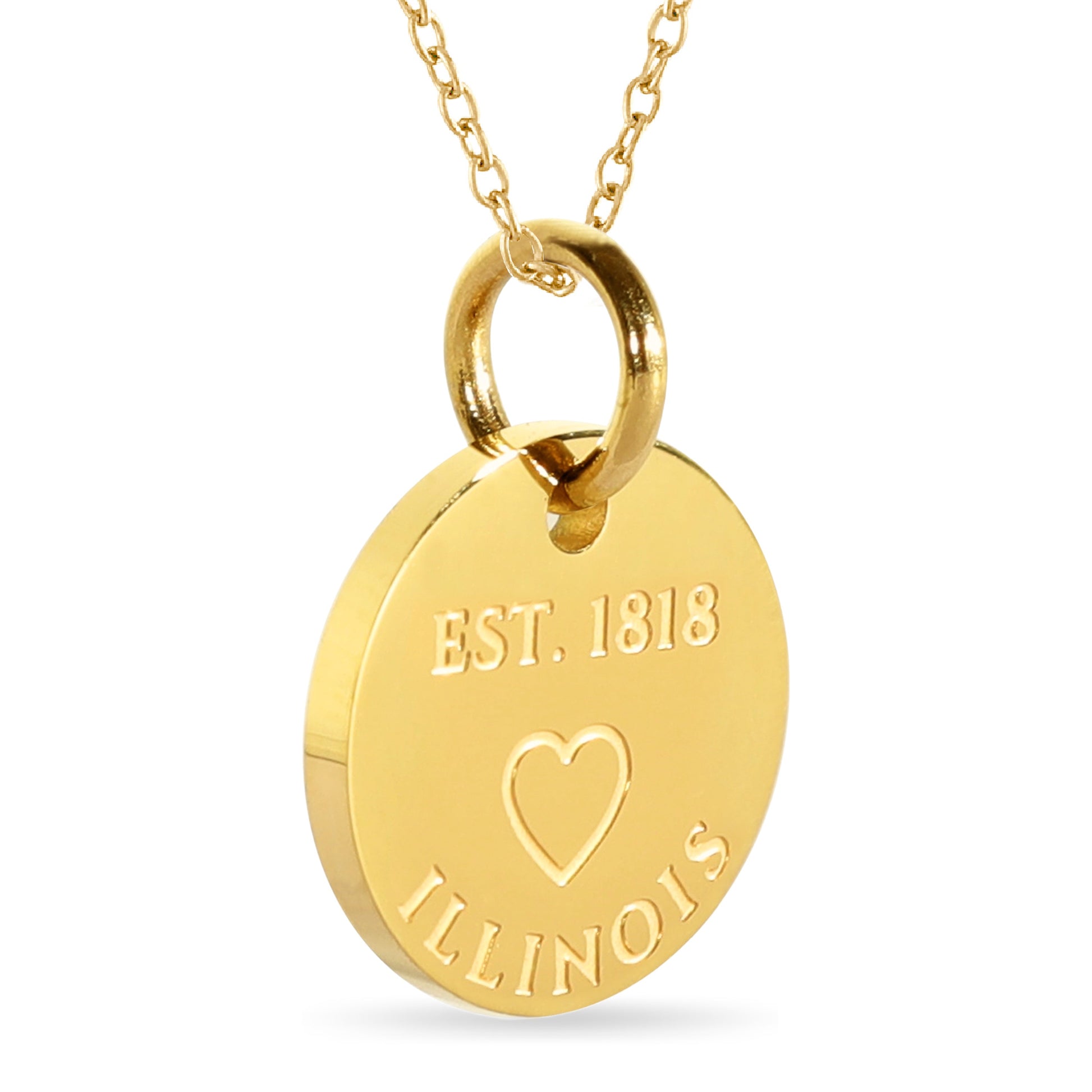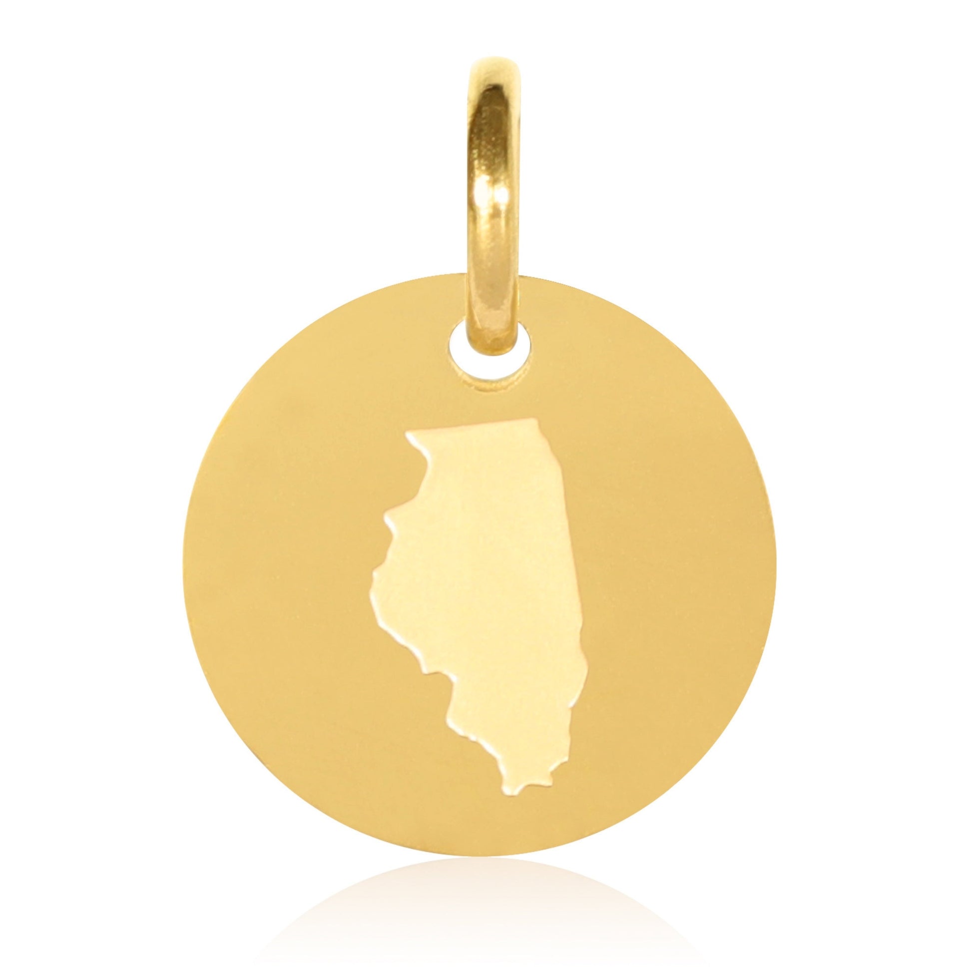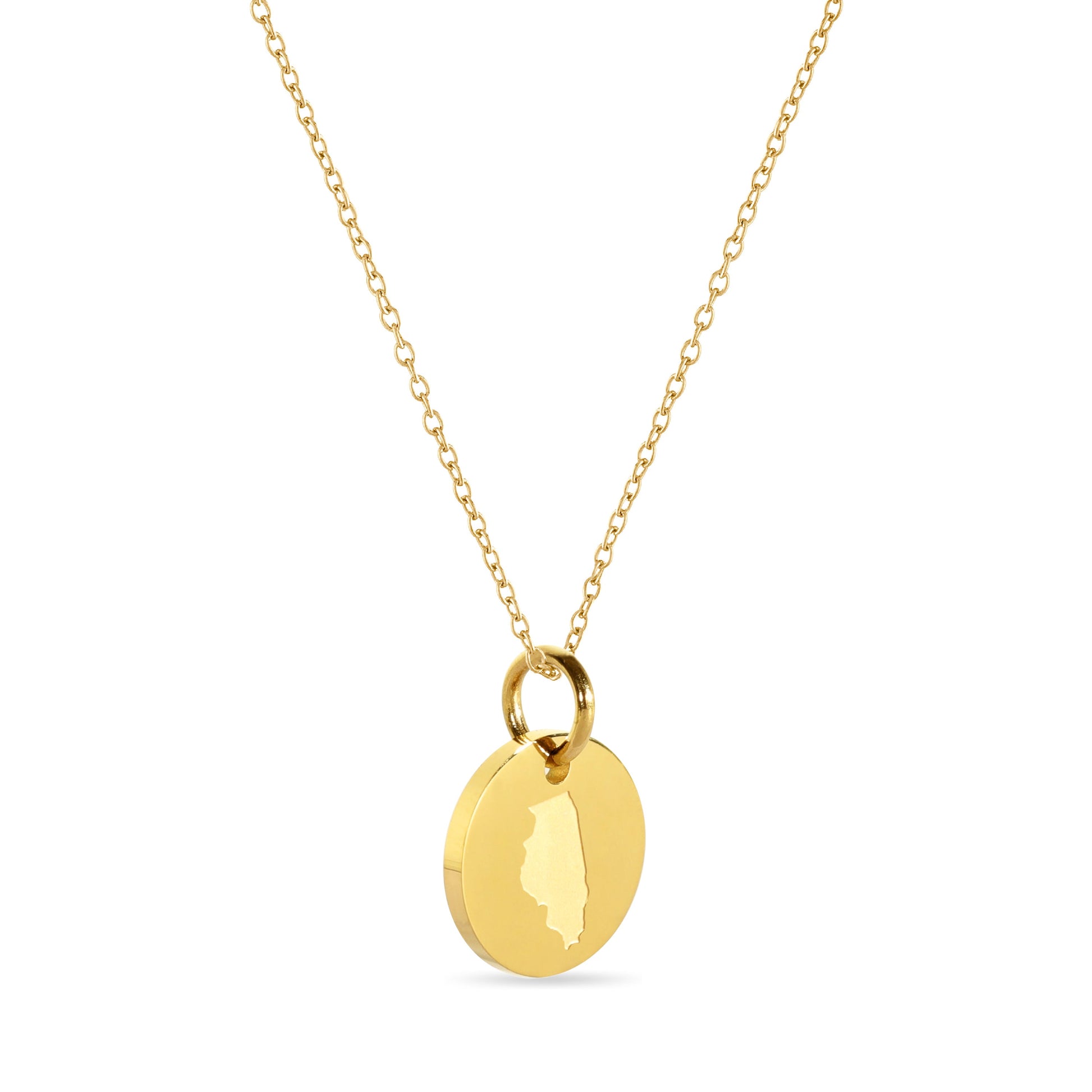 Illinois Map Engraved Charm Necklace - 18K Gold Plate