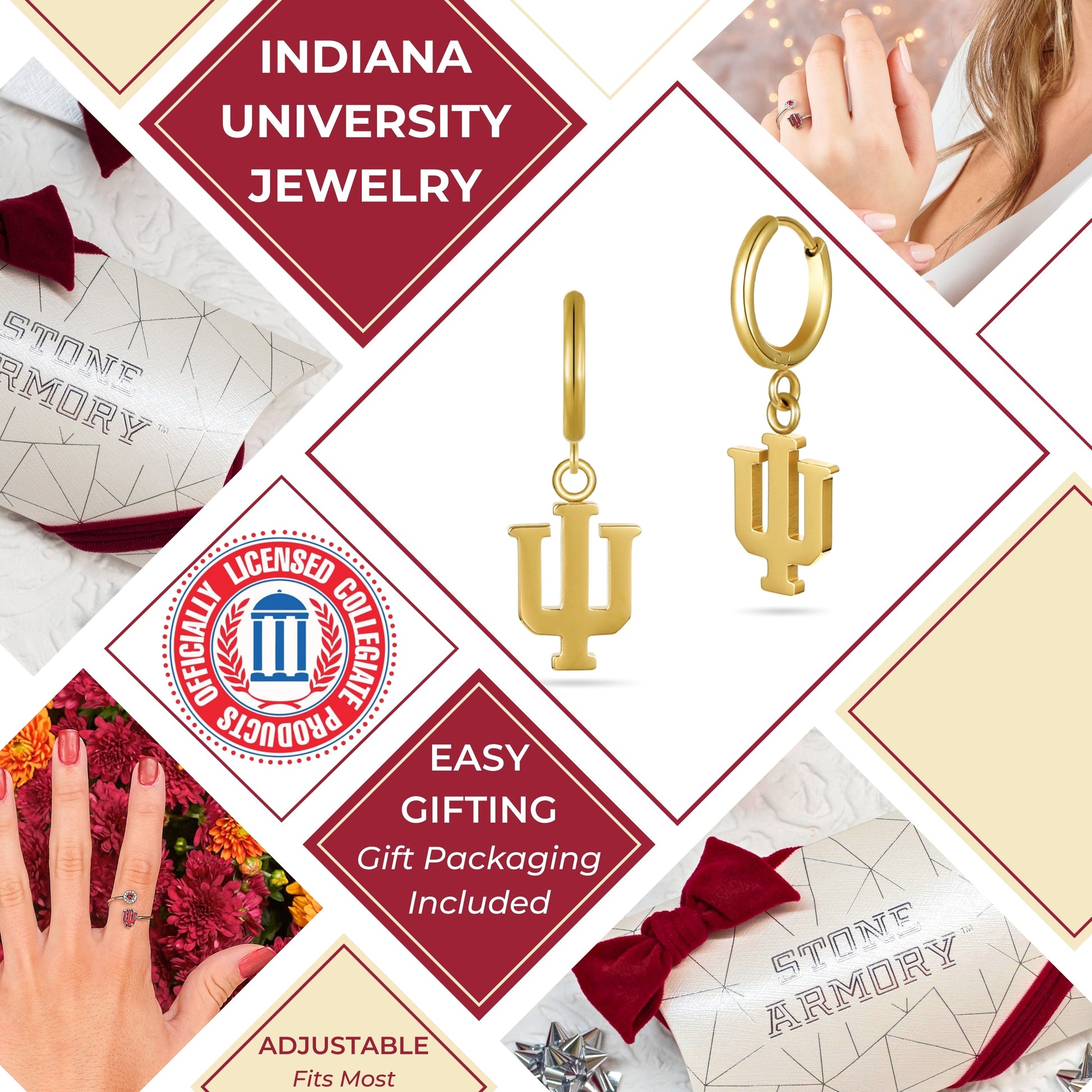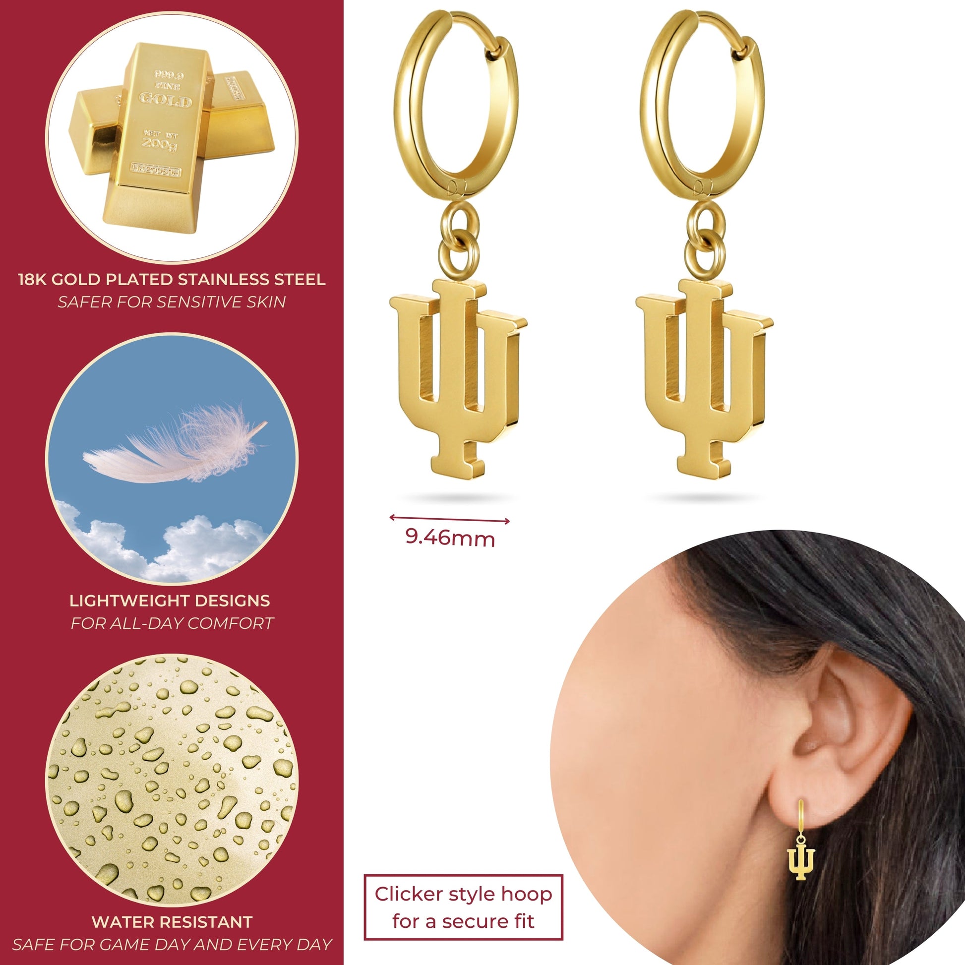 Show your Indiana pride with these officially licensed Indiana University hoop earrings by Stone Armory. Featuring a sleek 18K gold finish over durable stainless steel, these classic hoops are engraved with the iconic IU logo—making them the perfect accessory for game day or everyday wear.