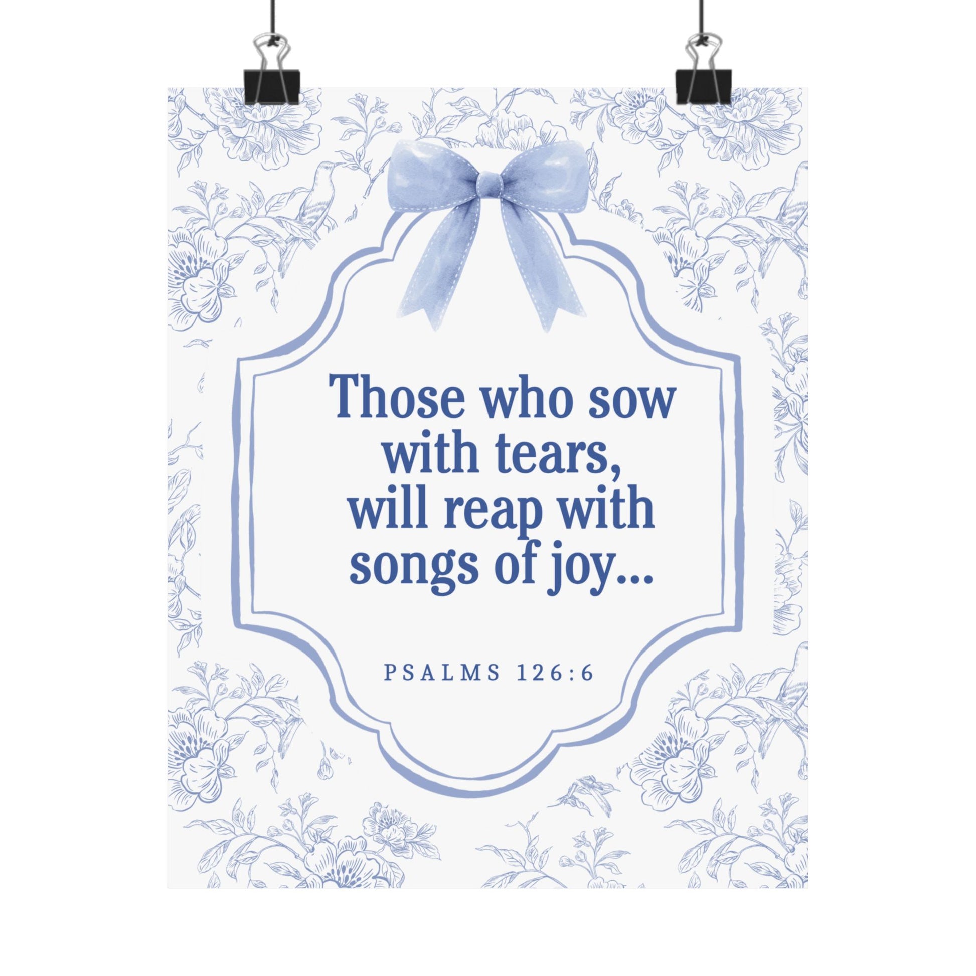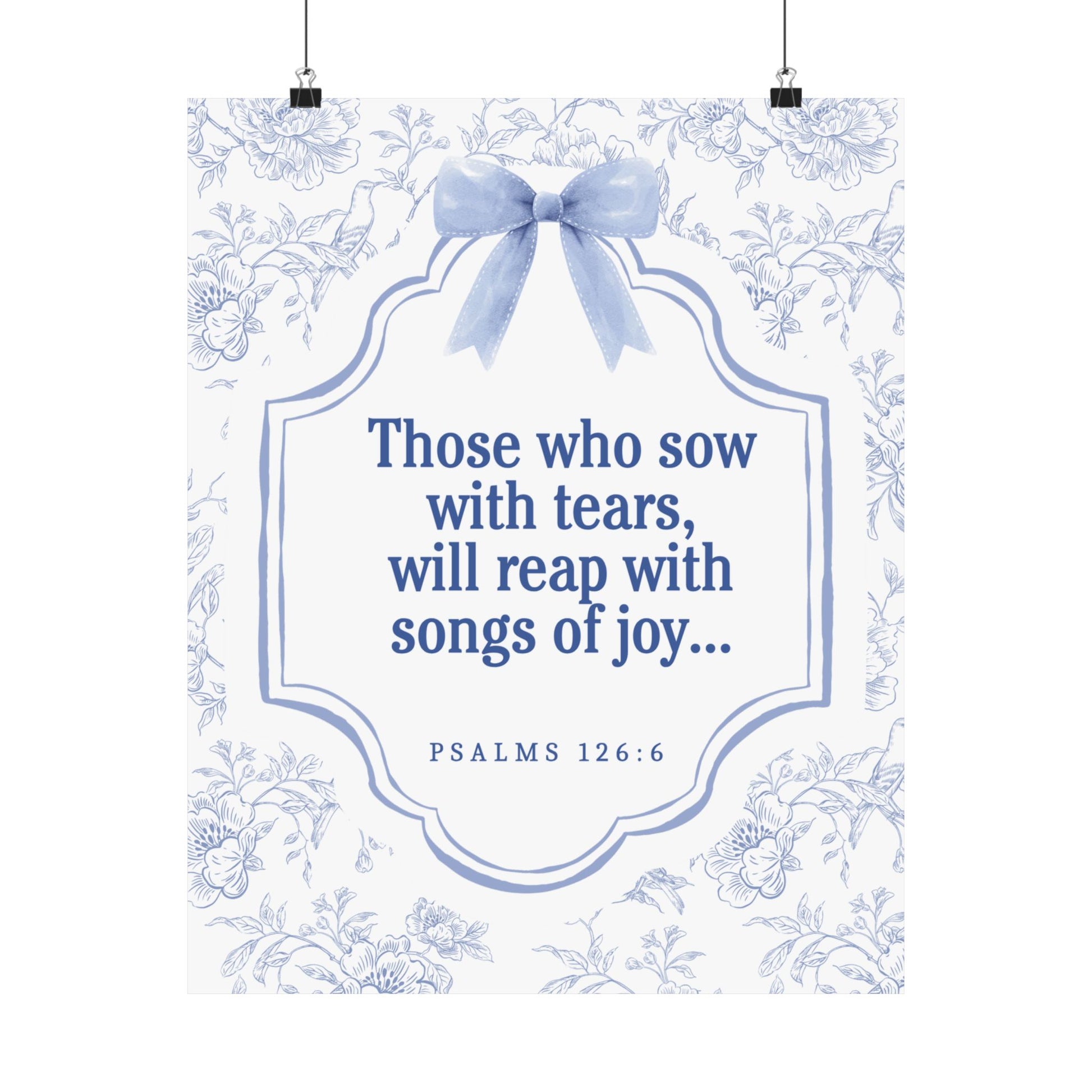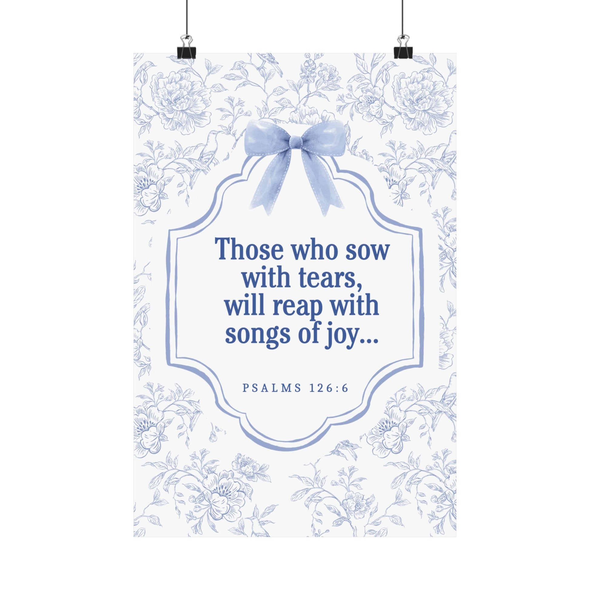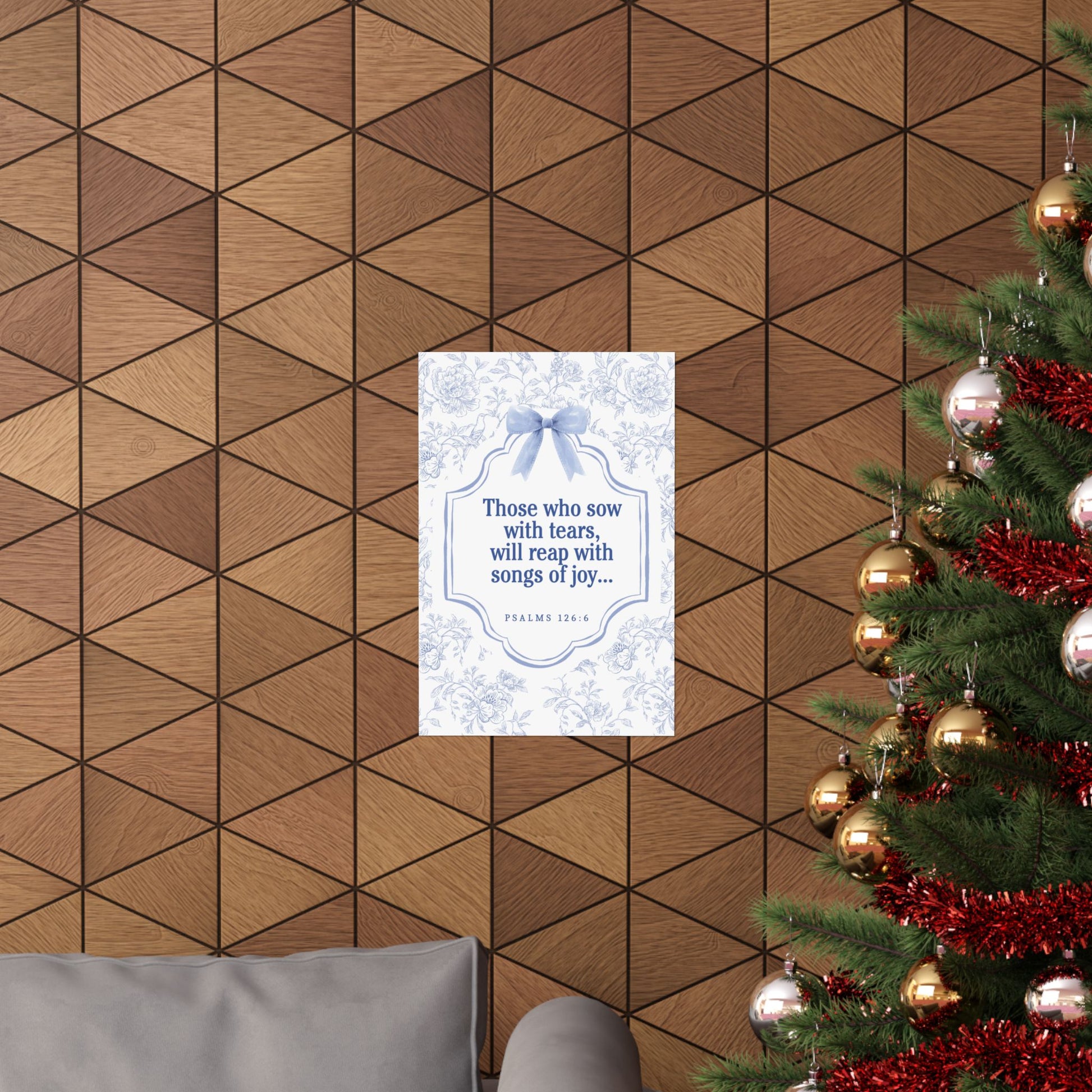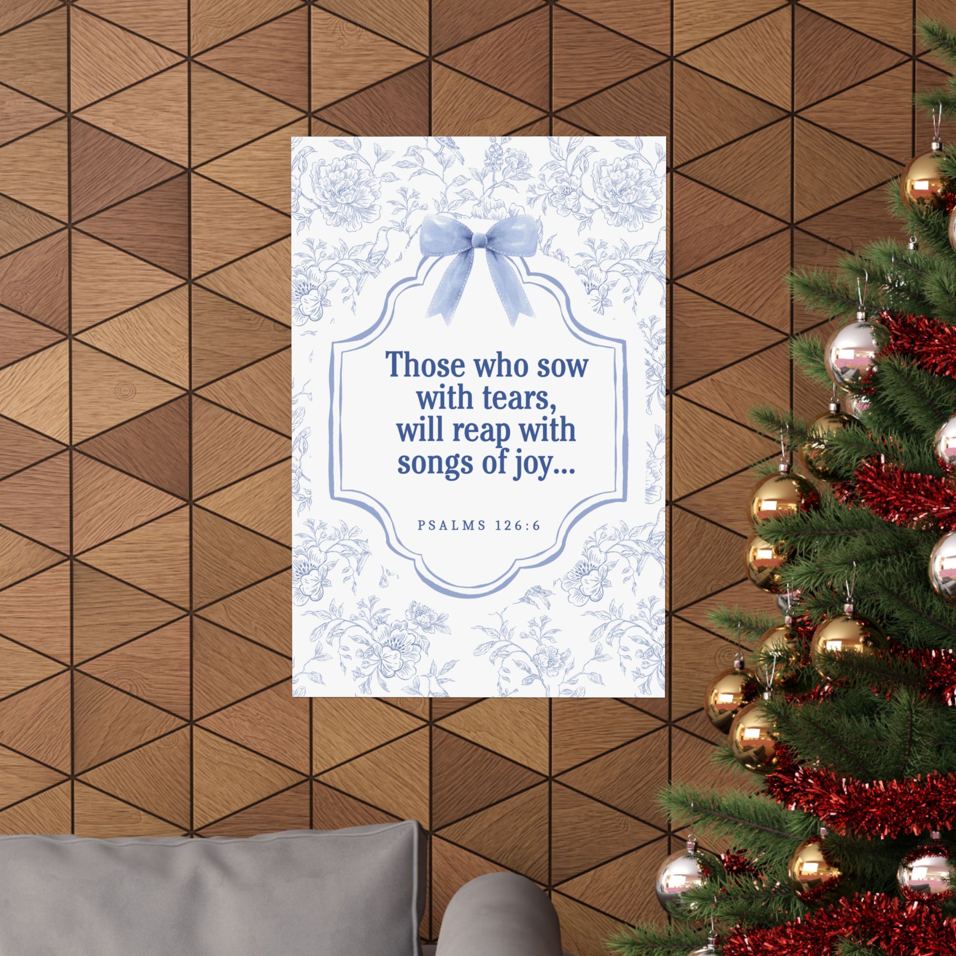 "Inspirational Bible Verse Matte Poster - Graceful Home Décor, Thoughtful Gift, Uplifting Wall Art, Faith-Based Motivation, Psalms 126:6"