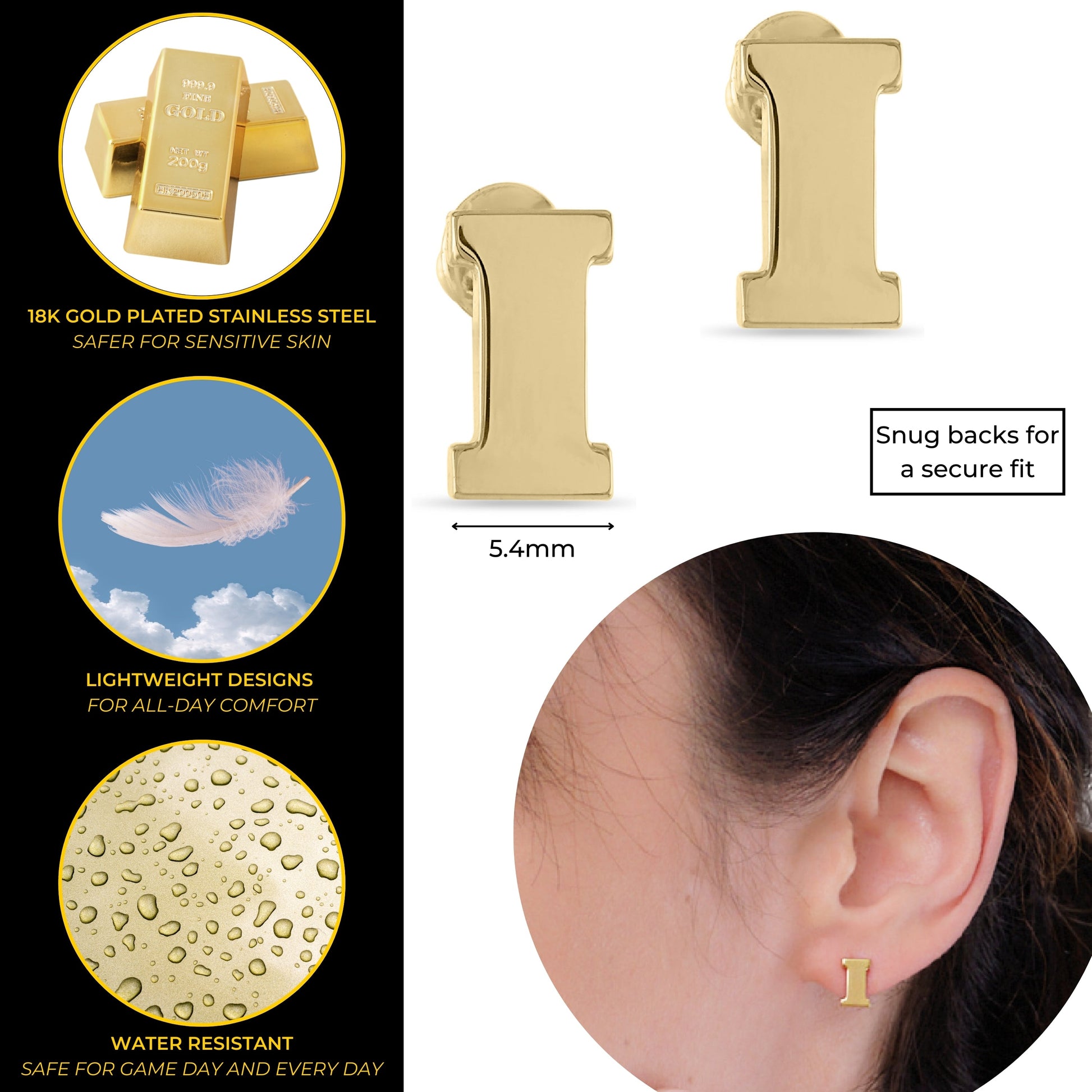 Stone Armory's Iowa Block I gold stud earrings are here! Gear up for game day with our beautifully designed Iowa Hawkeyes earrings. Wear them to your next tailgate or around town to show off your University of Iowa pride. These gold earrings for women would also make the perfect Iowa gifts for your favorite Iowa Hawkeyes fan! Stone Armory's Iowa Hawkeye jewelry is made of stainless steel and quality 18K gold, making these NCAA Iowa stud earrings the perfect sports fan gifts to celebrate Iowa graduation, birthdays, Mother's Day, first day of school, the first Iowa Hawkeye football game, or for everyday fan jewelry wear. Thank you for supporting our small business!