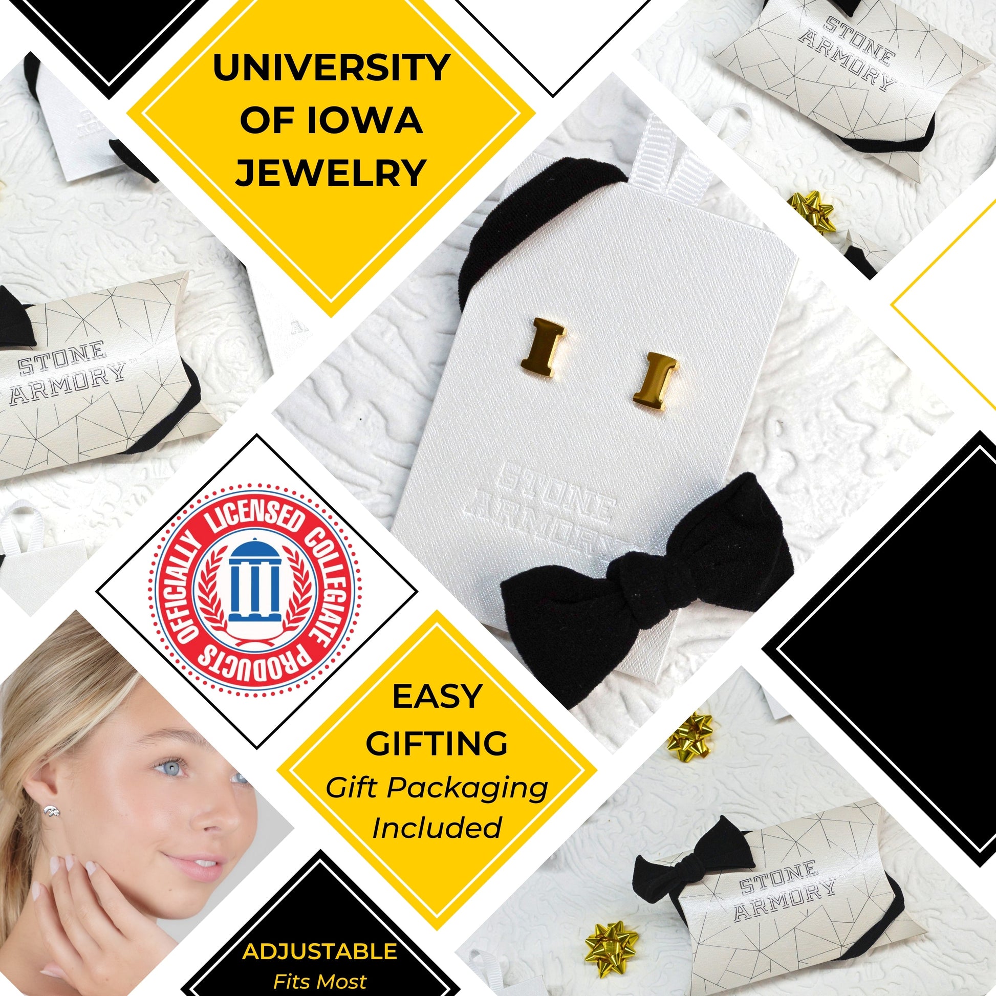 - The Perfect Iowa Hawkeyes Gifts - Beautifully packaged in a decorative jewelry box and ready to gift, these dainty gold earrings are designed to last. Carefully crafted out of stainless steel and quality 18K gold, these stud earrings for women are the perfect college accessories for your best friend, your Iowa grad, or yourself!