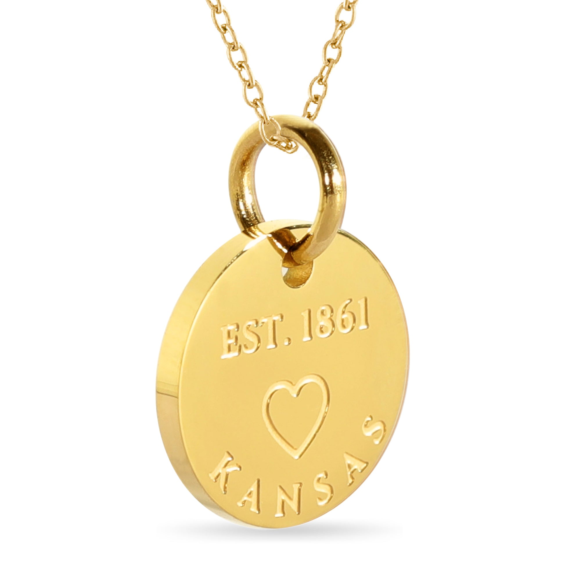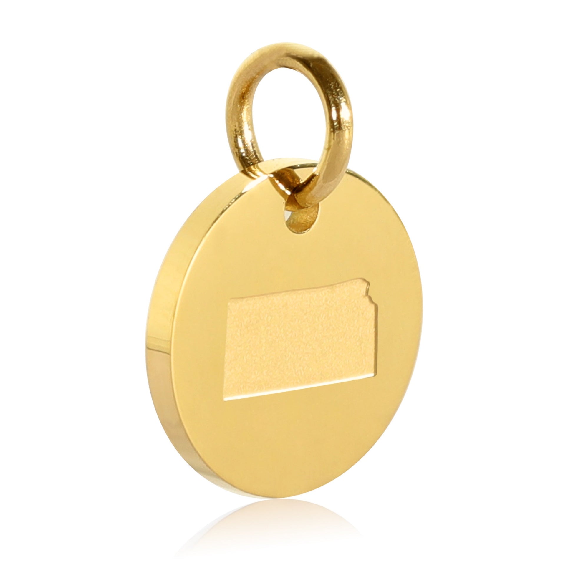 Kansas Map Engraved Charm Necklace - 18K Gold Plate